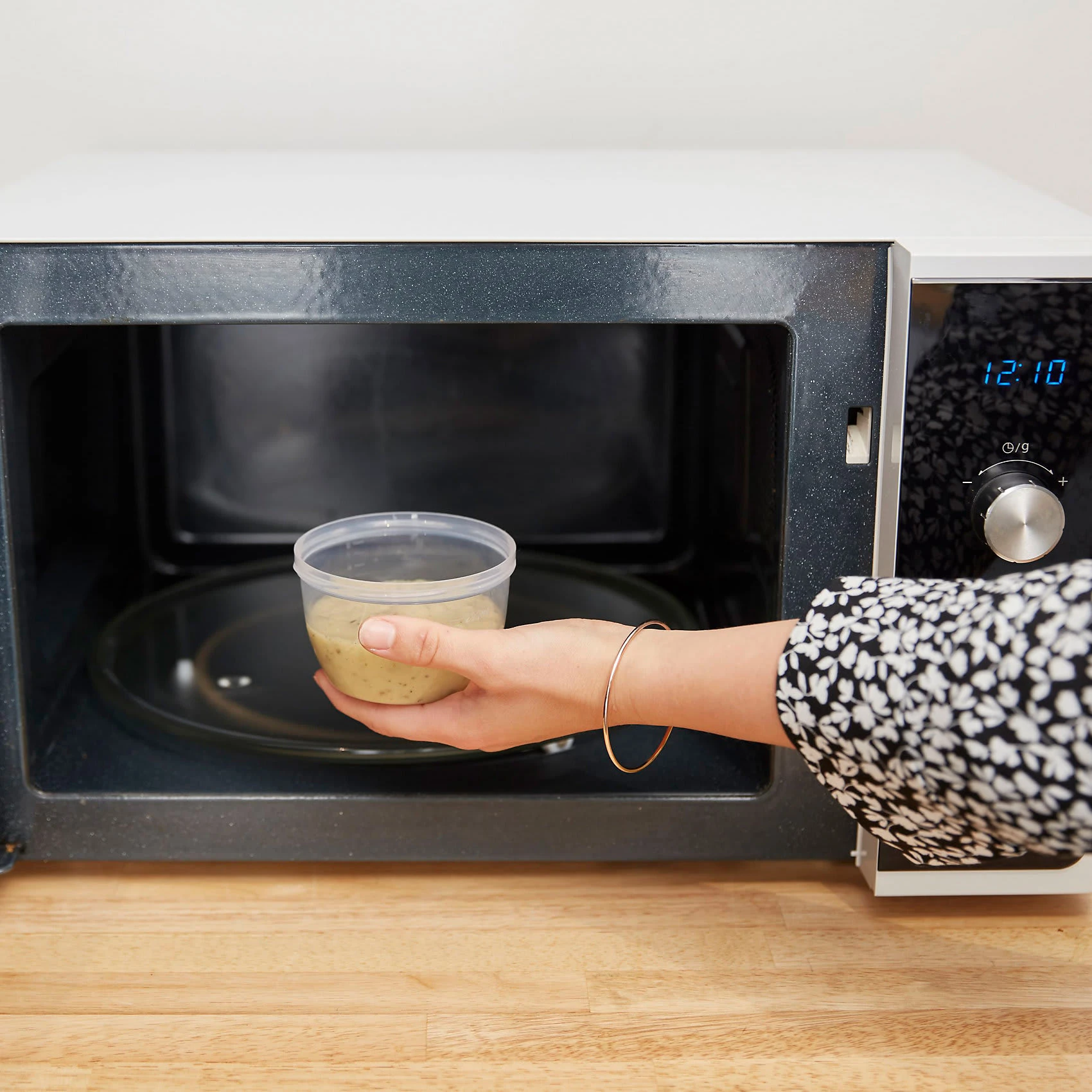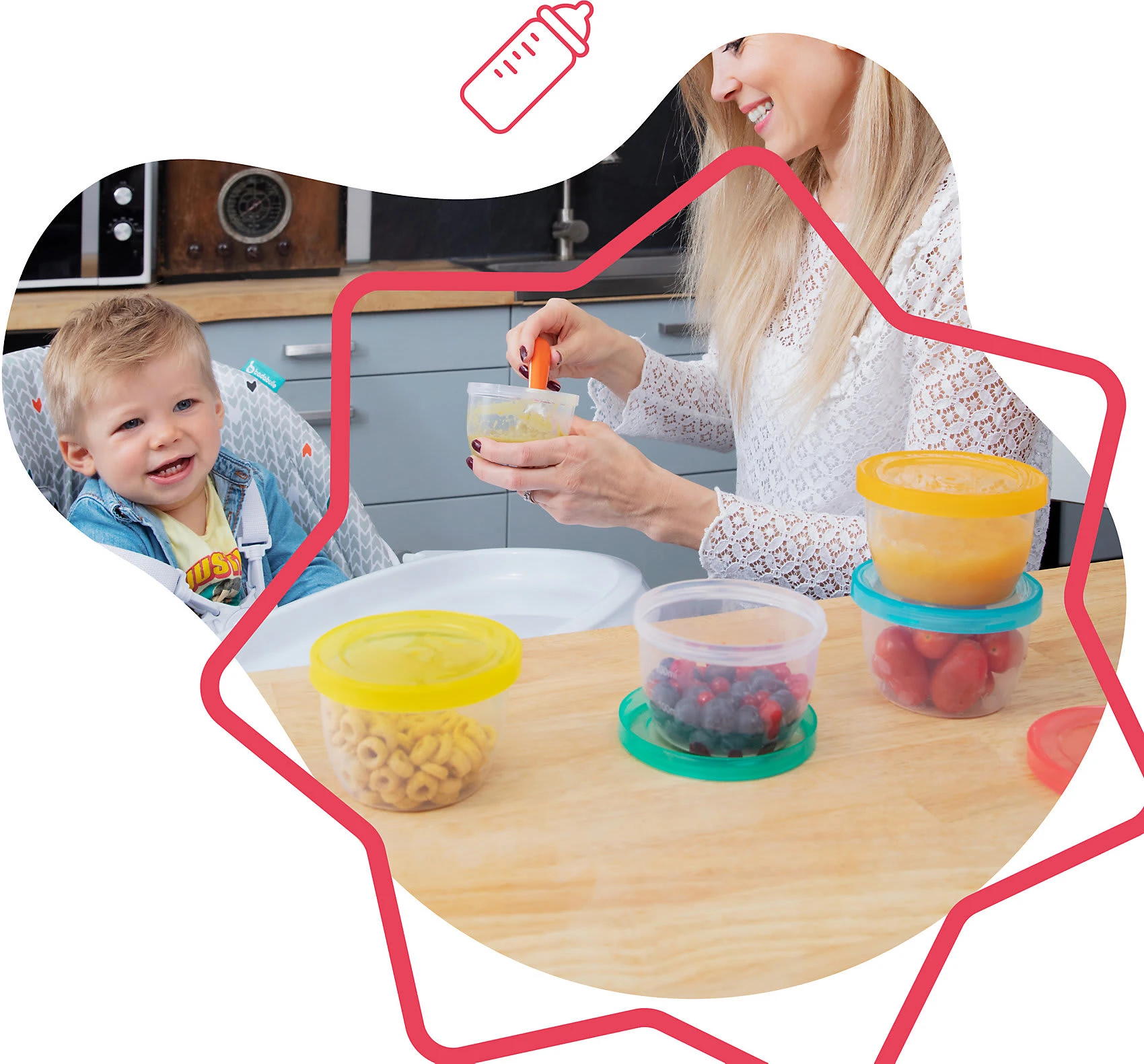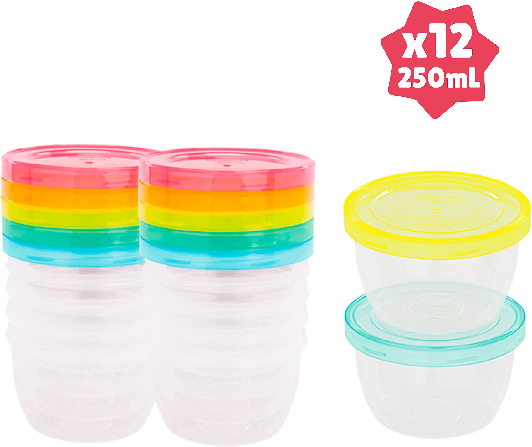 Dieses Set von badabulle besteht aus 12 Schüsseln mit passenden Deckeln, die sich zum Beispiel zum Mitnehmen von Mahlzeiten eignen, wenn man unterwegs ist. Mahlzeiten können in der Schüssel eingefroren oder auch erwärmt werden. Auf dem Deckel können Eltern notieren, bis wann der Inhalt noch haltbar ist, damit sie den Überblick nicht verlieren.