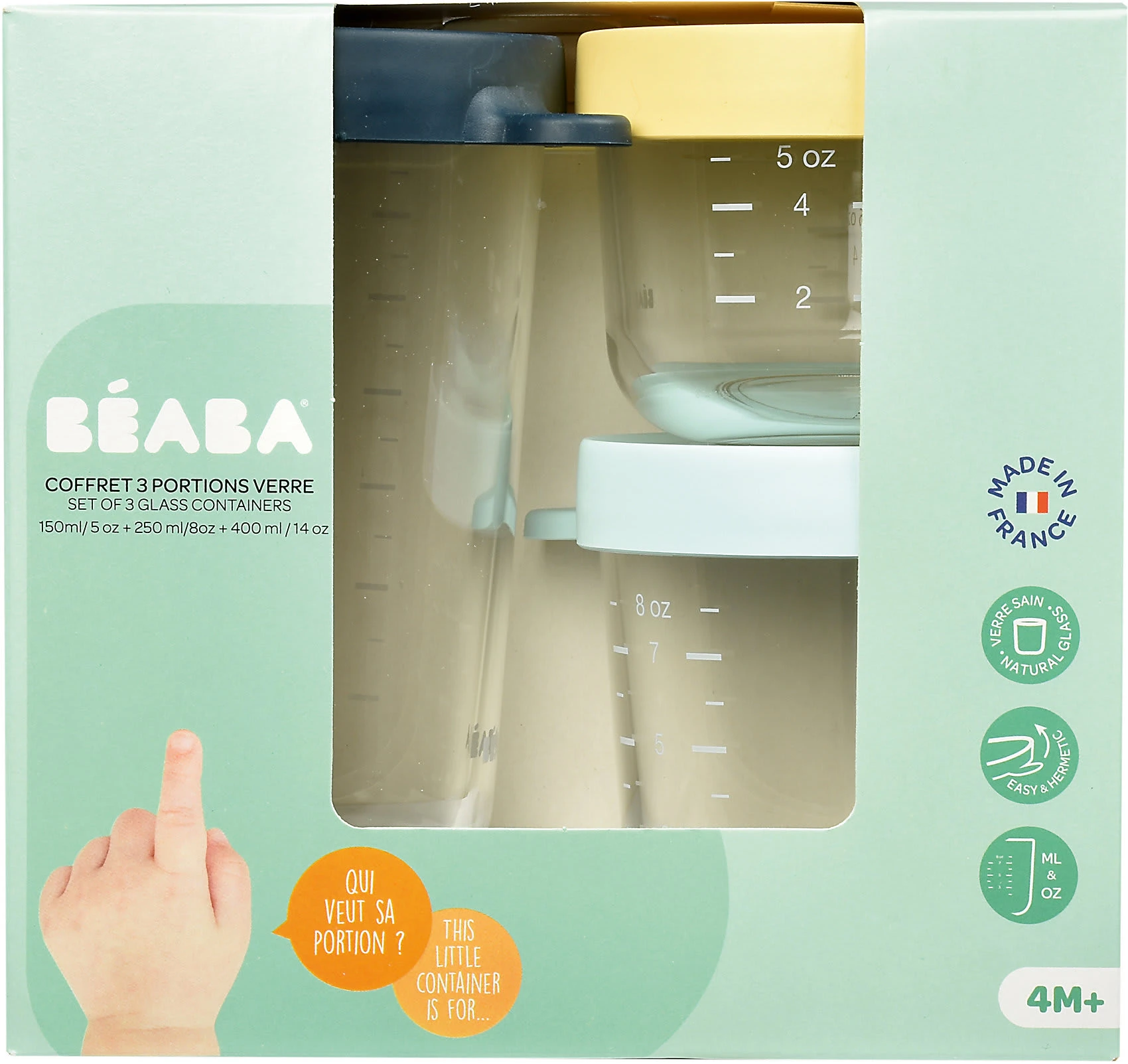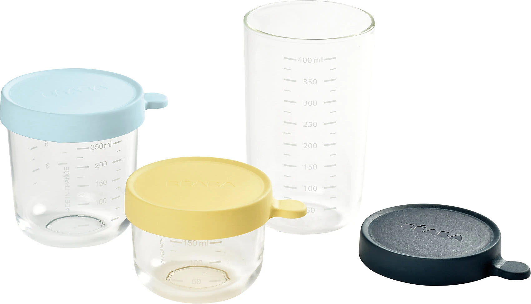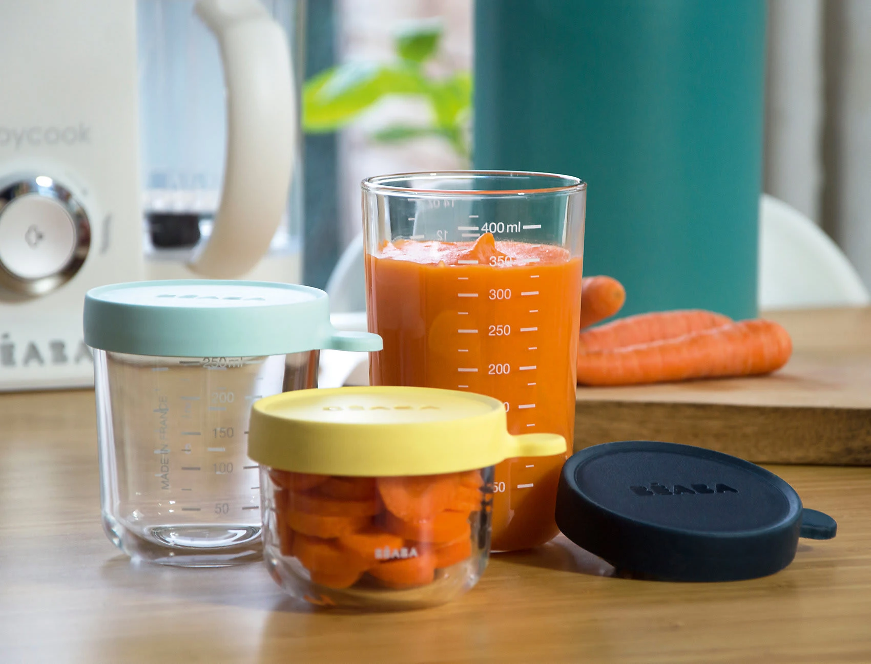 Die Portionsbehälter der Marke BÉABA bestehen aus hochwertigem Glas und sind somit auch zum Einfrieren und Erhitzen von Nahrung geeignet. Der weiche Deckel mit Clip schließt sicher.