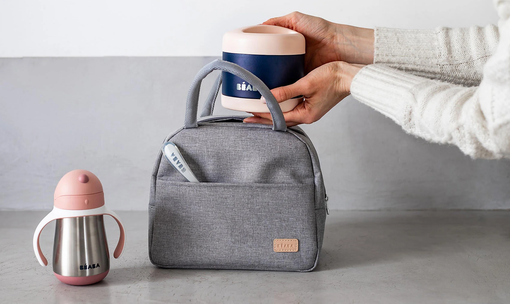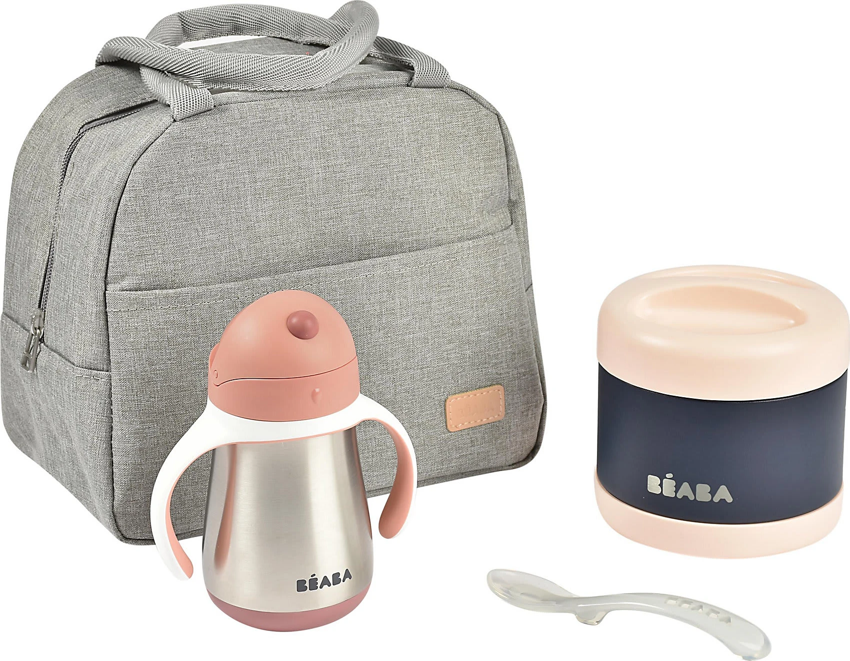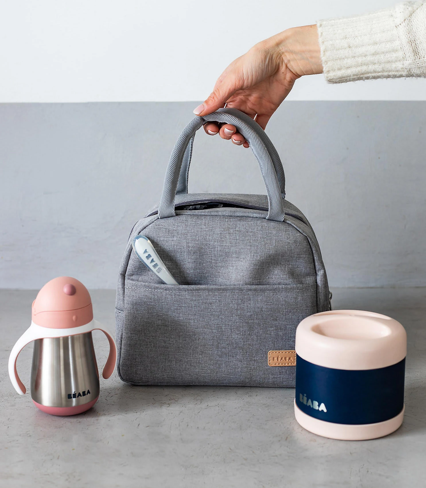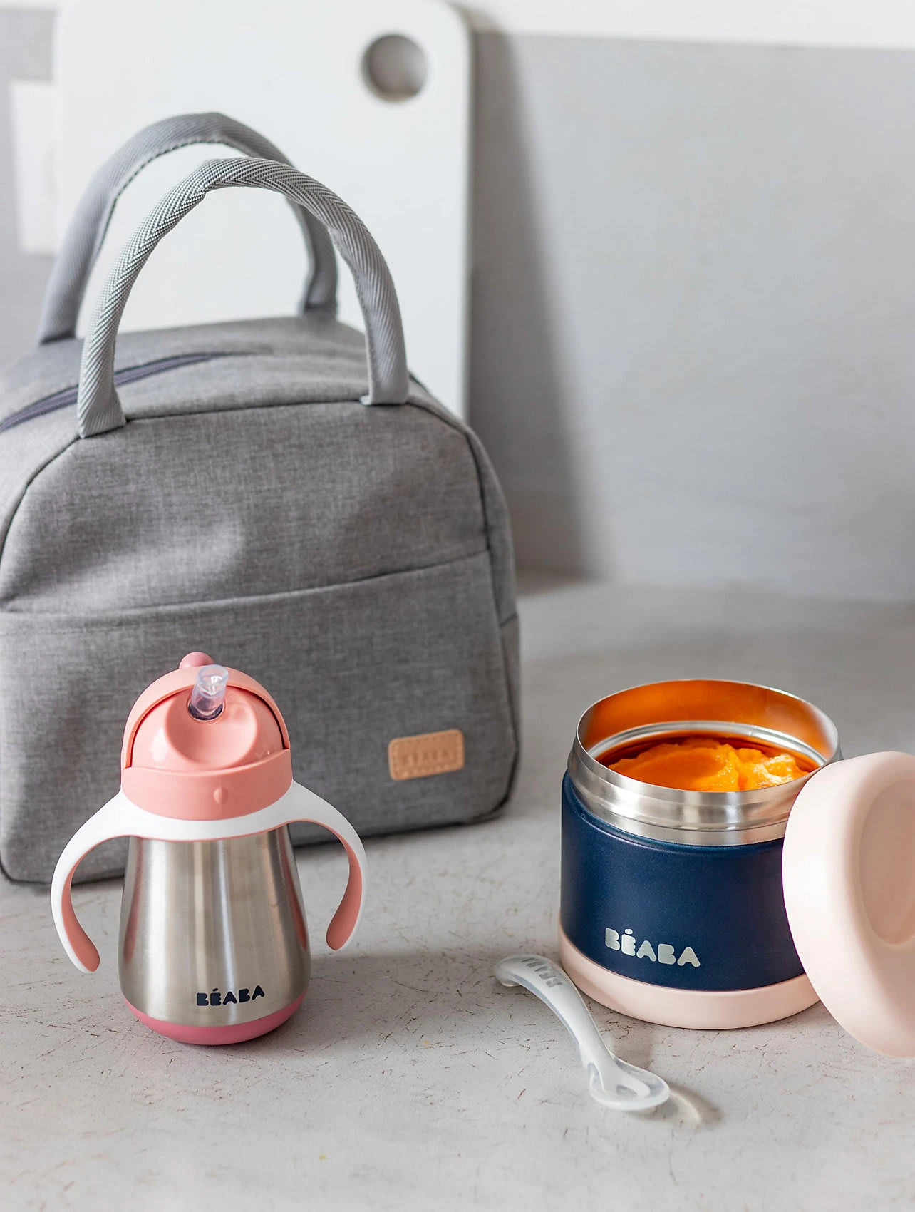 Die BÉABA On-the-go Mahlzeit-Tasche enthält ein komplettes Set für den einfachen Transport von Kleinkindermahlzeiten mit der richtigen Temperatur. Bestehend aus einer isolierten Lunchtasche mit Griffen, einem Edelstahl-Thermoportionsbehälter (ca. 500 ml), einem Edelstahl-Strohhalmbecher (ca. 250 ml) und einem Silikonlöffel, der ideal ab dem zweiten Lebensjahr geeignet ist.