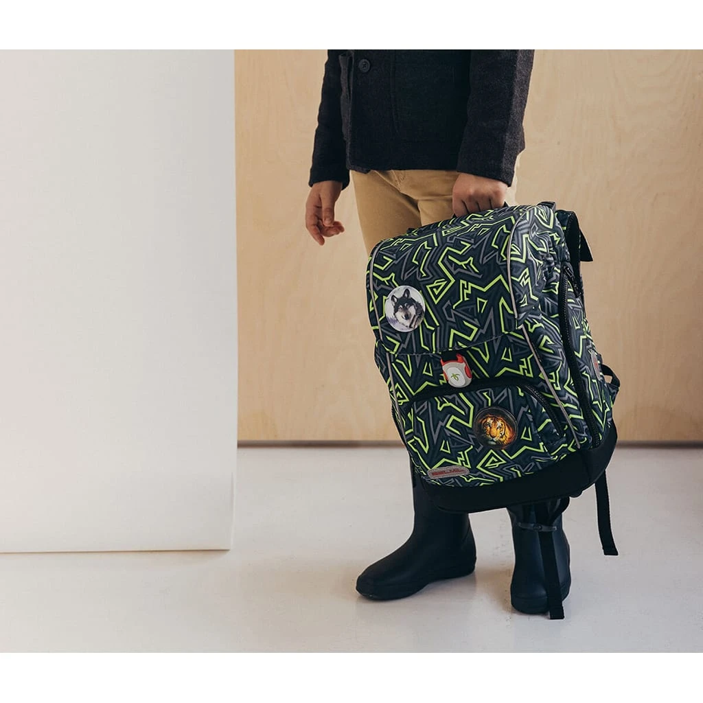 – Große Vortasche, praktisch aufgeteilte Fächer, die den Kindern helfen, ihre Schulsachen besser zu organisieren, elastische Seitentaschen (bis zu 0,7 l) und eine extra Halter mit Kordelzug