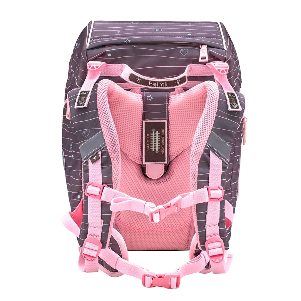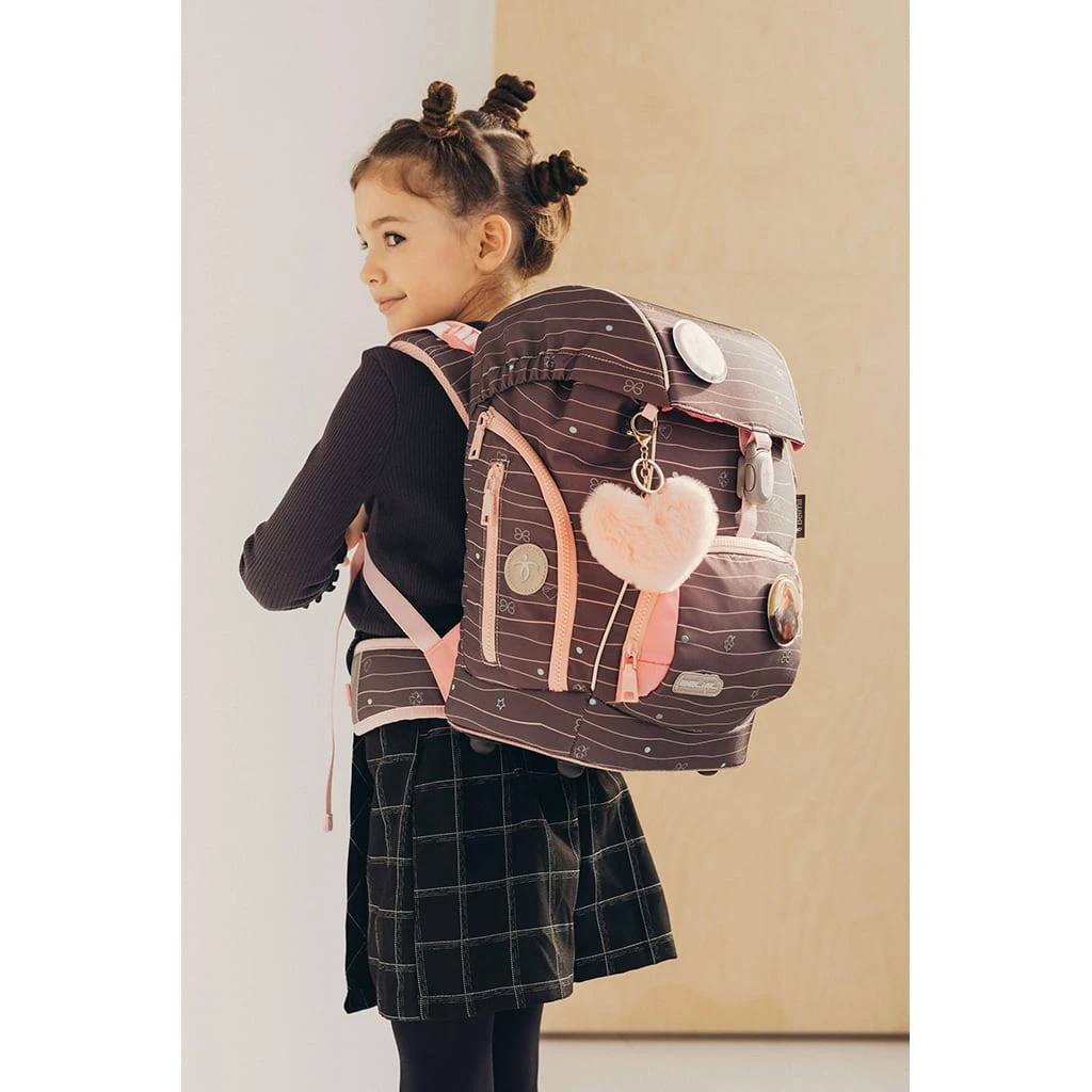 – Große Vortasche, praktisch aufgeteilte Fächer, die den Kindern helfen, ihre Schulsachen besser zu organisieren, elastische Seitentaschen (bis zu 0,7 l) und eine extra Halter mit Kordelzug
