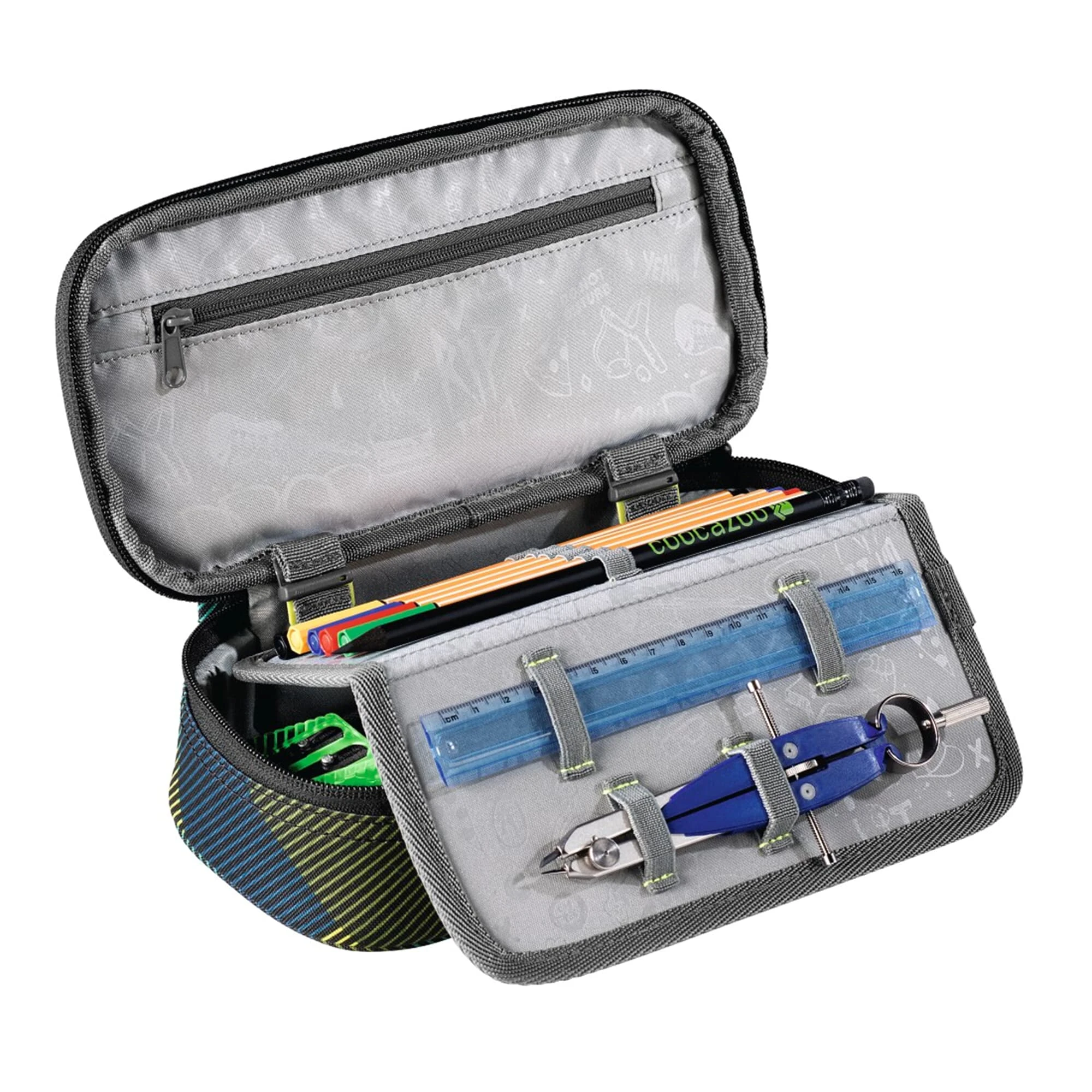 Alles andere als “schlampig” – dank Stifteorganizer Fächern für Geodreieck, Stundenplan und Krimskrams geht mit dem PencilDenzel Schulmäppchen nichts mehr so schnell verloren. Dank der klappbaren Flap mit Stiftehalterungen ist das gesamte Schreibwerkzeug auf den ersten Blick sichtbar. Das große Hauptfach bietet genügend Platz für Spitzer, Schere, Klebestift oder Lineale. Im extra Fach mit Reißverschluss lassen sich die kleinen Dinge wie Münzen, Tintenpatronen oder USB-Sticks sicher verstauen. So ist dein Kind perfekt für den Schulalltag gerüstet. Nachhaltige Produktion: Als bluesign® System Partner Mitglied der Fair Wear Foundation legt coocazoo Wert auf umweltfreundliche Herstellung unter fairen Arbeitsbedingungen und langlebige Qualität. Größe: 24 x 6 x 11 cm