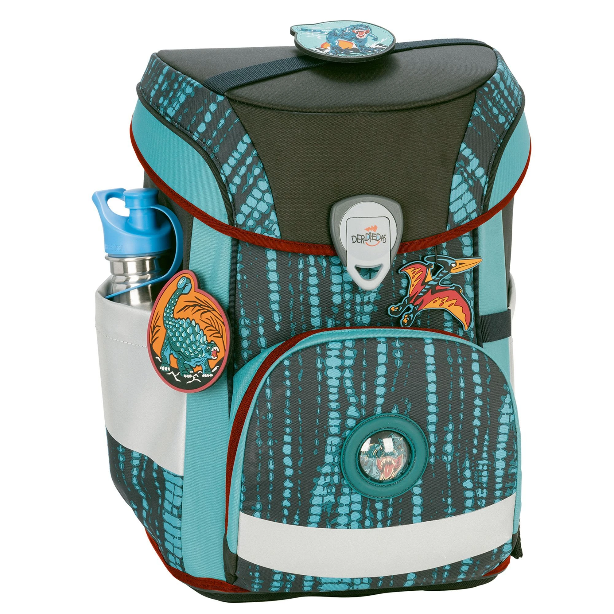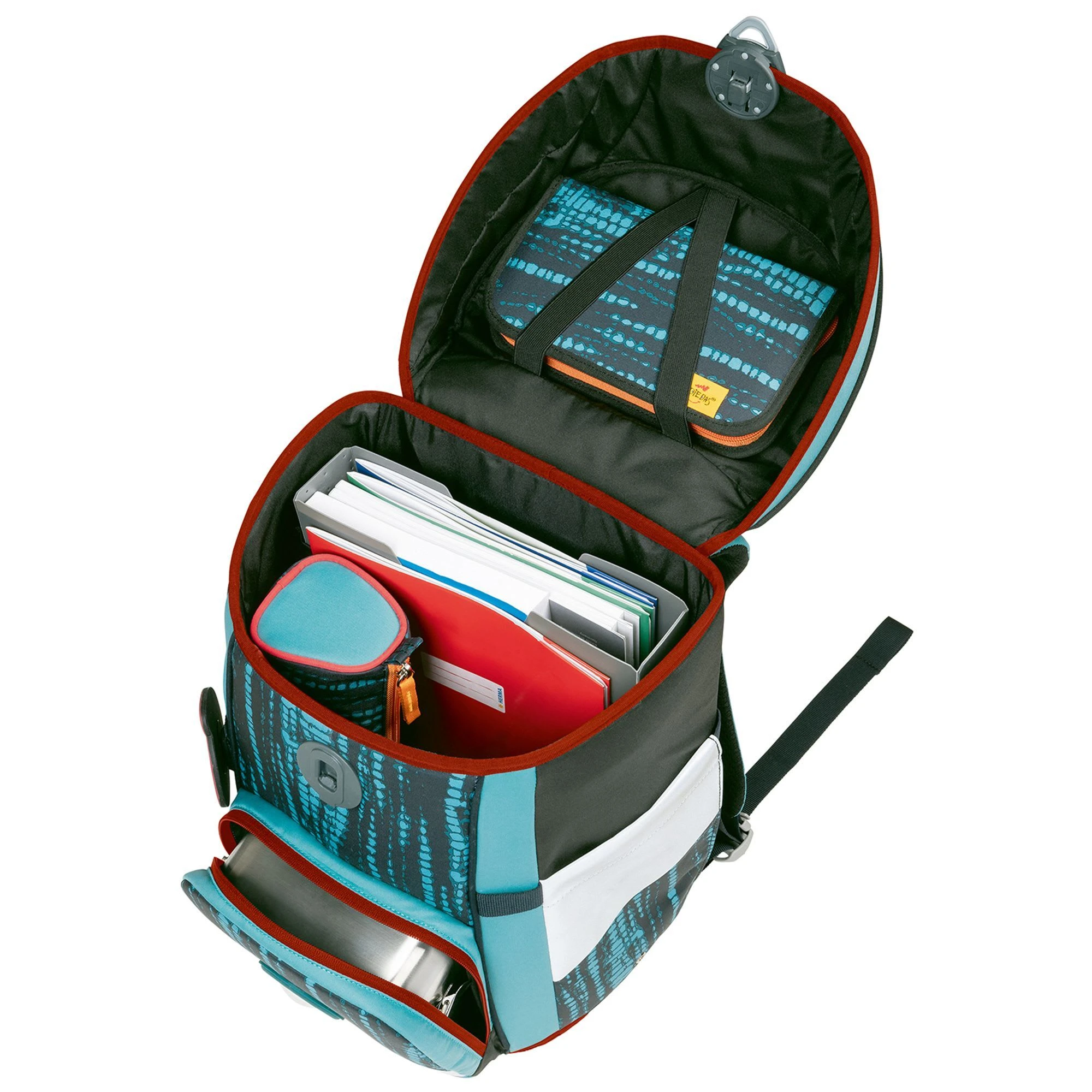 Modischer Schulranzen mit retroreflektierendem Material an Deckelklappe, Front, Tragegurt und Seitenflächen. Der Schulranzen hat eine tolle Optik und ist super leicht. Durch das 5tlg. Set ist das Kind perfekt für den Schulalltag ausgestattet. Das Set besteht aus: Schulranzen, Sportbeutel, gefülltem Schüleretui, Hefte Box, Schlampermäppchen und austauschbare Buttons.
