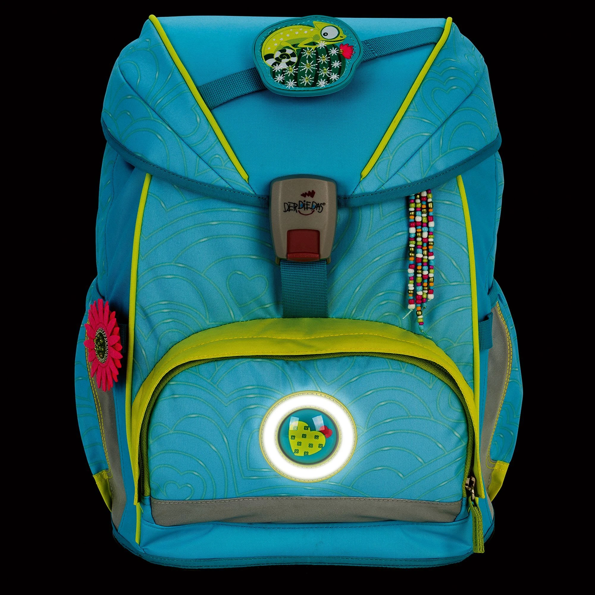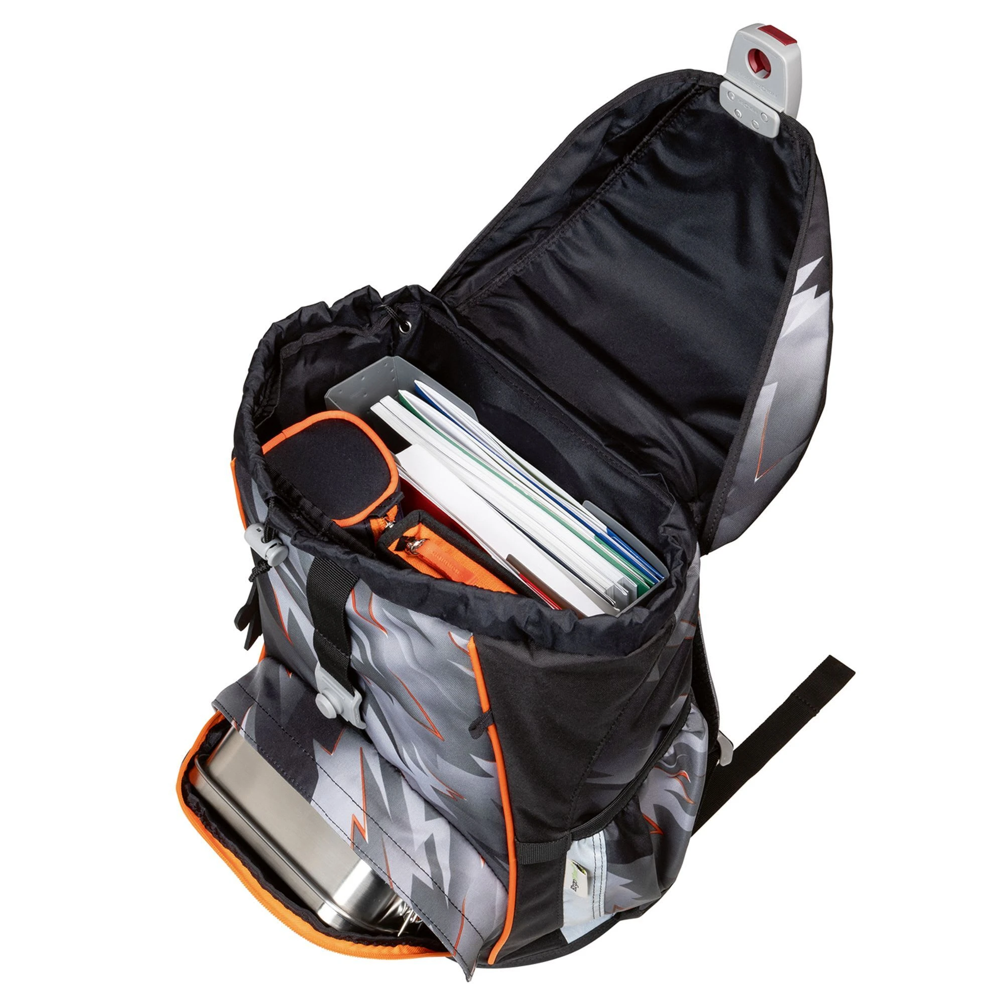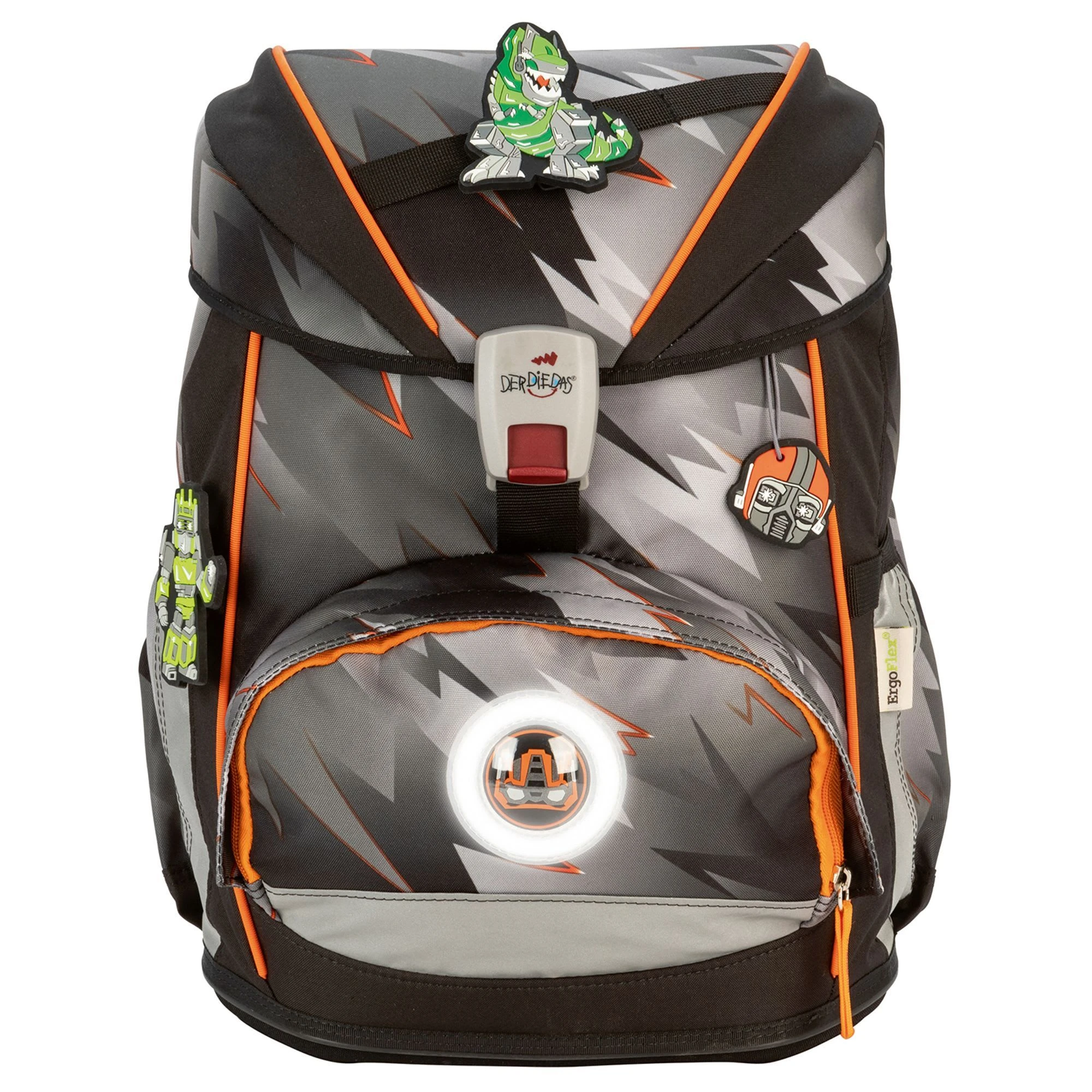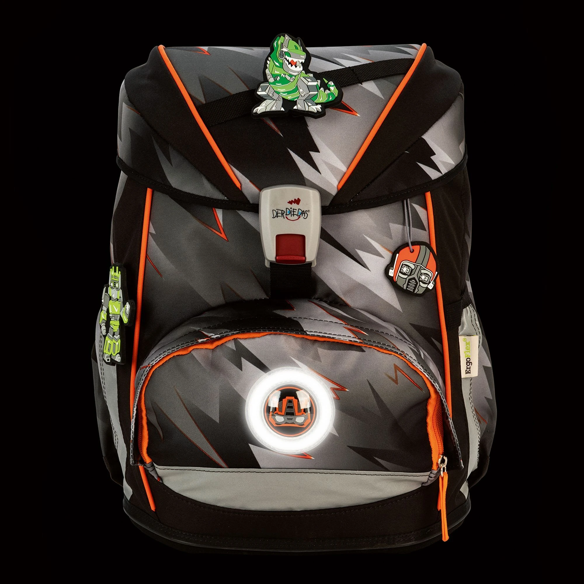 Modischer Schulranzen mit leuchtendem Ring in LED-Funktion um das Bullauge. Der Schulranzen hat eine tolle Optik und ist super leicht. Durch das 5tlg. Set ist das Kind perfekt für den Schulalltag ausgestattet. Das Set besteht aus: Schulranzen, Sportbeutel, gefülltem Schüleretui, Hefte Box, Schlampermäppchen, und austauschbare Buttons.