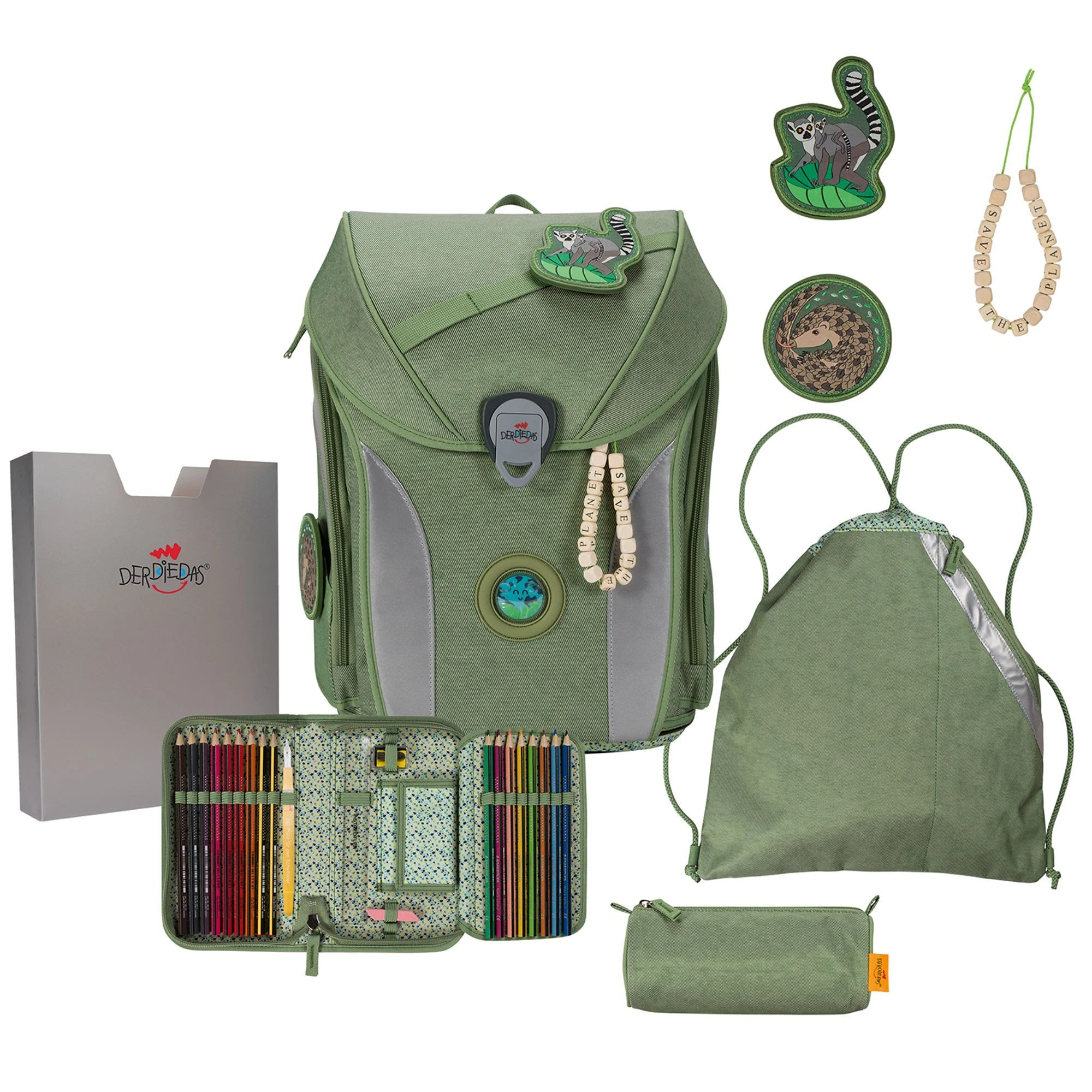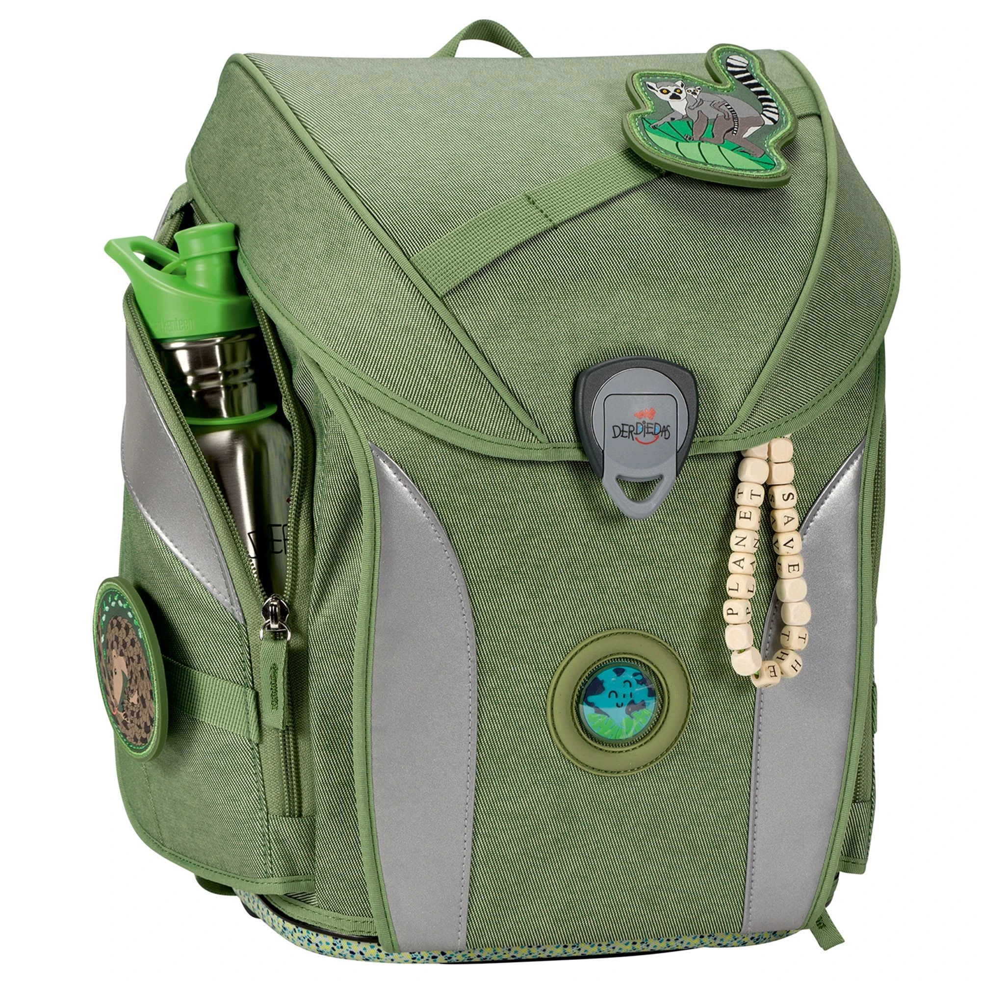 Modischer Schulranzen in toller Optik und super leichtem Gewicht. Die Eco Serie zeichnet sich dadurch aus, dass der Schulranzen aus 46% Bananenfasern und 54% recycelten PET-Flaschen besteht. Durch das 5tlg. Set ist das Kind perfekt für den Schulalltag ausgestattet. Das Set besteht aus: Schulranzen, Sportbeutel, gefülltem Schüleretui, Hefte Box, Schlampermäppchen, und austauschbare Buttons.