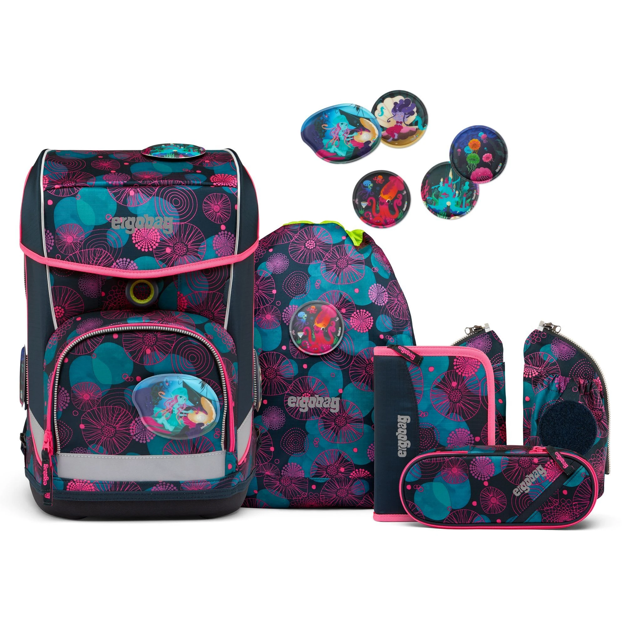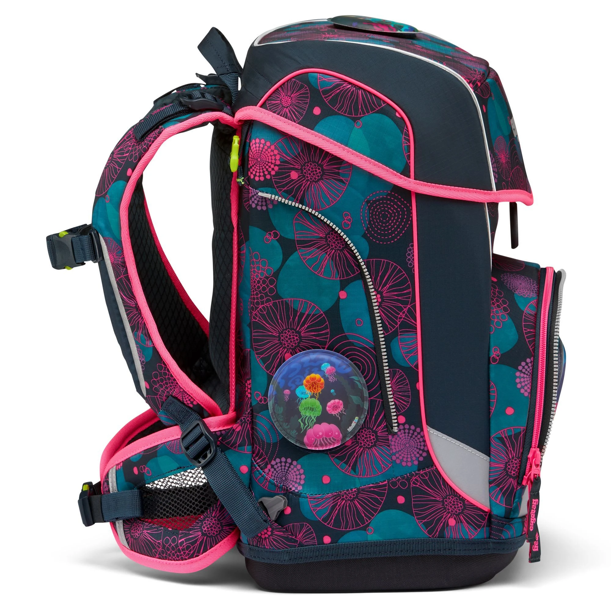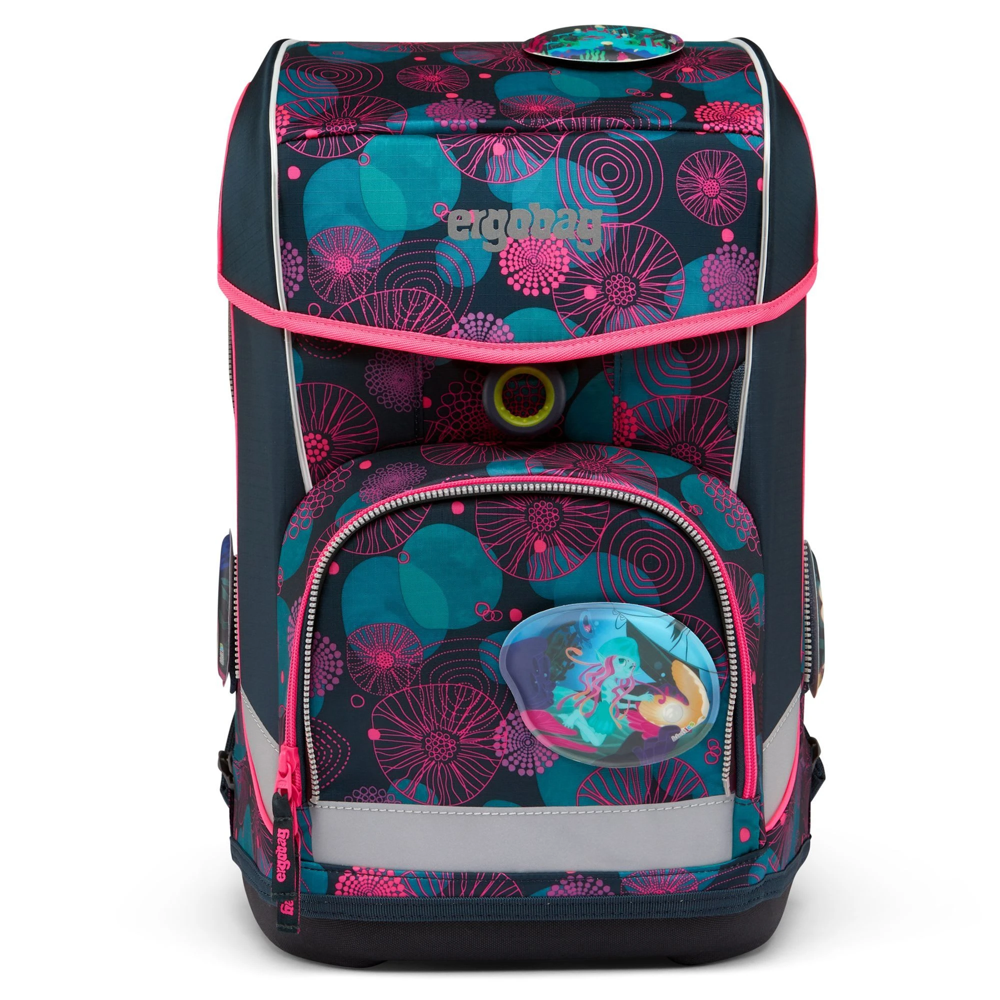 Der ergobag Cubo Schulranzen ab der 1. Klasse ergonomisch, individuell, nachhaltig und sichtbar. Der cubo light von ergobag kombiniert die klassische Form traditioneller Schulranzen mit dem Tragesystem des beliebten ergobag-Schulrucksacks. Dank breiter Beckenflossen wird das Gewicht von den Schultern auf den stabilen Beckenbereich verlagert. Die Kletties bieten, wie bei ergobag beliebt, individuell den cubo zu gestalten. Ergobag benutzt für die Herstellung des Ranzens recycelte PET-Flaschen um die Umwelt zu schützen. An den cubo Schulranzen können die passenden Sicherheitsset, für noch mehr Sicherheit im Straßenverkehr zusätzlich erworben werden. Er hat einen standfesten Boden. Der Ranzen unterstützt die Bewegungsfreiheit der kleinen Träger, denn er sitzt durch Becken- und Brustgurt angenehm nah am Rücken, sogar beim Herumtoben. Set bestehend aus: – Schulranzen – Seitentaschen (2-tlg.) – Sportbeutel – Schlampermäppchen – Federmäppchen (22-tlg.) – Kletties-Set (5-tlg.)