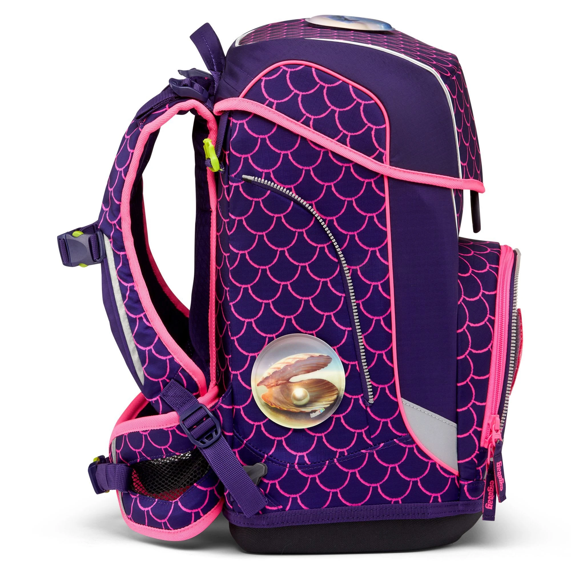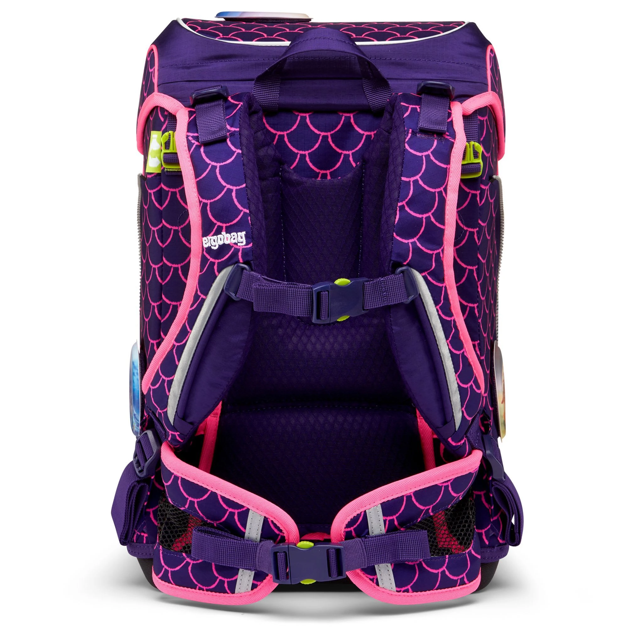 Der ergobag Cubo Schulranzen ab der 1. Klasse ergonomisch, individuell, nachhaltig und sichtbar. Der cubo light von ergobag kombiniert die klassische Form traditioneller Schulranzen mit dem Tragesystem des beliebten ergobag-Schulrucksacks. Dank breiter Beckenflossen wird das Gewicht von den Schultern auf den stabilen Beckenbereich verlagert. Die Kletties bieten, wie bei ergobag beliebt, individuell den cubo zu gestalten. Ergobag benutzt für die Herstellung des Ranzens recycelte PET-Flaschen um die Umwelt zu schützen. An den cubo Schulranzen können die passenden Sicherheitsset, für noch mehr Sicherheit im Straßenverkehr zusätzlich erworben werden. Er hat einen standfesten Boden. Der Ranzen unterstützt die Bewegungsfreiheit der kleinen Träger, denn er sitzt durch Becken- und Brustgurt angenehm nah am Rücken, sogar beim Herumtoben. Set bestehend aus: – Schulranzen – Seitentaschen (2-tlg.) – Sportbeutel – Schlampermäppchen – Federmäppchen (22-tlg.) – Kletties-Set (5-tlg.)