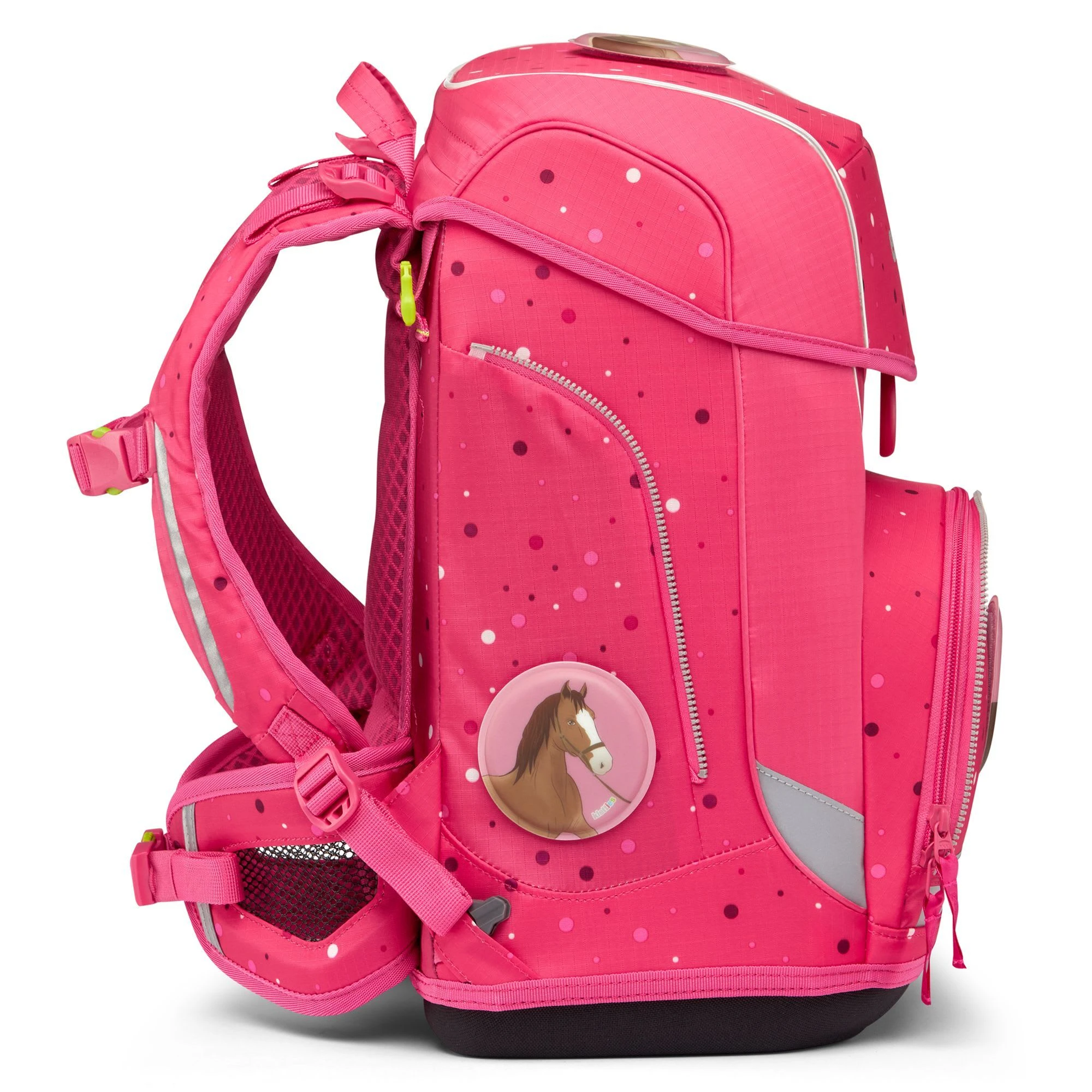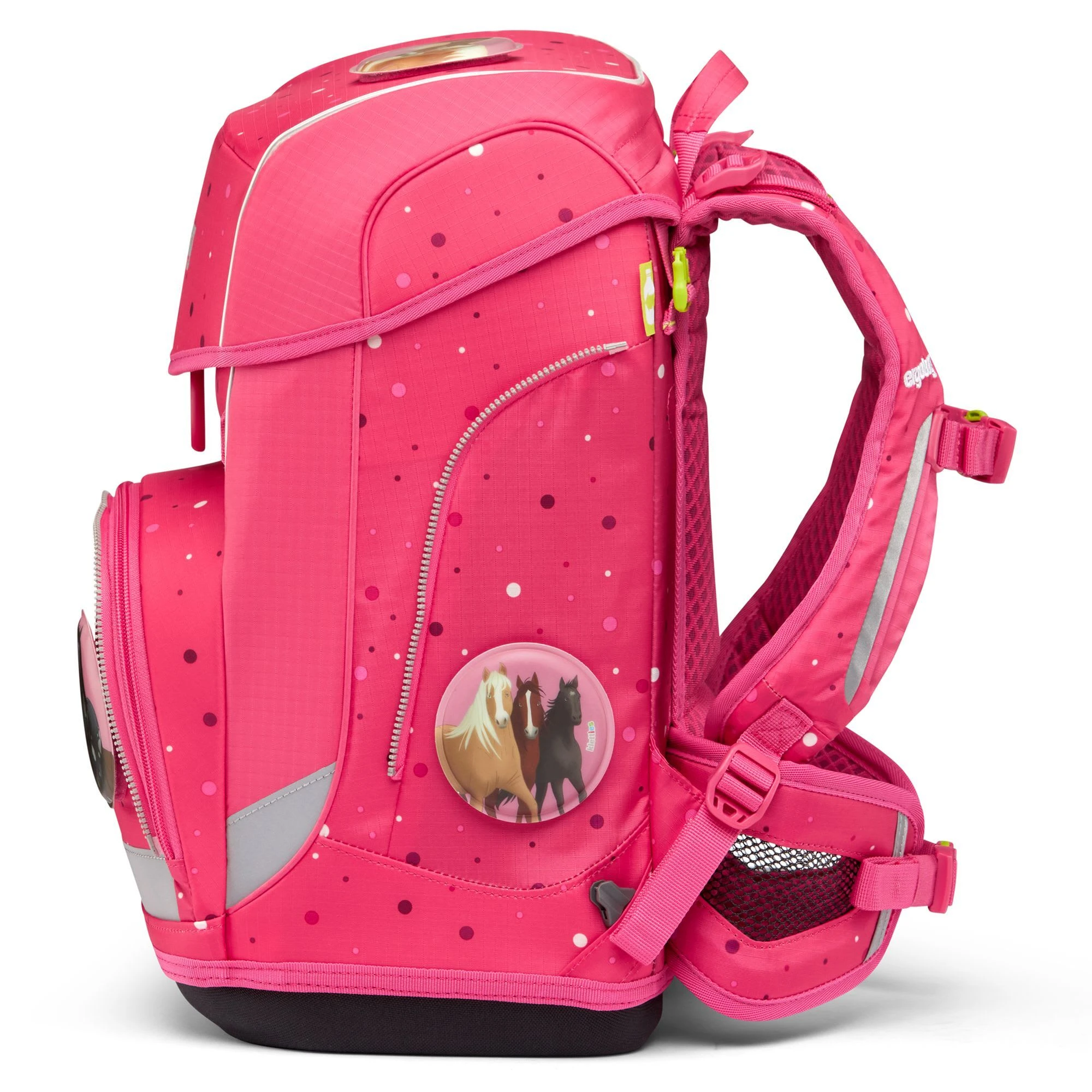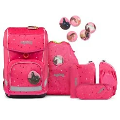 Der ergobag Cubo Schulranzen ab der 1. Klasse ergonomisch, individuell, nachhaltig und sichtbar. Der cubo light von ergobag kombiniert die klassische Form traditioneller Schulranzen mit dem Tragesystem des beliebten ergobag-Schulrucksacks. Dank breiter Beckenflossen wird das Gewicht von den Schultern auf den stabilen Beckenbereich verlagert. Die Kletties bieten, wie bei ergobag beliebt, individuell den cubo zu gestalten. Ergobag benutzt für die Herstellung des Ranzens recycelte PET-Flaschen um die Umwelt zu schützen. An den cubo Schulranzen können die passenden Sicherheitsset, für noch mehr Sicherheit im Straßenverkehr zusätzlich erworben werden. Er hat einen standfesten Boden. Der Ranzen unterstützt die Bewegungsfreiheit der kleinen Träger, denn er sitzt durch Becken- und Brustgurt angenehm nah am Rücken, sogar beim Herumtoben. Set bestehend aus: – Schulranzen – Seitentaschen (2-tlg.) – Sportbeutel – Schlampermäppchen – Federmäppchen (22-tlg.) – Kletties-Set (5-tlg.)