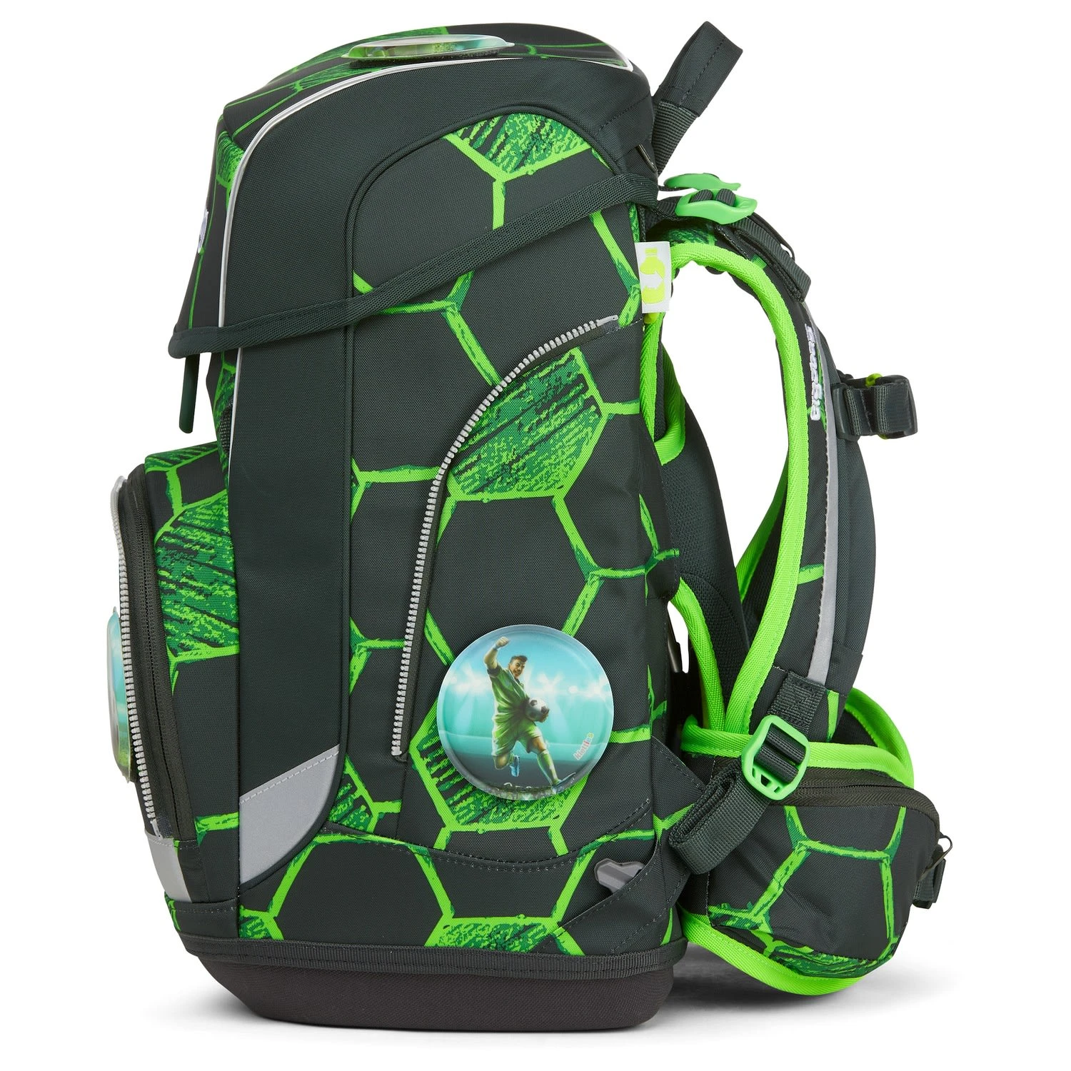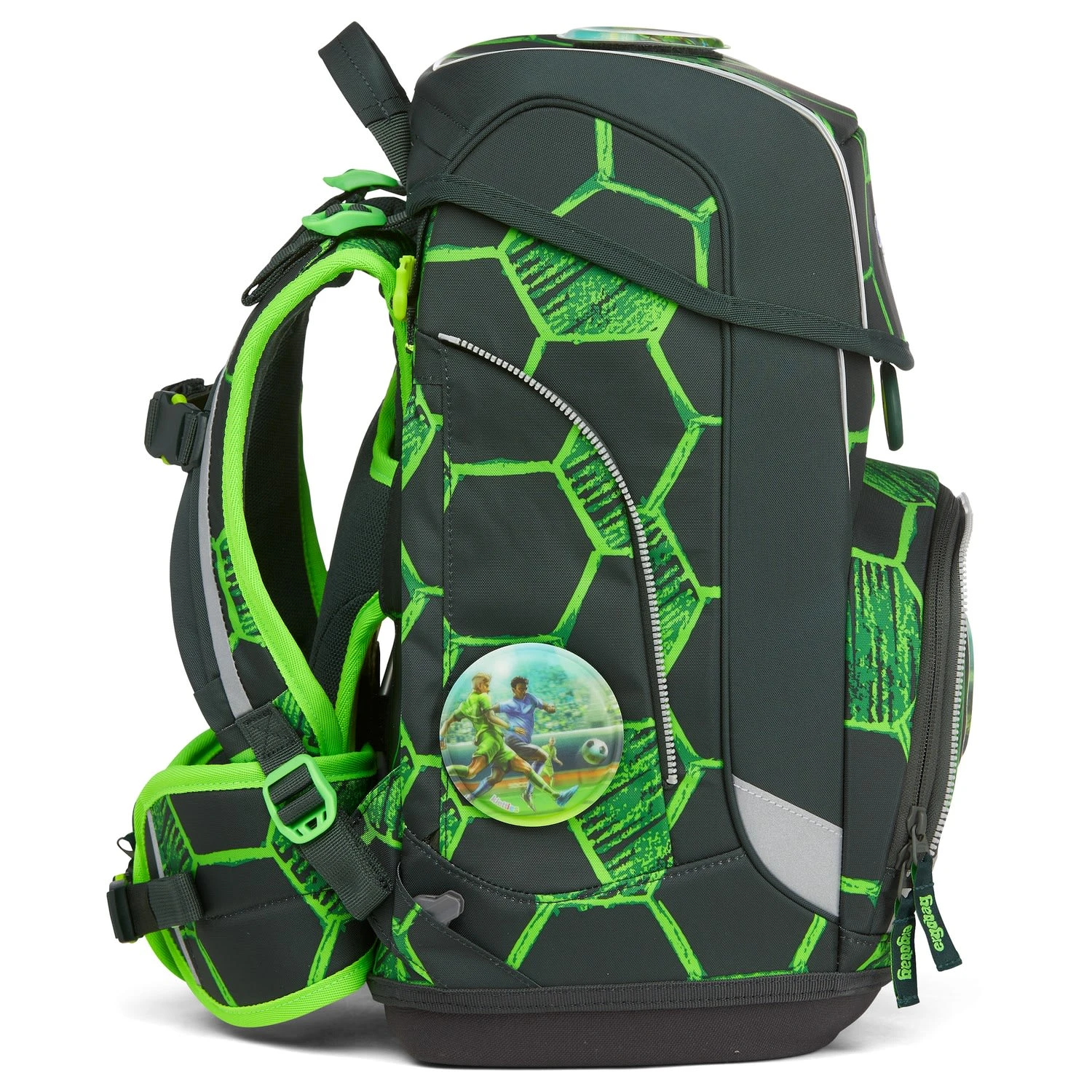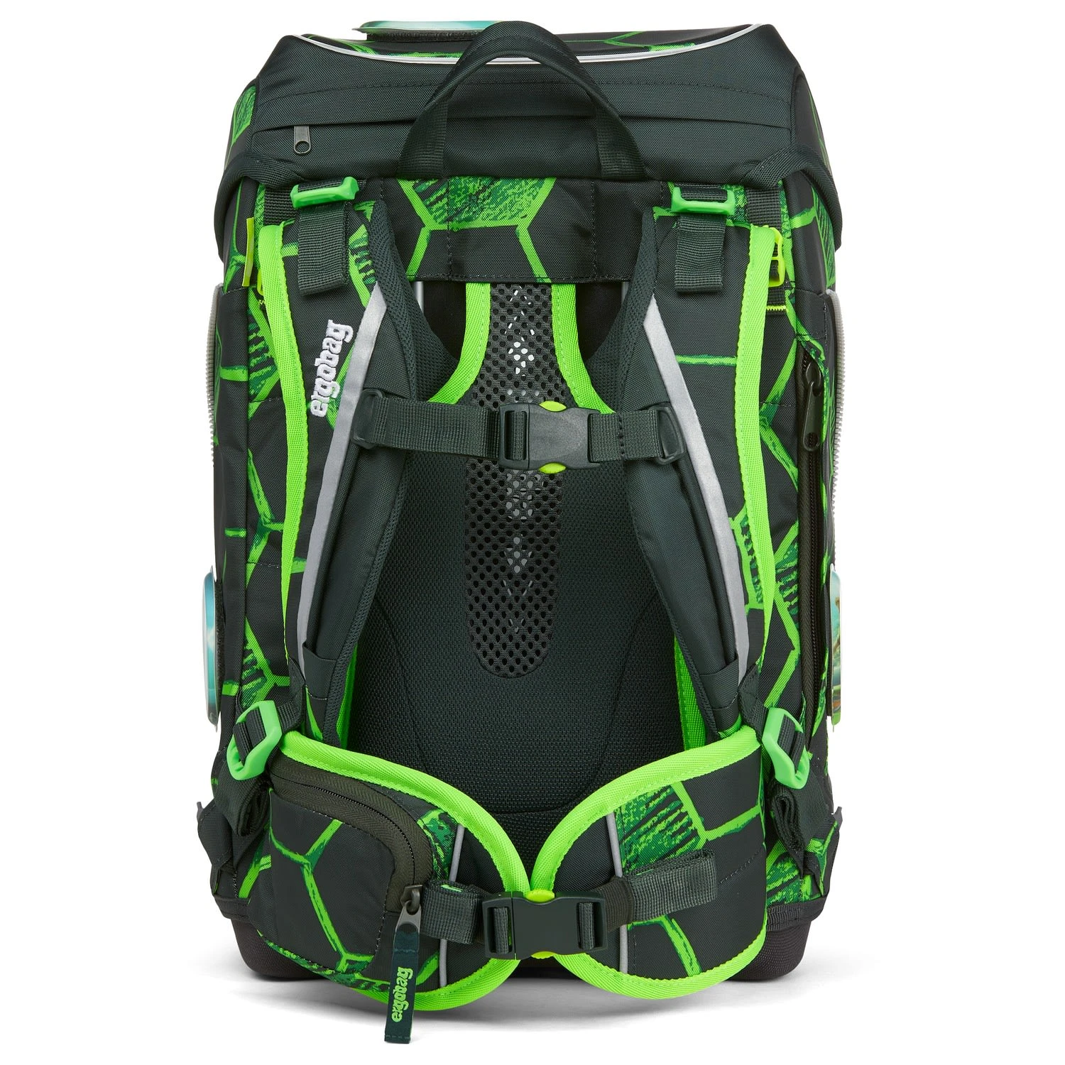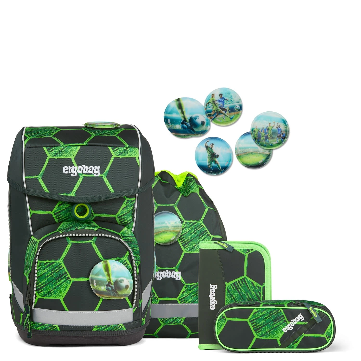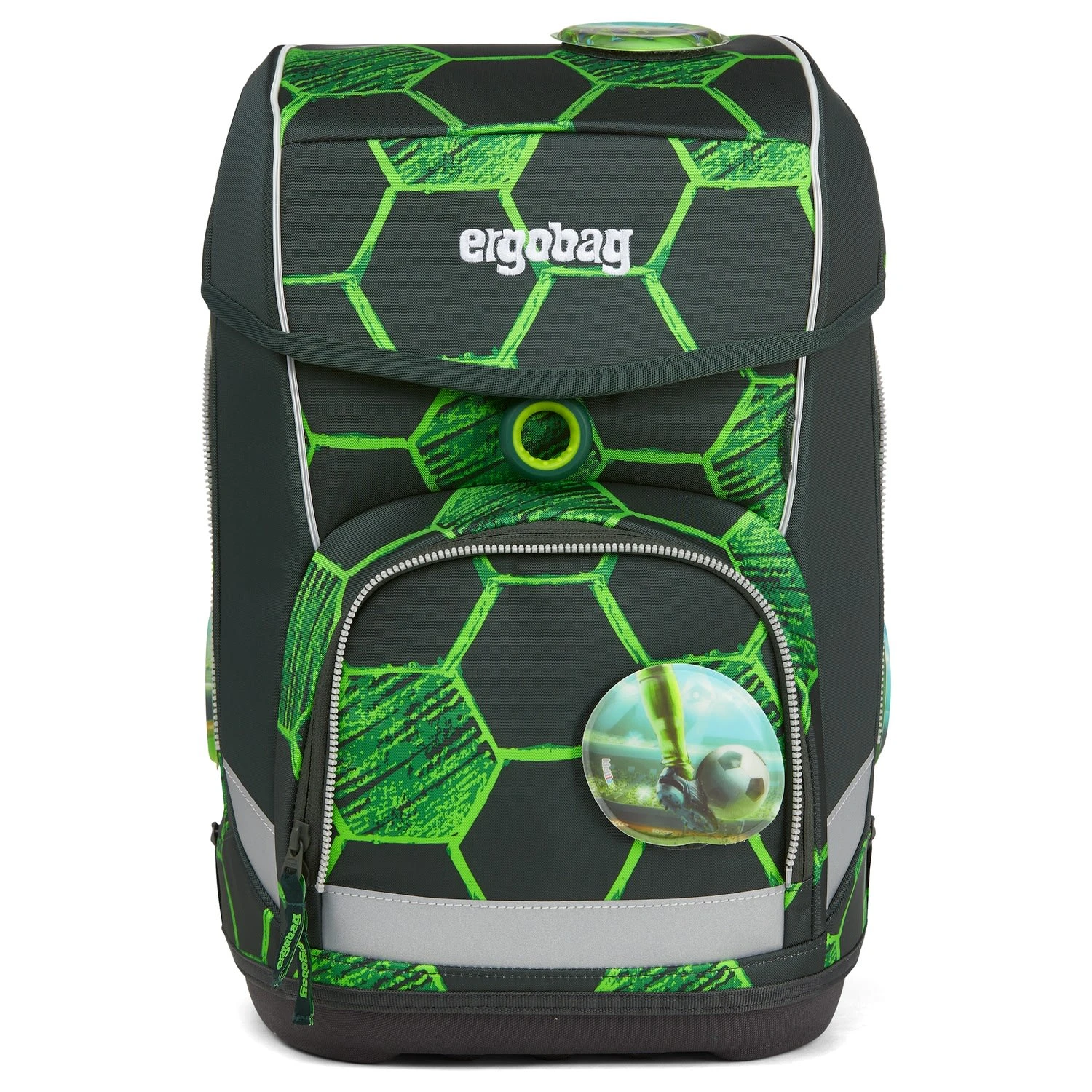 Der ergobag cuboEin Schulranzen in klassischer traditioneller Form oder vielleicht doch lieber ein Schulrucksack mit ergonomischem, rücken entlastenden Tragesystem?Die Besonderheiten des ergobag cubo auf einen Blick:Hochformatiger Container bietet viel Armbewegungsfreiheit für die kleinen TrägerStabile Beckenflossen sichern die Gewichtsverlagerung auf den Beckenbereich ? erstmalig auch konsequent für einen Schulranzen umgesetzt.Lässt sich stufenlos auf die Körpergröße einstellen und wächst mit: von 1,10m bis 1, 50mLeichte Handhabung des Deckels durch selbstschließenden Magnetverschluss Standfester und wasserdichter Boden ermöglicht ein Abstellen auch auf unebenem und nassem UntergrundMit Regencapestoff ausgestattete Fronttasche inklusive Trinkflaschenhalter für einen sicheren und ergonomisch sinnvollen Transport einer Butterbrotdose und einer 0,5 l TrinkflascheZwei Innenfächer mit Reißverschluss: eines im Deckel für das Regencape, das andere für Kleinigkeiten wie Kleingeld oder SchlüsselGute Sichtbarkeit durch Reflektoren rundherumIndividualisierbar durch Kletties und Zip-SetsBesonders auffällig durch fluoreszierende Farben5-teiliges Set bestehend aus