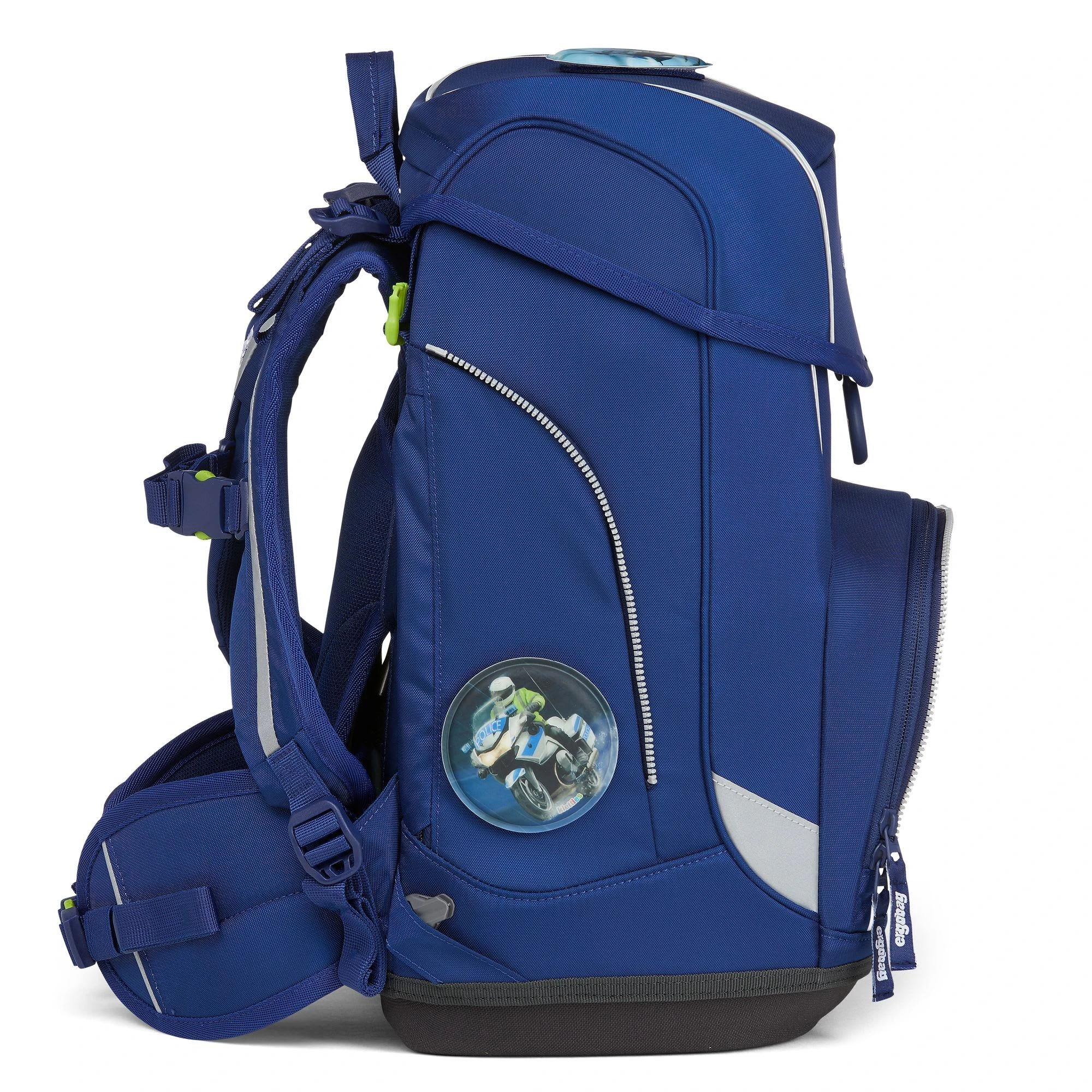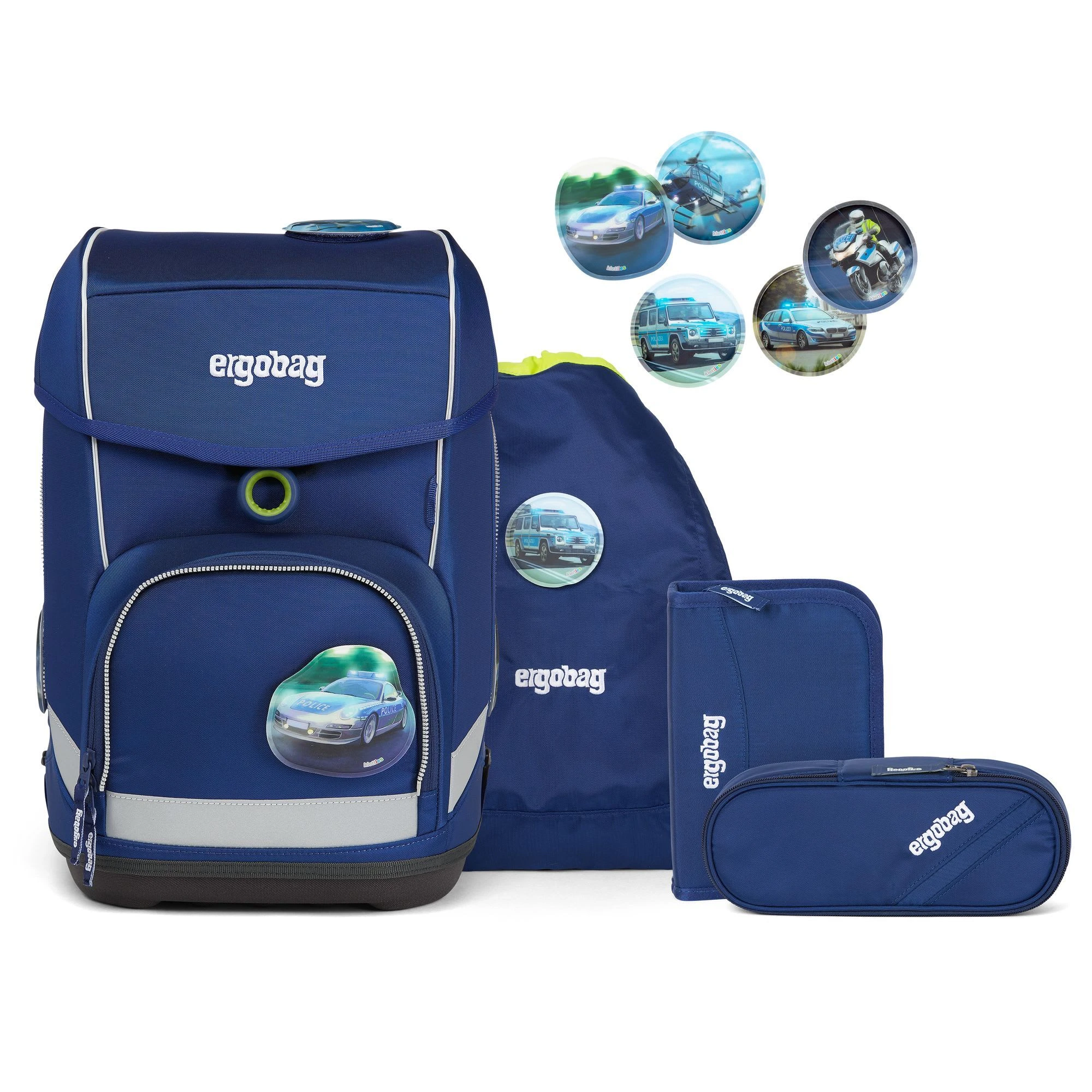 5-teiliges Schulranzen-Set von Ergobag aus “Galaxy Glow”-Edition, bestehend aus Schulranzen, Sportbeutel, Schlamperrolle, 22-tlg. Schlampermäppchen und 5-tlg. Klettie-Set.