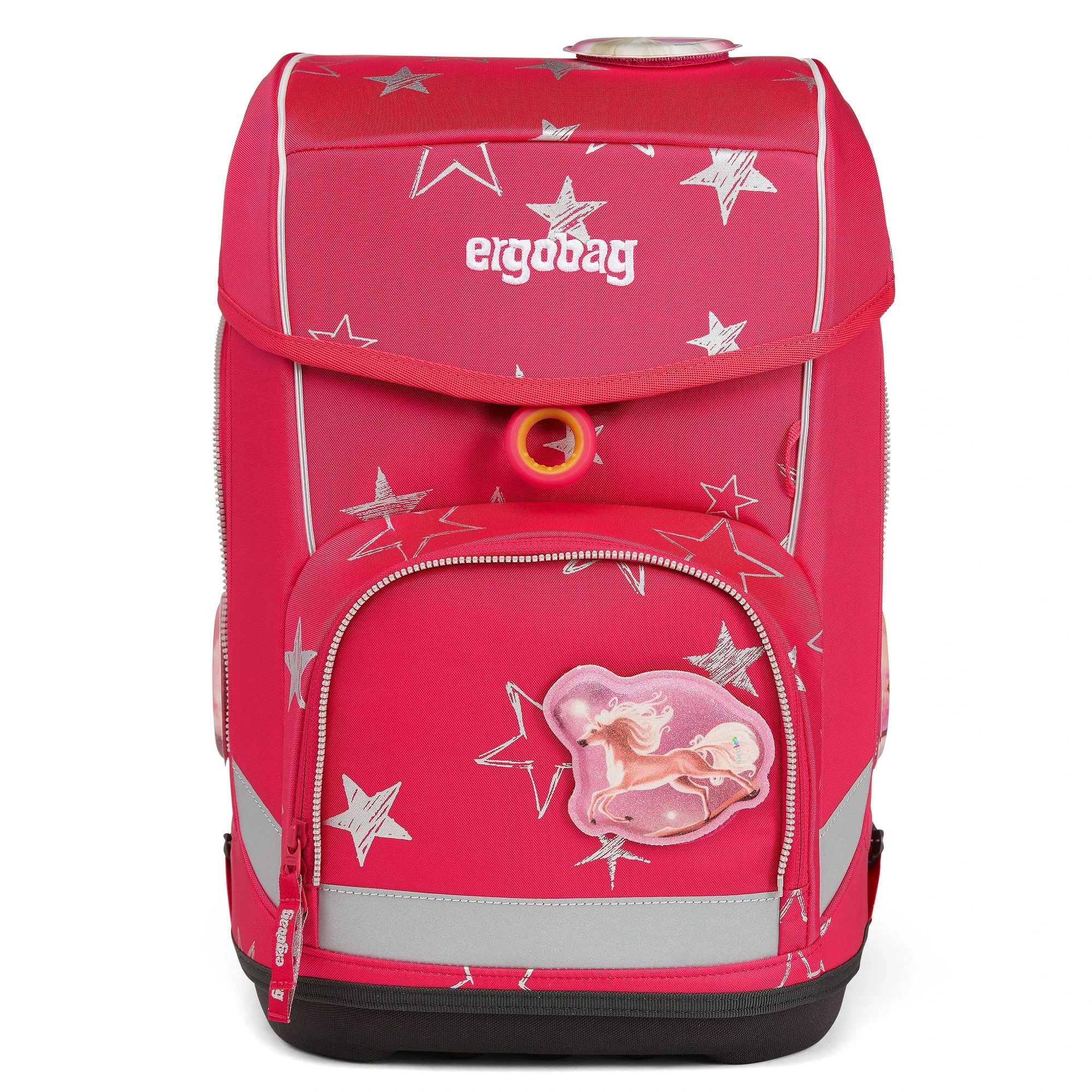5-teiliges Schulranzen-Set von Ergobag aus “Galaxy Glow”-Edition, bestehend aus Schulranzen, Sportbeutel, Schlamperrolle, 22-tlg. Schlampermäppchen und 5-tlg. Klettie-Set.