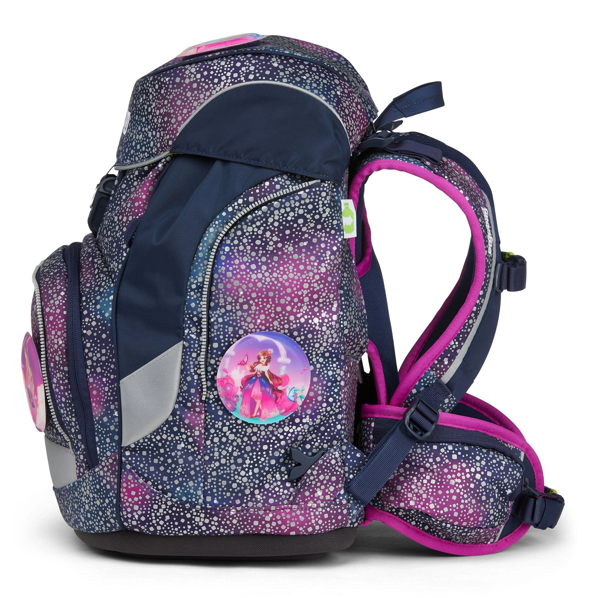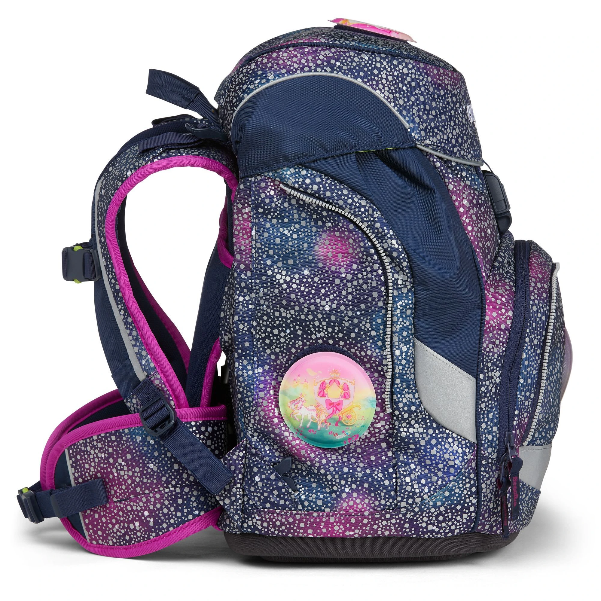 Der Ergobag Pack Schulranzen ab der 1. Klasse ergonomisch, individuell, nachhaltig und sichtbar. Der Pack von ergobag kombiniert die klassische Form traditioneller Schulranzen mit dem Tragesystem des beliebten ergobag-Schulrucksacks. Dank breiter Beckenflossen wird das Gewicht von den Schultern auf den stabilen Beckenbereich verlagert. Ergobag benutzt für die Herstellung des Ranzens recycelte PET-Flaschen um die Umwelt zu schützen, für diesen Ranzen wurden mehrere Flaschen verarbeitet. An den Pack Schulranzen können die passenden Sicherheitssets, für noch mehr Sicherheit im Straßenverkehr angebracht werden. Er hat einen standfesten Boden. Der Ranzen unterstützt die Bewegungsfreiheit der kleinen Träger, denn er sitzt durch Becken- und Brustgurt angenehm nah am Rücken, sogar beim Herumtoben.