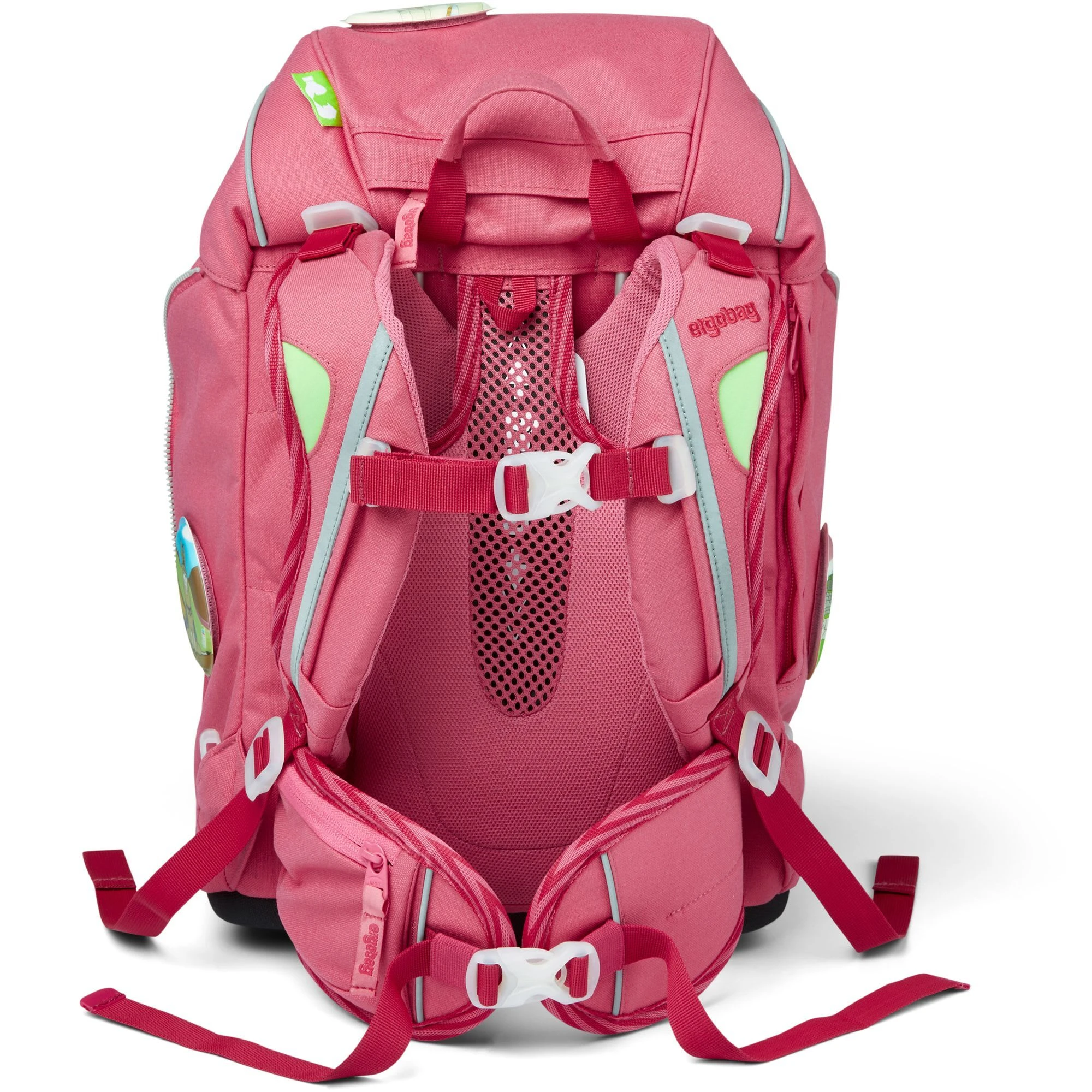Der Ergobag Pack Schulranzen ab der 1. Klasse ergonomisch, individuell, nachhaltig und sichtbar. Der Pack von ergobag kombiniert die klassische Form traditioneller Schulranzen mit dem Tragesystem des beliebten ergobag-Schulrucksacks. Dank breiter Beckenflossen wird das Gewicht von den Schultern auf den stabilen Beckenbereich verlagert. Die Kletties bieten, wie bei ergobag beliebt, individuell den cubo zu gestalten. Ergobag benutzt für die Herstellung des Ranzens recycelte PET-Flaschen um die Umwelt zu schützen, für diesen Ranzen wurden mehrere Flaschen verarbeitet. An den cubo Schulranzen können die passenden Sicherheitsset, für noch mehr Sicherheit im Straßenverkehr. Er hat einen standfesten Boden. Bewegung und Haltung beeinflussen unser Körperbewusstsein und können die Persönlichkeitsentwicklung fördern. Studien zeigen, dass Kinder, die sich viel bewegen, unabhängiger, kontaktfreudiger und motivierter sind. Der Ranzen unterstützt die Bewegungsfreiheit der kleinen Träger, denn er sitzt durch Becken- und Brustgurt angenehm nah am Rücken, sogar beim Herumtoben. Set bestehend aus: – Schulranzen – Sportrucksack – Schlampermäppchen – Federmäppchen – Kletties 1 – Heftbox. Schulranzen Größe: 25cm x 20cm x 40cm Gewicht: ca. 1.100 g Volumen: ca. 20 Liter Beckengurt mit Beckenflossen höhenverstellbarer Brustgurt atmungsaktives Rückenpolster ( Rücken wächst mit) Mit ergobag Kletties lässt sich der Cubo individuell gestalten er hat seitliche Reißverschlussfächer ein Fach im Deckel individuell einstellbare Innenaufteilung Die ergobag Stoffe aus 100% recycelten PET Flaschen hergestellt. Diese Produktionsweise verringert die Umweltbelastungen enorm. Im Vergleich werden in der Herstellung die Abwassermenge um 20%, der Energieverbrauch um 50% und die Schadstoffemissionen um 60% gesenkt 2. Sportrucksack Er kann durch Schnappverschlüsse am Schulranzen fest fixiert oder separat getragen werden. 3. Schlamperrolle 4. Federmäppchen gefüllt 22-tlg. 5. Kletties
