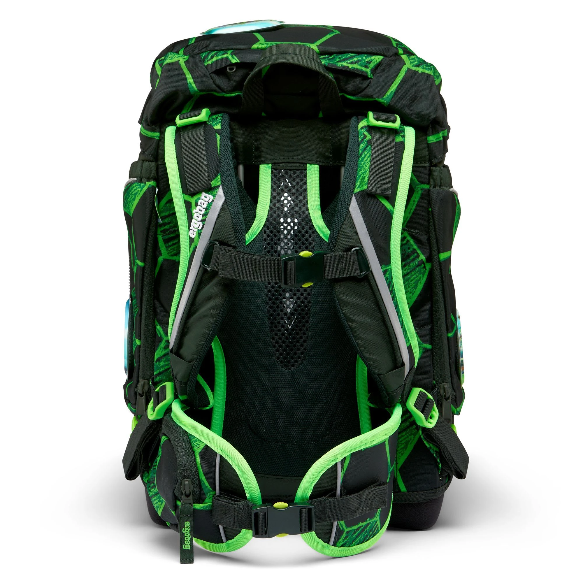 Der Ergobag Pack Schulranzen ab der 1. Klasse ergonomisch, individuell, nachhaltig und sichtbar. Der Pack von ergobag kombiniert die klassische Form traditioneller Schulranzen mit dem Tragesystem des beliebten ergobag-Schulrucksacks. Dank breiter Beckenflossen wird das Gewicht von den Schultern auf den stabilen Beckenbereich verlagert. Der Ranzen verfügt über ein höhenverstellbares Tragesystem und unterstützt die Bewegungsfreiheit der kleinen Träger, denn er sitzt durch Becken- und Brustgurt angenehm nah am Rücken, sogar beim Herumtoben. Die Kletties bieten, wie bei ergobag beliebt, individuell den Schulranzen zu gestalten. Ergobag benutzt für die Herstellung des Ranzens recycelte PET-Flaschen um die Umwelt zu schützen, für diesen Ranzen wurden mehrere Flaschen verarbeitet. Set bestehend aus: – Schulranzen – Sportrucksack – Schlampermäppchen – Federmäppchen (22 tlg.) – Kletties-Set (5 tlg.) – DIN A4-Heftebox. Schulranzen Größe: 28cm x 25cm x 40cm Gewicht: ca. 1.100 g Volumen: ca. 20 Liter