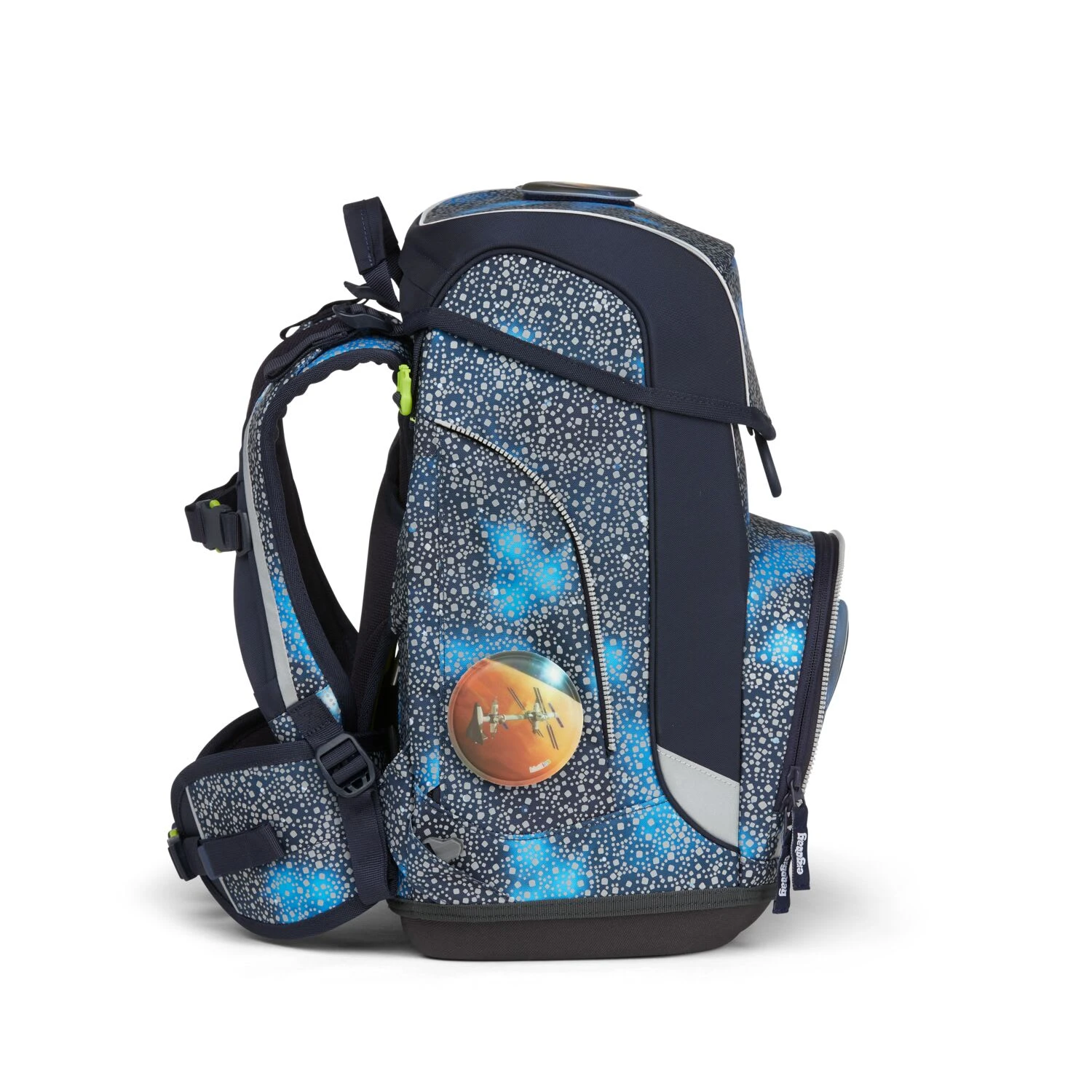 Für einen angenehmen Tragekomfort wurde ein atmungsaktives Rückenpolster verbaut, welches sich optimal an den Körperbau des Kindes anpasst. Durch das höhenverstellbare „Your-Size-System“, kann jedes Modell an die Größe Ihres Kindes angepasst werden (1 m – 1,50 m). Der Rucksack verfügt über integrierte Seitentaschen, an der rechten und linken Außenseite. Ebenfalls sind hier noch Reißverschlüsse für Zip-Sets angebracht. Ausgestattet ist der Pack mit einem extra Regencape-Fach und einer Tasche im Deckel des Ranzens.