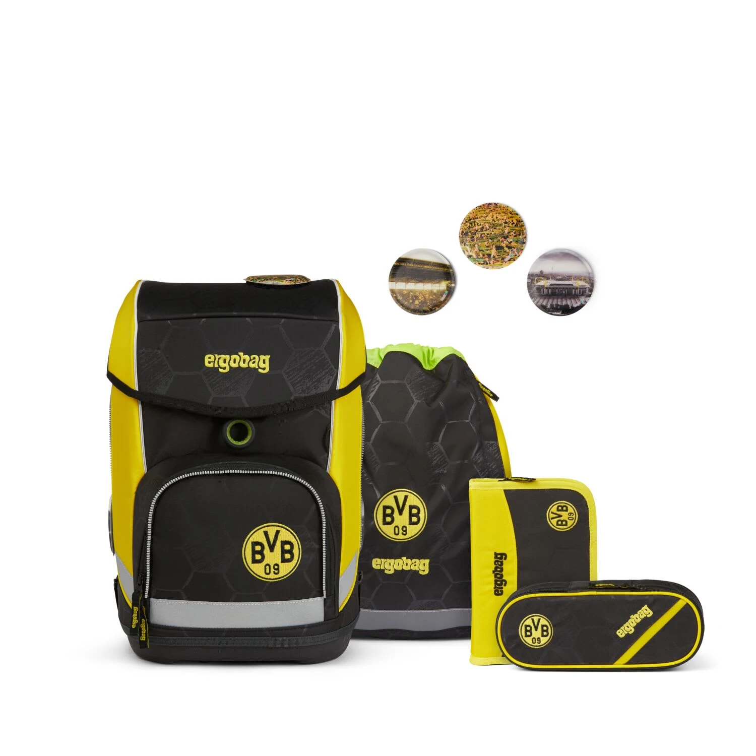 Der Schulranzen wird in einem 5-teiligen Set geliefert, welches aus folgenden Teilen besteht: Schulrucksack, Sportbeutel, Kletties-Set (5-tlg.), Federmäppchen (22-tlg.), Schlampermäppchen