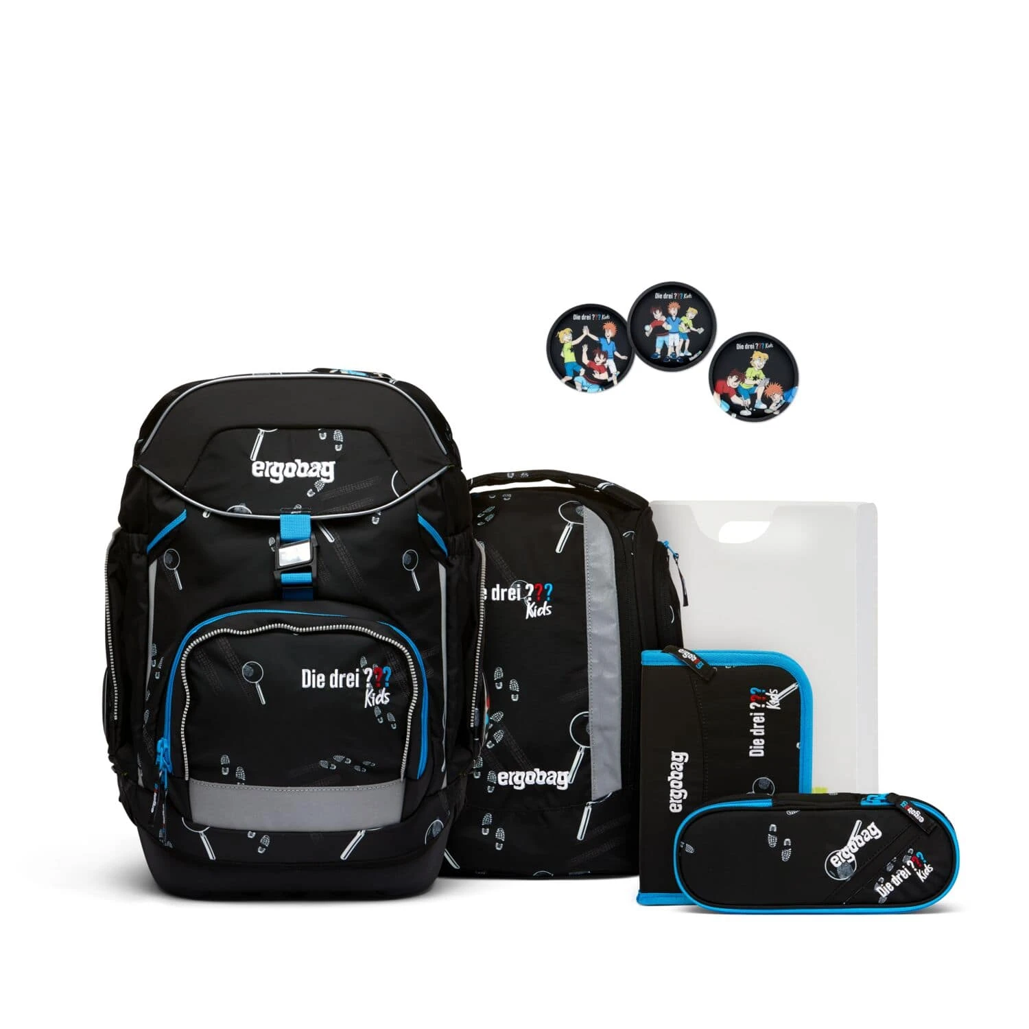 Der Schulranzen wird in einem 6-teiligen Set geliefert, welches aus folgenden Teilen besteht: Schulrucksack, Sportrucksack, DIN A4-Heftebox, Kletties-Set (5-tlg.), Federmäppchen (22-tlg.), Schlampermäppchen.
