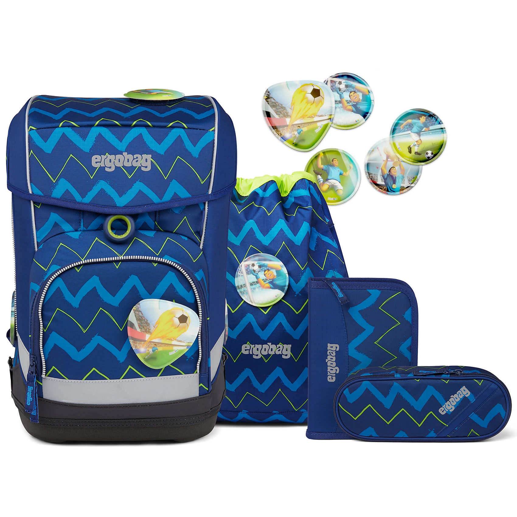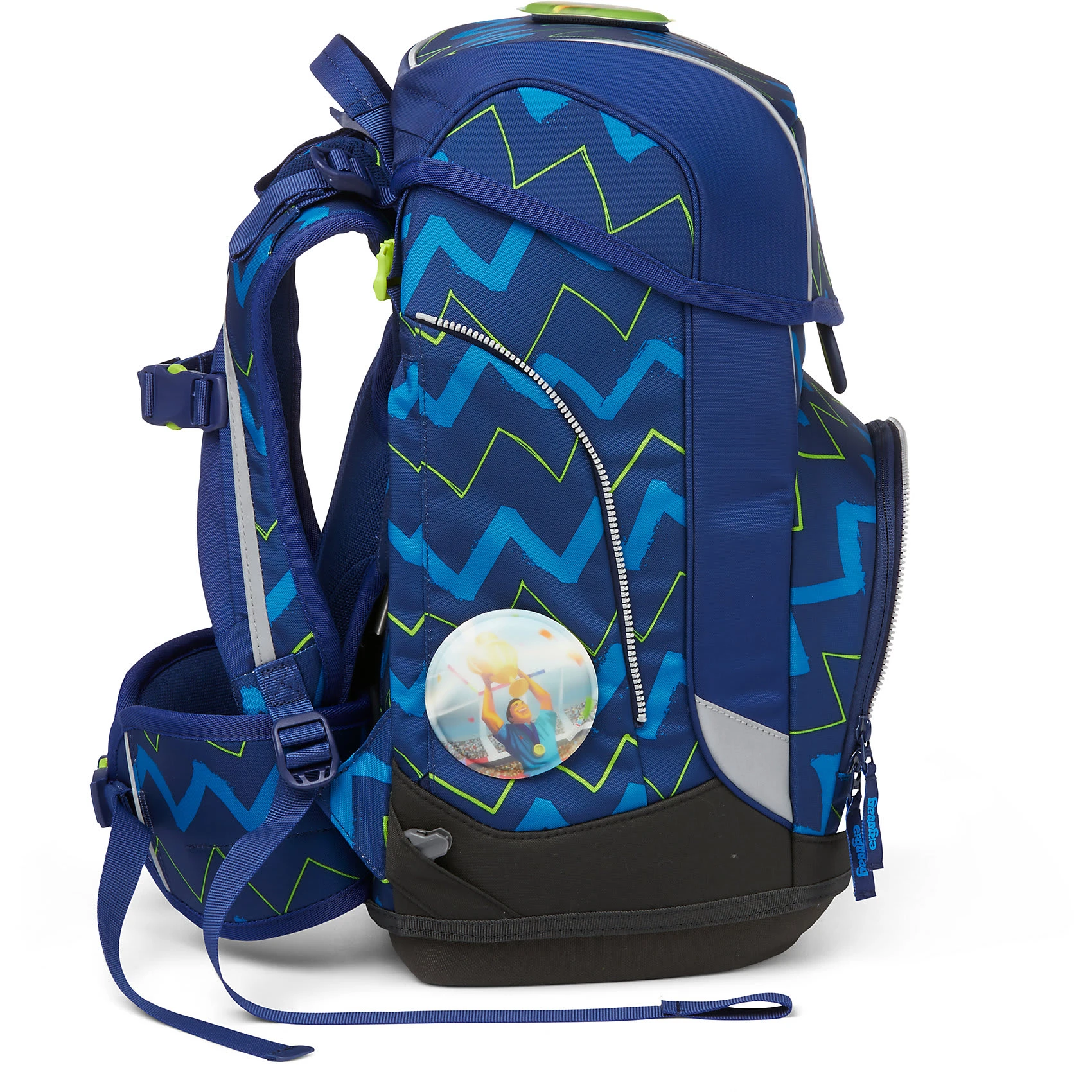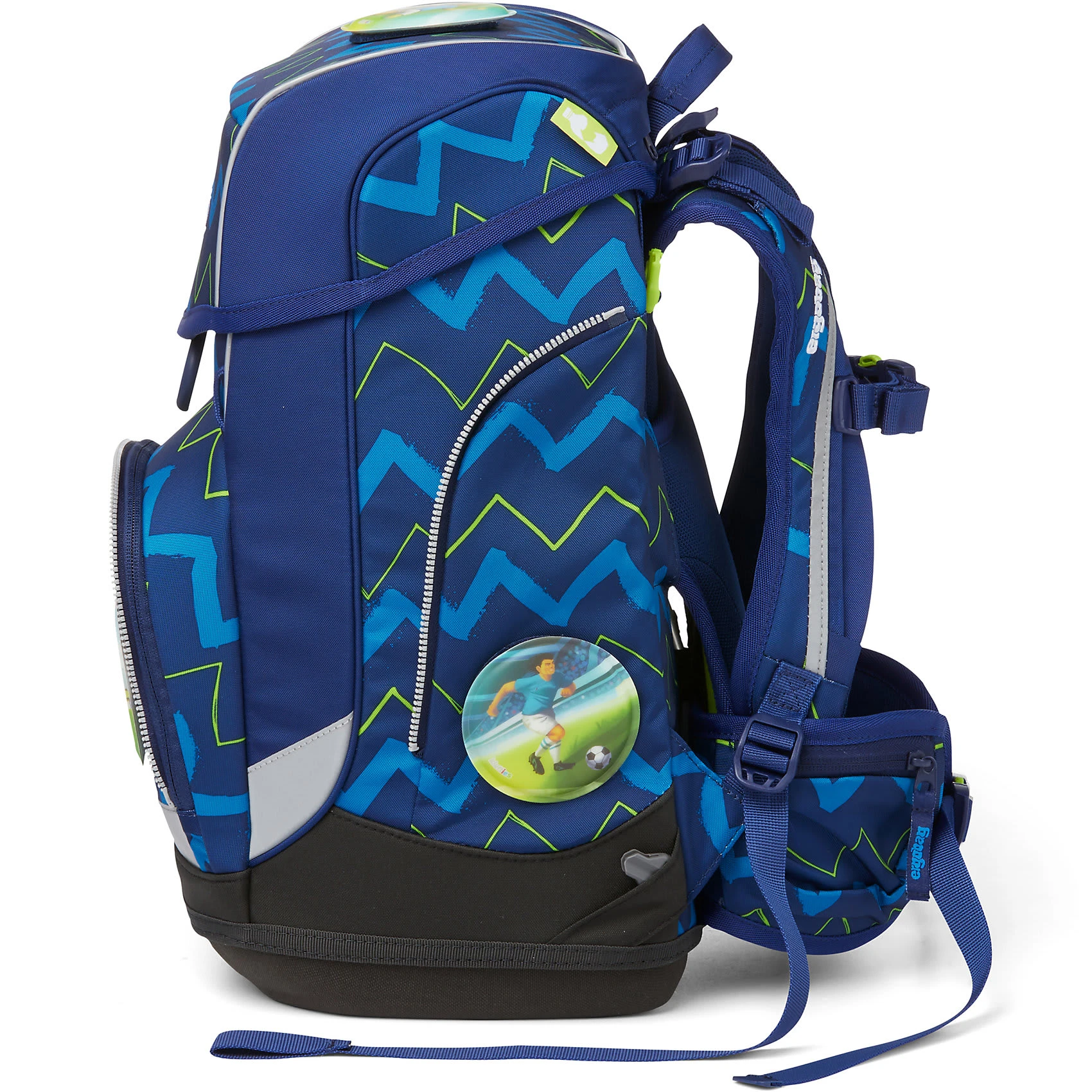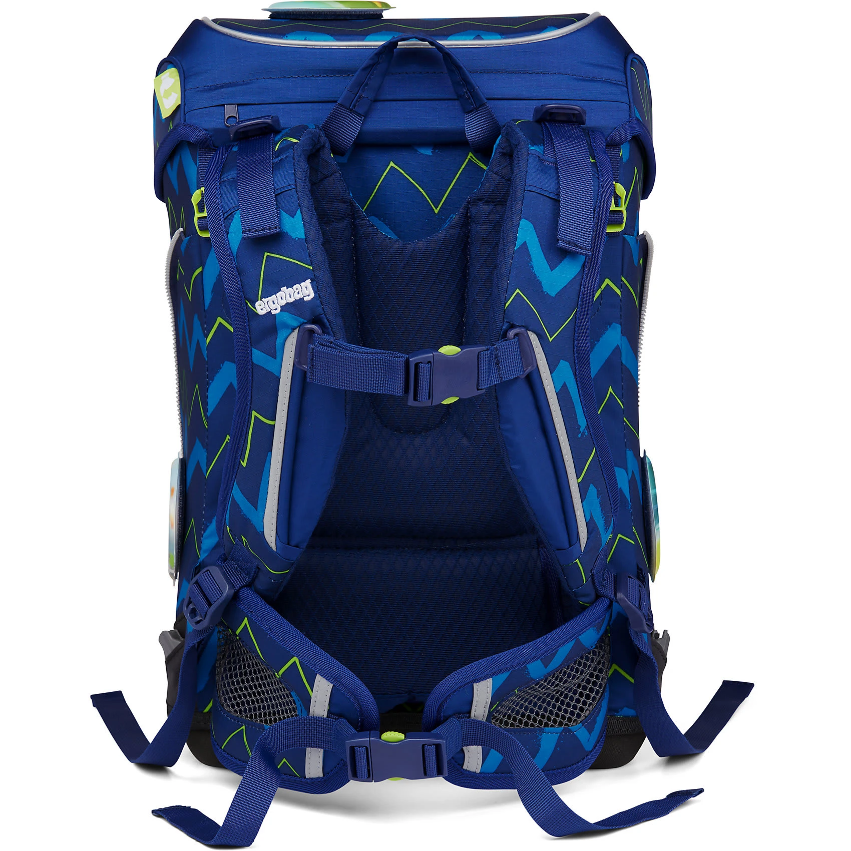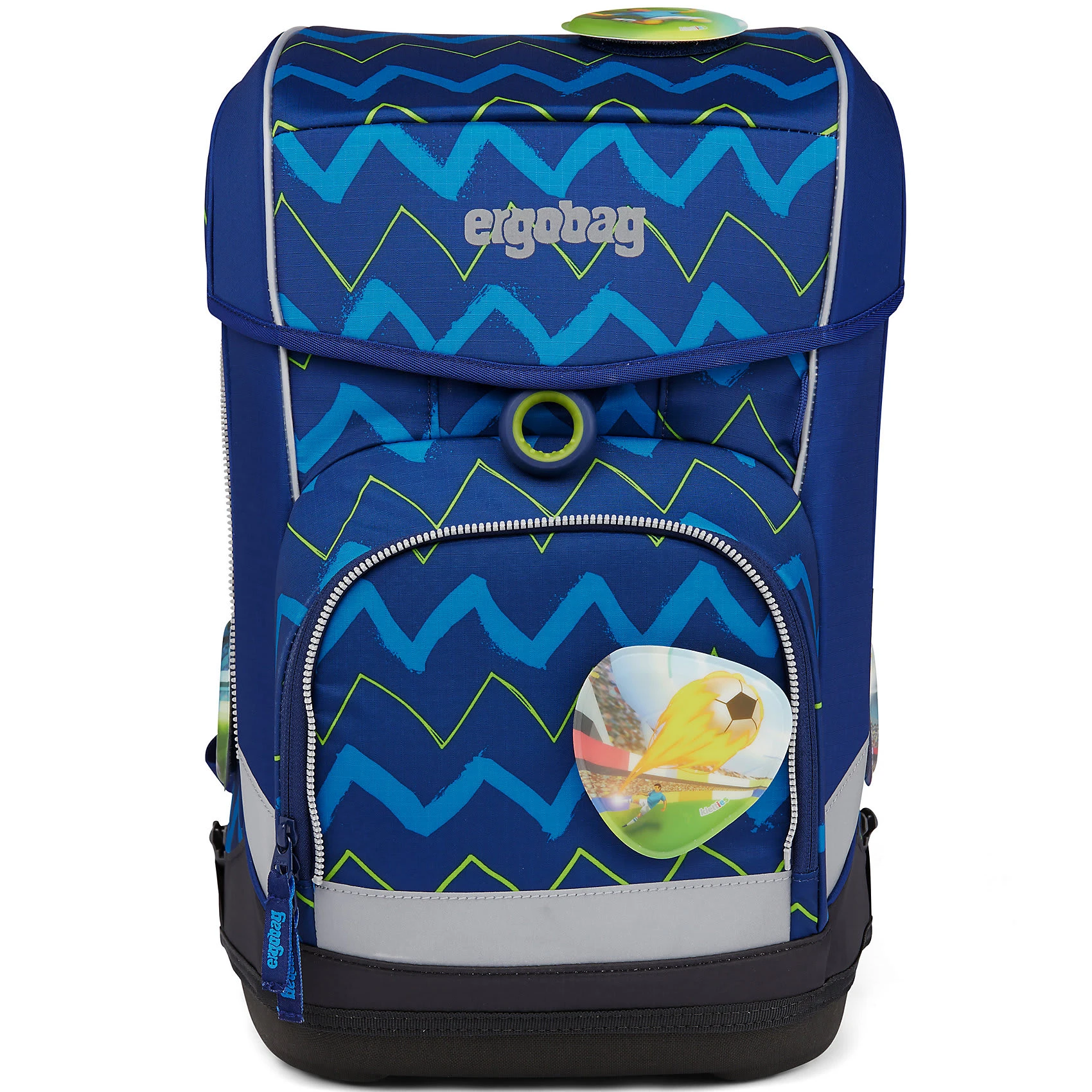 Der Ergobag Cubo Schulranzen ab der 1. Klasse ergonomisch, individuell, nachhaltig und sichtbar. Der cubo light von ergobag kombiniert die klassische Form traditioneller Schulranzen mit dem Tragesystem des beliebten ergobag-Schulrucksacks. Dank breiter Beckenflossen wird das Gewicht von den Schultern auf den stabilen Beckenbereich verlagert. Die Kletties bieten, wie bei ergobag beliebt, individuell den cubo zu gestalten. Ergobag benutzt für die Herstellung des Ranzens recycelte PET-Flaschen um die Umwelt zu schützen, für diesen Ranzen wurden 24 Flaschen (0,5l) verarbeitet. An den cubo Schulranzen können die passenden Sicherheitsset, für noch mehr Sicherheit im Straßenverkehr zusätzlich erworben werden. Er hat einen standfesten Boden. Bewegung und Haltung beeinflussen unser Körperbewusstsein und können die Persönlichkeitsentwicklung fördern. Studien zeigen, dass Kinder, die sich viel bewegen, unabhängiger, kontaktfreudiger und motivierter sind. Der Ranzen unterstützt die Bewegungsfreiheit der kleinen Träger, denn er sitzt durch Becken- und Brustgurt angenehm nah am Rücken, sogar beim Herumtoben. Set bestehend aus: – Schulranzen – Sportbeutel – Schlampermäppchen – Federmäppchen – Kletties 1. Schulranzen Größe: 25cmx20cmx40cm Gewicht: ca. 0.780 g Volumen: ca. 19 Liter Beckengurt mit Beckenflossen höhenverstellbarer Brustgurt atmungsaktives Rückenpolster (Rücken wächst mit) Mit ergobag Kletties lässt sich der Cubo individuell gestalten. Er hat seitliche Reißverschlussfächer, ein Fach im Deckel mit individuellen einstellbaren Innenaufteilung. 2. Der Sportbeutel kann durch Schnappverschlüsse am Schulranzen fest angebracht werden 3. Schlamperrolle 4. Federmäppchen gefüllt 22-tlg. 5. Kletties 5-tlg.