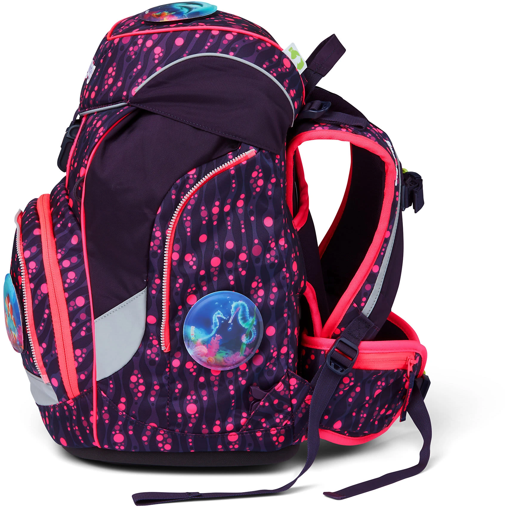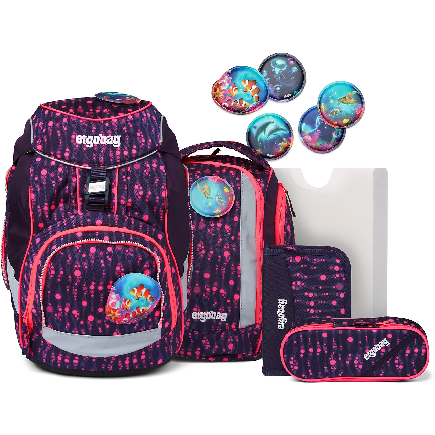 Der Ergobag Pack Schulranzen ab der 1. Klasse ergonomisch, individuell, nachhaltig und sichtbar. Der Pack von ergobag kombiniert die klassische Form traditioneller Schulranzen mit dem Tragesystem des beliebten ergobag-Schulrucksacks. Dank breiter Beckenflossen wird das Gewicht von den Schultern auf den stabilen Beckenbereich verlagert. Die Kletties bieten, wie bei ergobag beliebt, individuell den cubo zu gestalten. Ergobag benutzt für die Herstellung des Ranzens recycelte PET-Flaschen um die Umwelt zu schützen, für diesen Ranzen wurden mehrere Flaschen verarbeitet. An den cubo Schulranzen können die passenden Sicherheitsset, für noch mehr Sicherheit im Straßenverkehr. Er hat einen standfesten Boden. Bewegung und Haltung beeinflussen unser Körperbewusstsein und können die Persönlichkeitsentwicklung fördern. Studien zeigen, dass Kinder, die sich viel bewegen, unabhängiger, kontaktfreudiger und motivierter sind. Der Ranzen unterstützt die Bewegungsfreiheit der kleinen Träger, denn er sitzt durch Becken- und Brustgurt angenehm nah am Rücken, sogar beim Herumtoben. Set bestehend aus: – Schulranzen – Sportrucksack – Schlampermäppchen – Federmäppchen – Kletties 1 – Heftbox. Schulranzen Größe: 25cm x 20cm x 40cm Gewicht: ca. 1.100 g Volumen: ca. 20 Liter Beckengurt mit Beckenflossen höhenverstellbarer Brustgurt atmungsaktives Rückenpolster ( Rücken wächst mit) Mit ergobag Kletties lässt sich der Cubo individuell gestalten er hat seitliche Reißverschlussfächer ein Fach im Deckel individuell einstellbare Innenaufteilung Die ergobag Stoffe aus 100% recycelten PET Flaschen hergestellt. Diese Produktionsweise verringert die Umweltbelastungen enorm. Im Vergleich werden in der Herstellung die Abwassermenge um 20%, der Energieverbrauch um 50% und die Schadstoffemissionen um 60% gesenkt 2. Sportrucksack Er kann durch Schnappverschlüsse am Schulranzen fest fixiert oder separat getragen werden. 3. Schlamperrolle 4. Federmäppchen gefüllt 22-tlg. 5. Kletties
