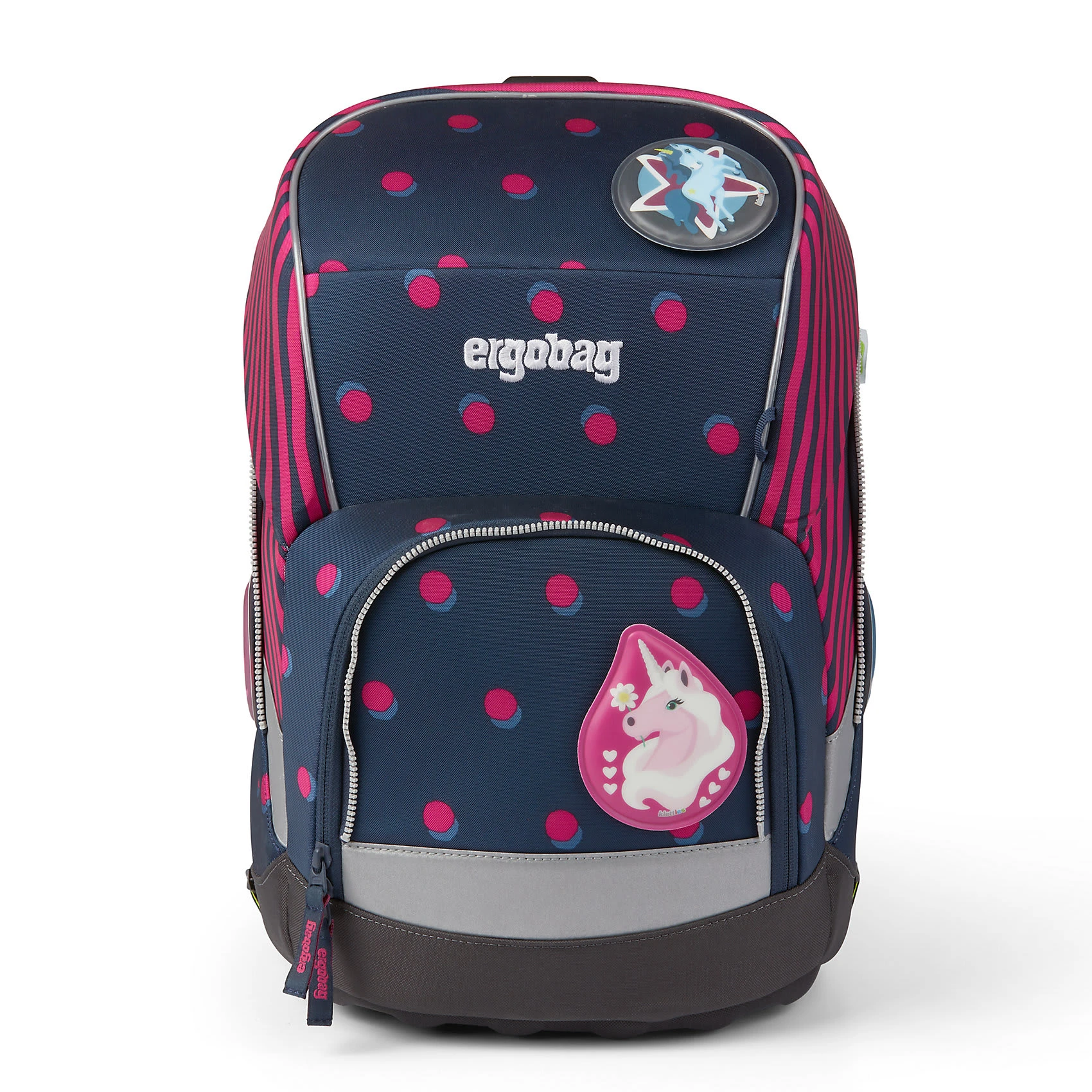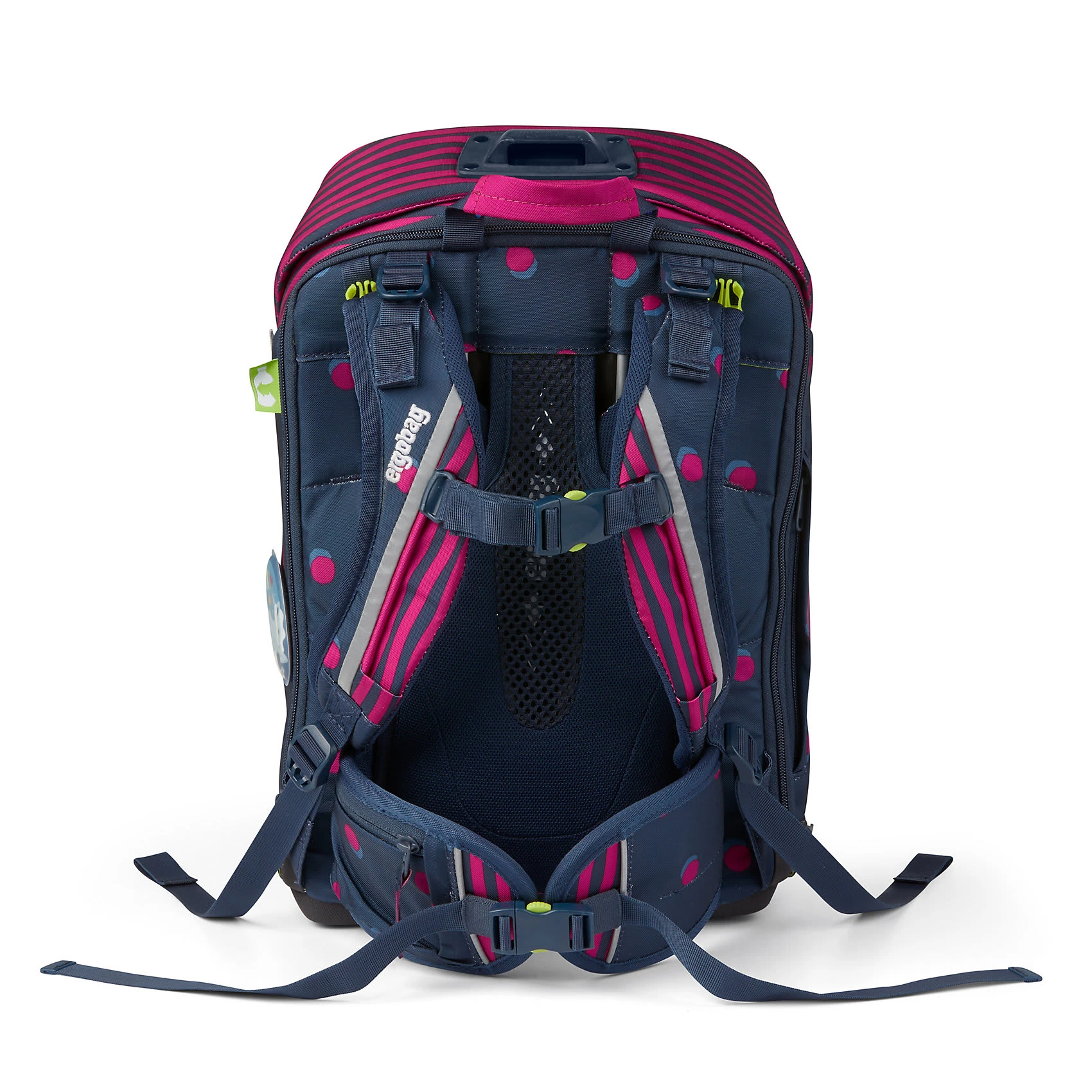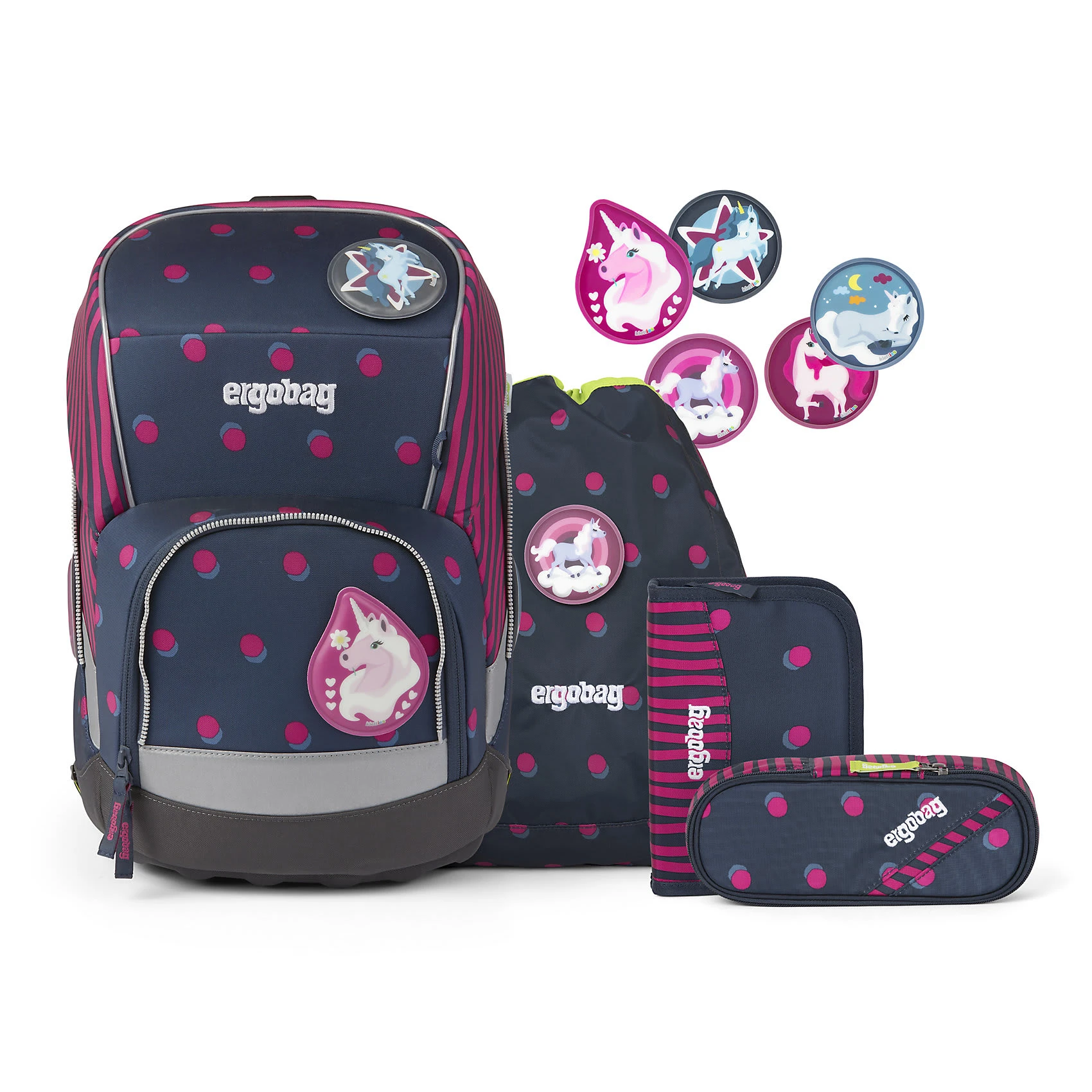 5-teiliges Schulranzen-Set von Ergobag der Wide Serie, bestehend aus Schulranzen, Sportbeutel, Schlampermäppche, 22-tlg. Federmäppchenn und 5-tlg. Klettie-Set. Ergobag benutzt für die Herstellung des Ranzens recycelte PET-Flaschen um die Umwelt zu schützen, für diesen Ranzen wurden mehrere Flaschen verarbeitet. Der Wide Schulranzen ist für Kinder in der Grundschule entwickelt und kombiniert die klassische Form traditioneller Schulranzen mit dem Tragesystem des beliebten ergobag-Schulrucksacks. Dank breiter Beckenflossen wird das Gewicht von den Schultern auf den stabilen Beckenbereich verlagert. Der Ranzen unterstützt die Bewegungsfreiheit der kleinen Träger, denn er sitzt durch Becken- und Brustgurt angenehm nah am Rücken, sogar beim Herumtoben. Der Schulranzen hat einen standfesten Boden, ist wasser- und schmutzabweisend und um bis zu 2,5 l erweiterbar. Somit ist er ein wahres Raumwunder. Die Kletties bieten zudem, wie bei ergobag beliebt, individuell den Rucksack zu gestalten. Schulranzen Größe: 27cm x 30cm x 42cm Gewicht: ca. 1.130 g Volumen: ca. 21 Liter, um 2,5 Liter erweiterbar