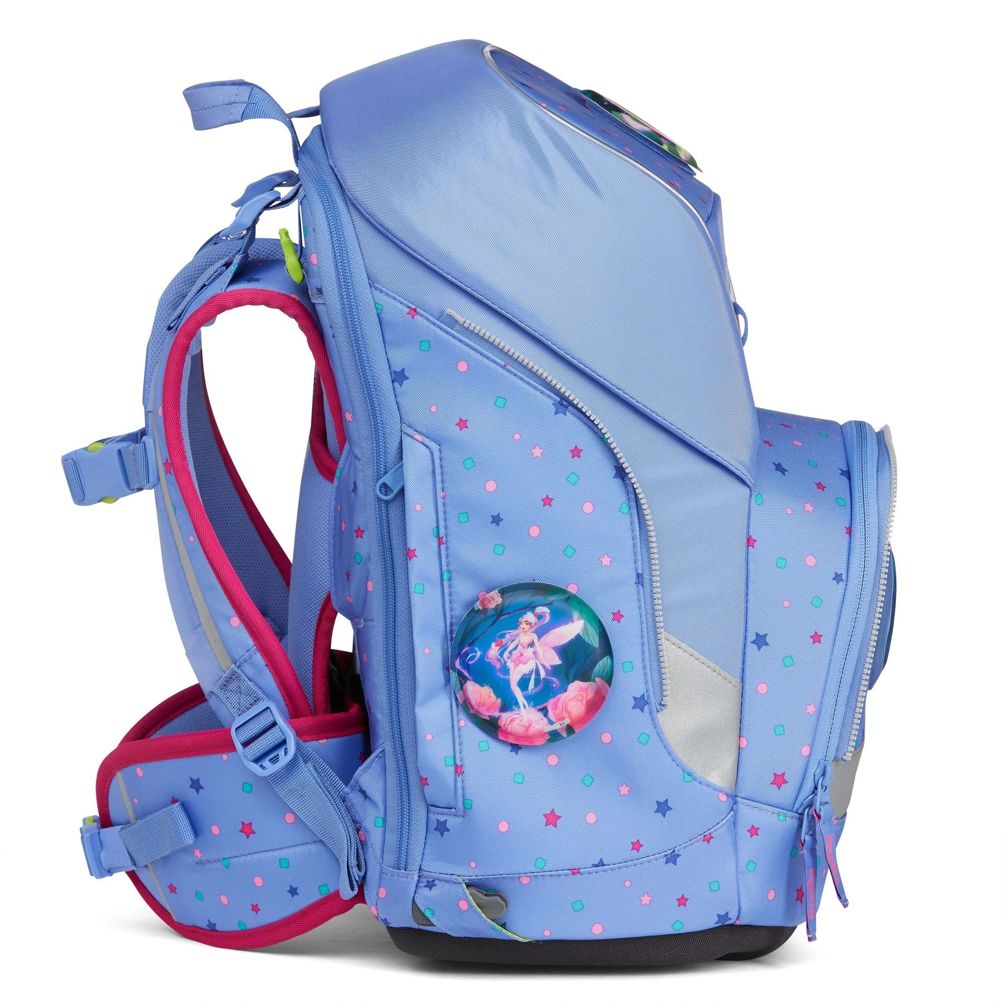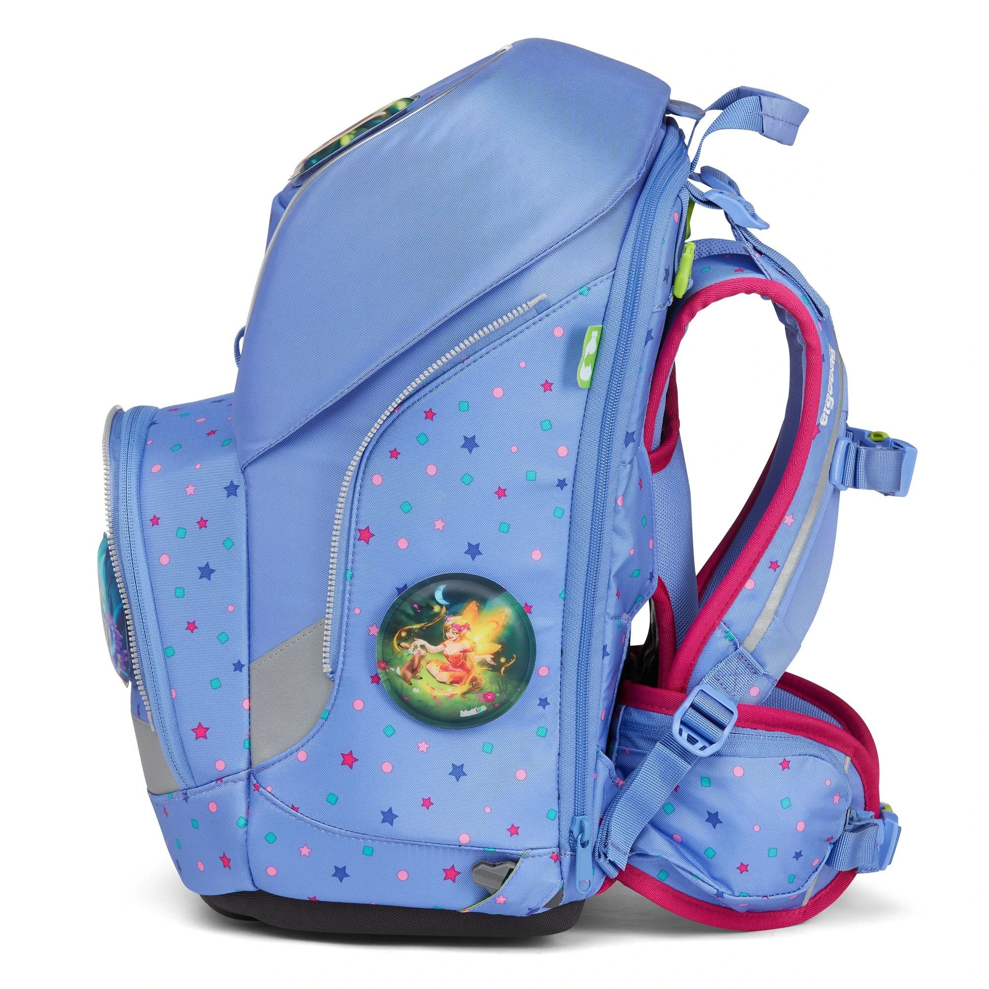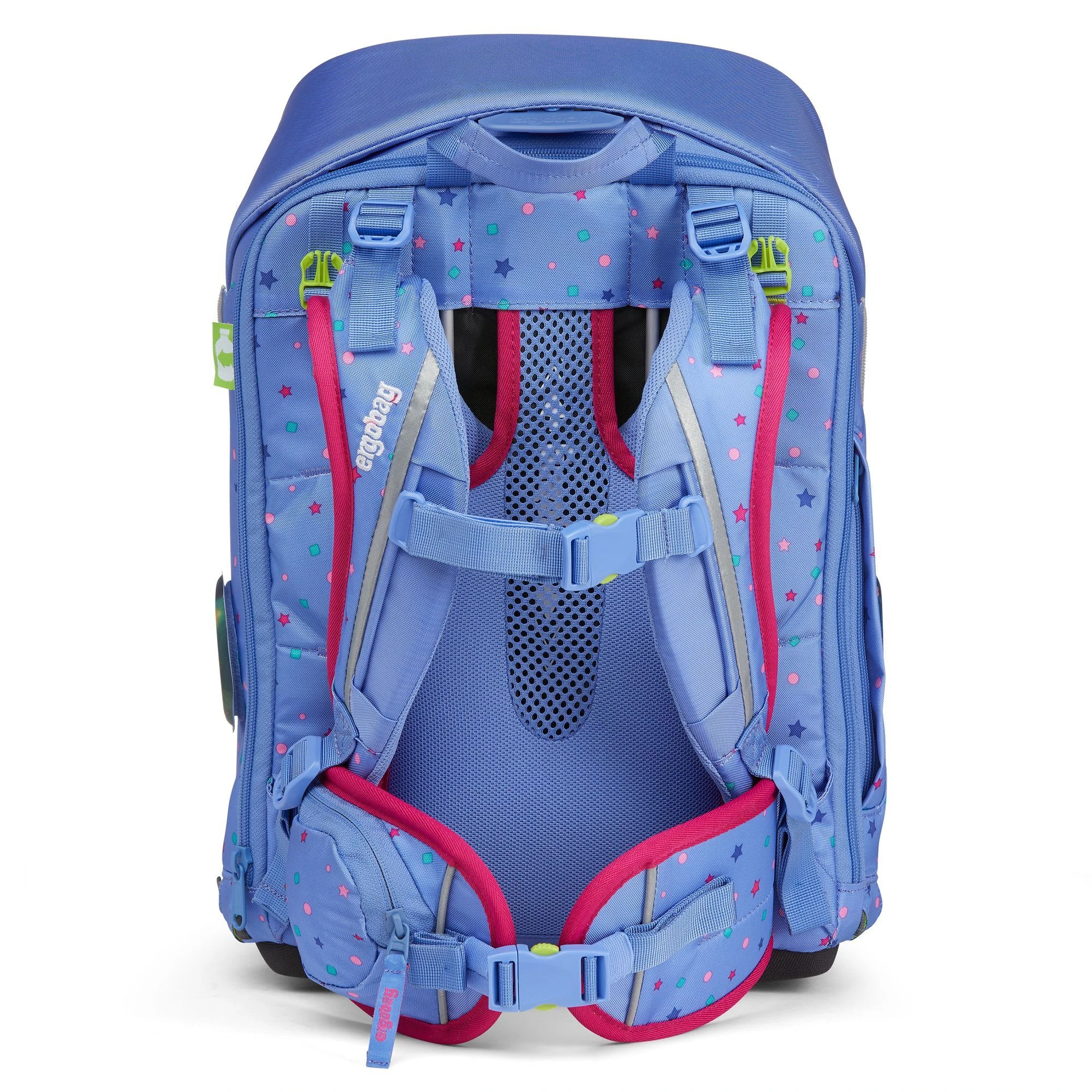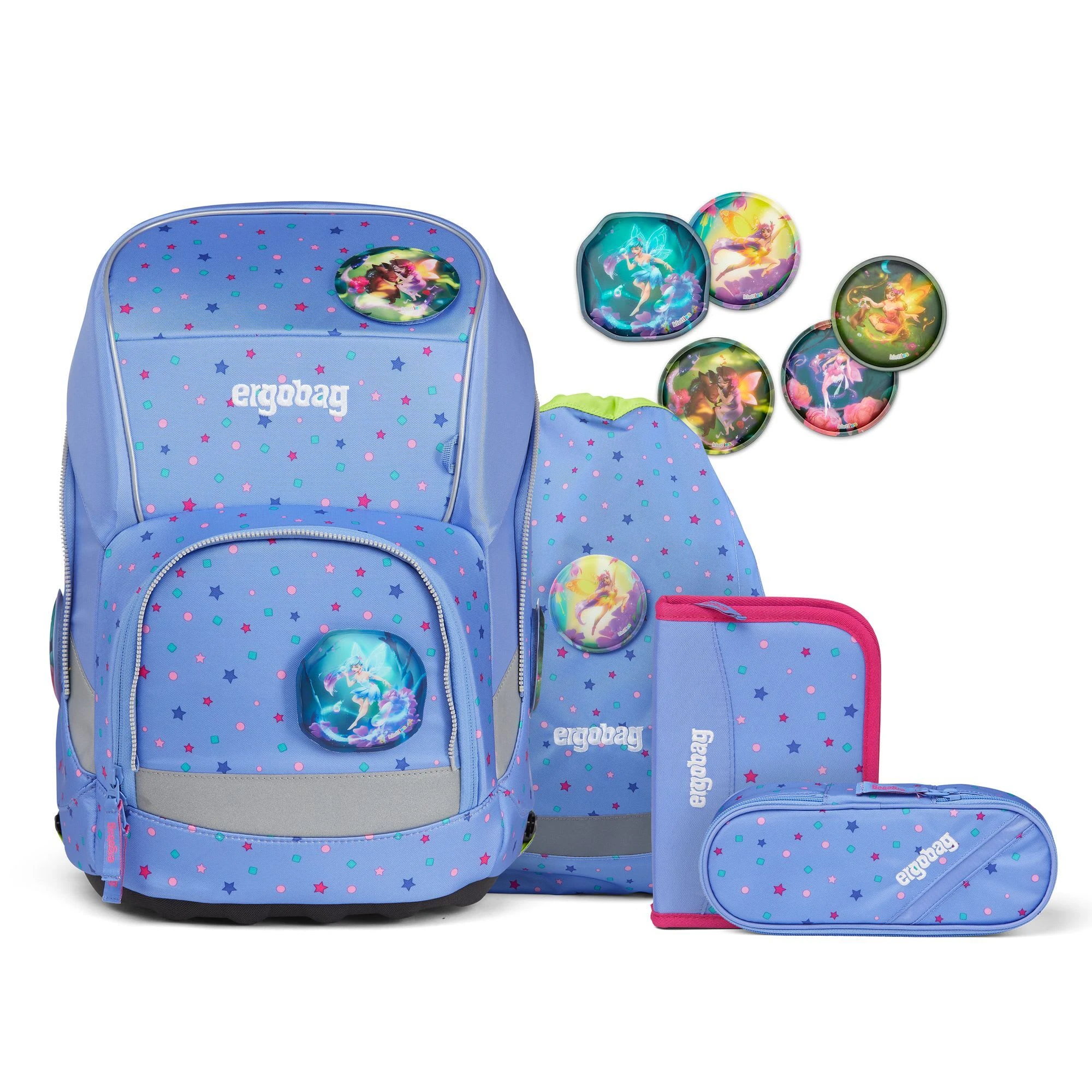 5-teiliges Schulranzen-Set von Ergobag der Wide Serie, bestehend aus Schulranzen, Sportbeutel, Schlampermäppche, 22-tlg. Federmäppchenn und 5-tlg. Klettie-Set. Ergobag benutzt für die Herstellung des Ranzens recycelte PET-Flaschen um die Umwelt zu schützen, für diesen Ranzen wurden mehrere Flaschen verarbeitet. Der Wide Schulranzen ist für Kinder in der Grundschule entwickelt und kombiniert die klassische Form traditioneller Schulranzen mit dem Tragesystem des beliebten ergobag-Schulrucksacks. Dank breiter Beckenflossen wird das Gewicht von den Schultern auf den stabilen Beckenbereich verlagert. Der Ranzen unterstützt die Bewegungsfreiheit der kleinen Träger, denn er sitzt durch Becken- und Brustgurt angenehm nah am Rücken, sogar beim Herumtoben. Der Schulranzen hat einen standfesten Boden, ist wasser- und schmutzabweisend und um bis zu 2,5 l erweiterbar. Somit ist er ein wahres Raumwunder. Die Kletties bieten zudem, wie bei ergobag beliebt, individuell den Rucksack zu gestalten. Schulranzen Größe: 27cm x 30cm x 42cm Gewicht: ca. 1.130 g Volumen: ca. 21 Liter, um 2,5 Liter erweiterbar