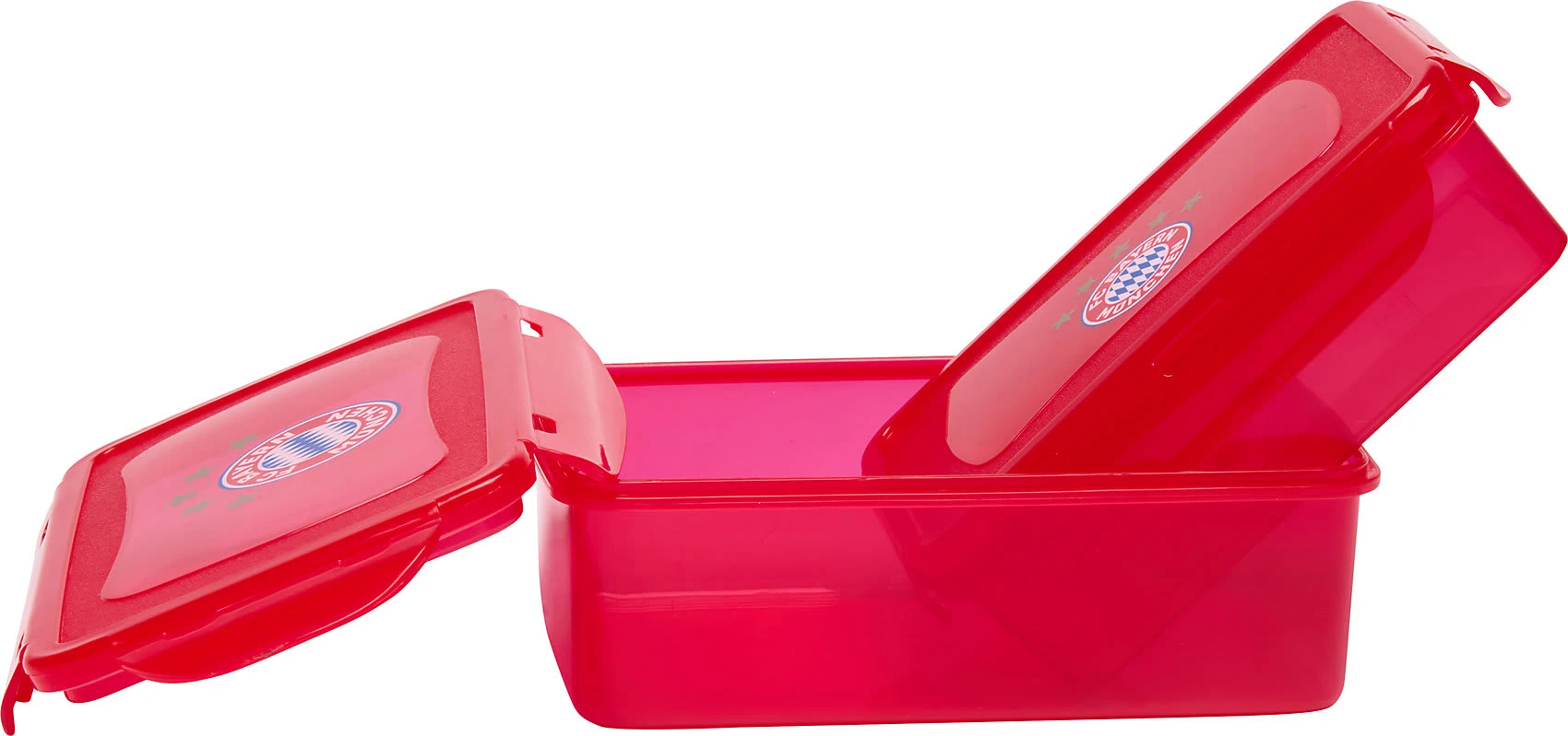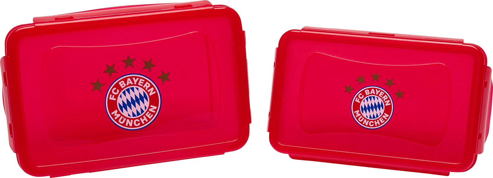 Das FC Bayern München Brotdosenset besteht aus zwei unterschiedlich großen Brotdosen mit praktischen Klickverschlüssen. Natürlich werden die Dosen von einem Bayernlogo geziert, sodass bereits in der Frühstückspause alle sehen können, dass du ein echter Bayern-Fan bist!