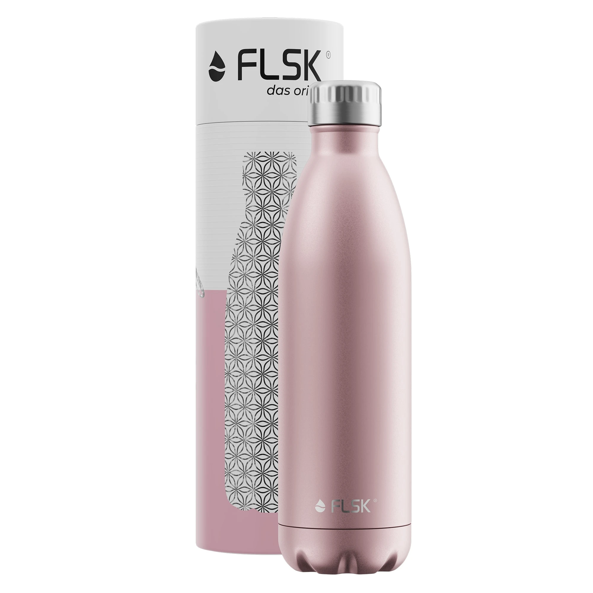 „Seit ich die FLSK habe, nehme ich sie einfach überall mit hin – außer mein Jüngster hat sie vor mir erwischt!“ Wenn Du die FLSK Roségold als neues Familienmitglied aufnimmst, könnte es Dir bald genauso gehen. Denn diese Trinkflasche begeistert jeden durch ihre zuverlässige Funktionalität – vereint mit einer klaren Designsprache. Das edle Roségold mit kostbarem Schimmer gefällt dabei nicht nur den weiblichen Wesen des Haushaltes. Was außen hui ist, ist innen nicht pfui: Das Material der FLSK ist garantiert frei von Weichmachern. In der kleineren 500 ml Variante versorgt die praktische Isolierflasche Dein Kind in Schule oder Kindergarten 24 Stunden lang mit kalten und 18 Stunden lang mit heißen Getränken. Die schmale Öffnung mit einem sauber abschließenden Deckel garantiert dabei Auslaufsicherheit. Und fällt die Flasche herunter, zuckt sie nicht mit der Wimper. Keine Trinkflasche wie jede andere.
