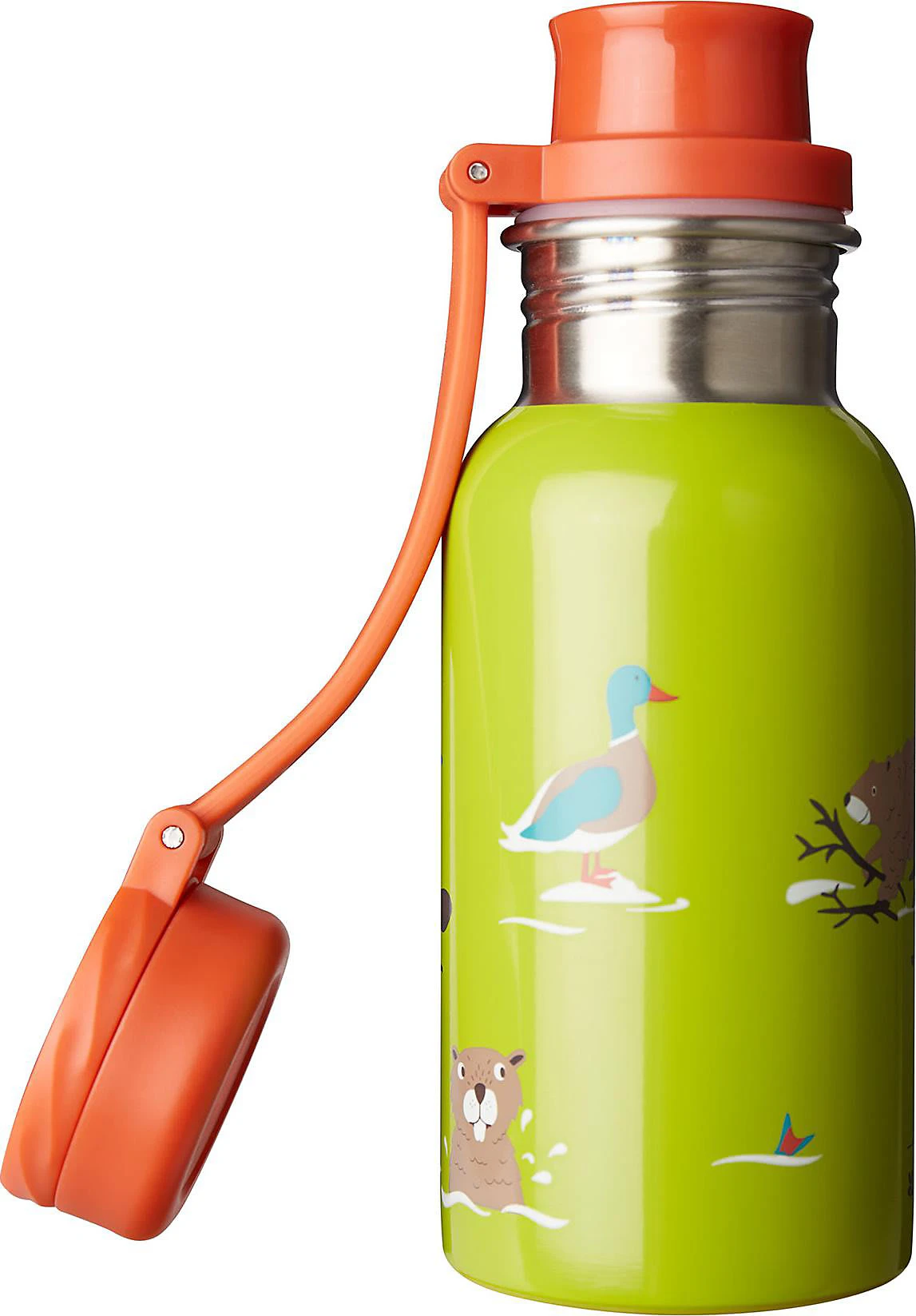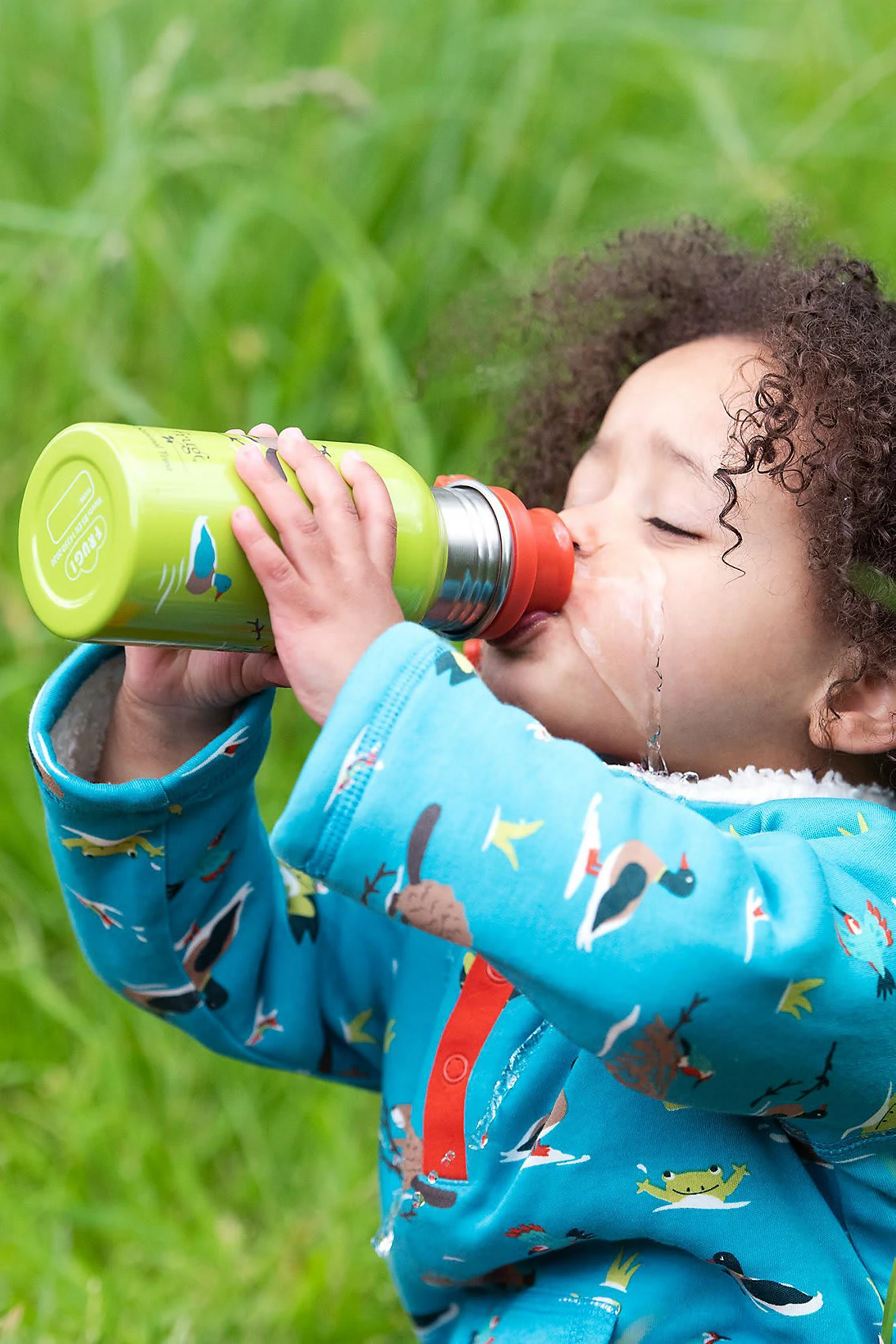 Die Edelstahlflasche Splish Splash von frugi besticht mit farbenfroher, hübscher Gestaltung und ist im Alltag überall dabei. Dank der Trinkhilfe können auch kleine Kinder die Flasche selbstständig nutzen. Durch den großen Schraubverschluss lässt sich die Flasche leicht befüllen sowie reinigen und auch Eiswürfel passen hinein!