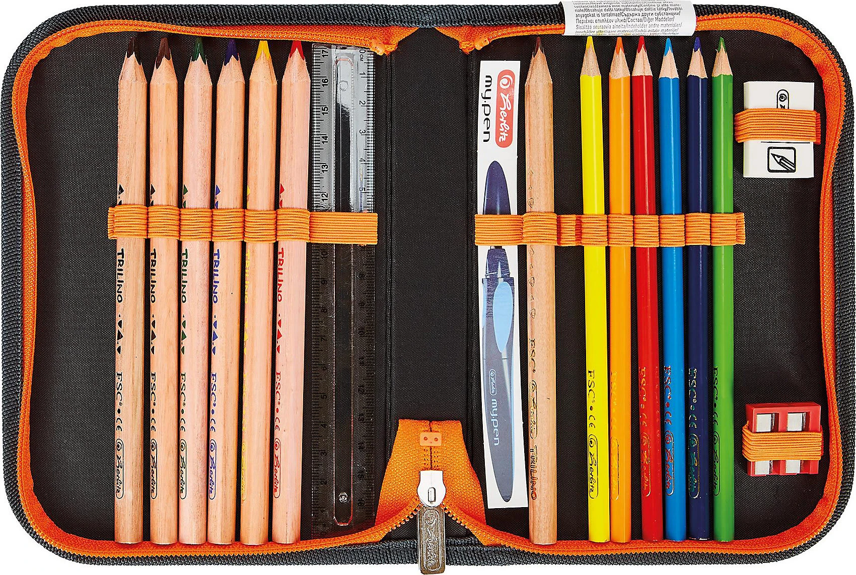 Das Rund-um-sorglos-Paket für den Start in die Schule. Hier erhalten Kids auf einen Schlag alles, was sie für ihren aller ersten Schultag benötigen. Das sechsteilige Set begeistert mit den wichtigsten Utensilien. Farblich auf einander abgestimmt kommen hier Turnbeutel, Etui, und Schlampermäppchen daher. Dabei ist das Etui bereits mit Zubehör befüllt. Natürlich darf auch der Ranzen auf keinen Fall fehlen. Das Modell “FILOLIGHT PLUS” verfügt über ein ergonomisches, IGR-zertifiziertes Rückensystem, eine stabile Bodenschale, höhenverstellbare Schultergurte und einen Brustgurt, sodass ein komfortables Tragegefühl stets geboten wird. Im Innern ist das geräumige Hauptfach in zwei Bereiche unterteilt und eine Fronttasche bietet Platz für Brotdose und Co. Über eine Magnetfunktion wird der Inhalt transportsicher verschlossen. Jedes Set beinhaltet außerdem zwei Klett-Patches, die ganz nach Belieben am Tornister angebracht werden können. Die “FILOLIGHT PLUS” Reihe ist in verschiedenen Farb- und Mustervarianten erhältlich und bietet so das passende Schul-Starterset für alle kleinen ABC-Schütz*innen.