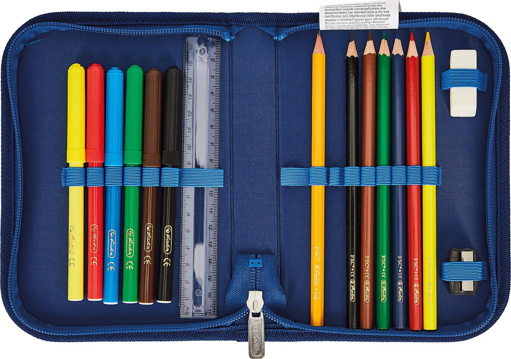 – 16-teilig befüllte Federtasche mit Reißverschluss