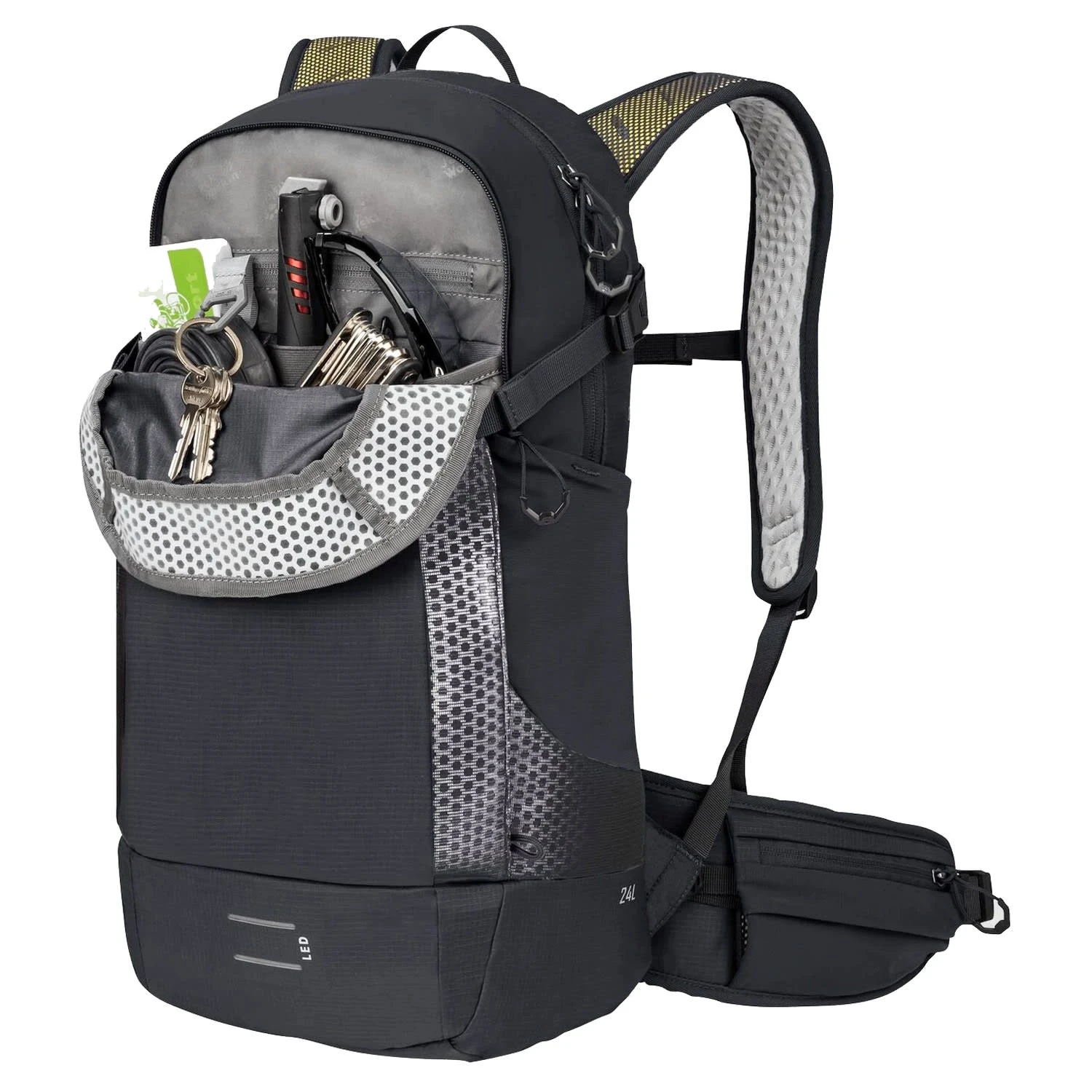 Der Bikerucksack von Jack Wolfskin ist ein perfekter Begleiter. Der Rucksack wurde aus wiederverwerteten Materialien hergestellt und mit einem super belüfteten und anschmiegsamen Tragesystem, vielen Fahrradfeatures sowie stark reflektierenden Elementen ausgestattet.