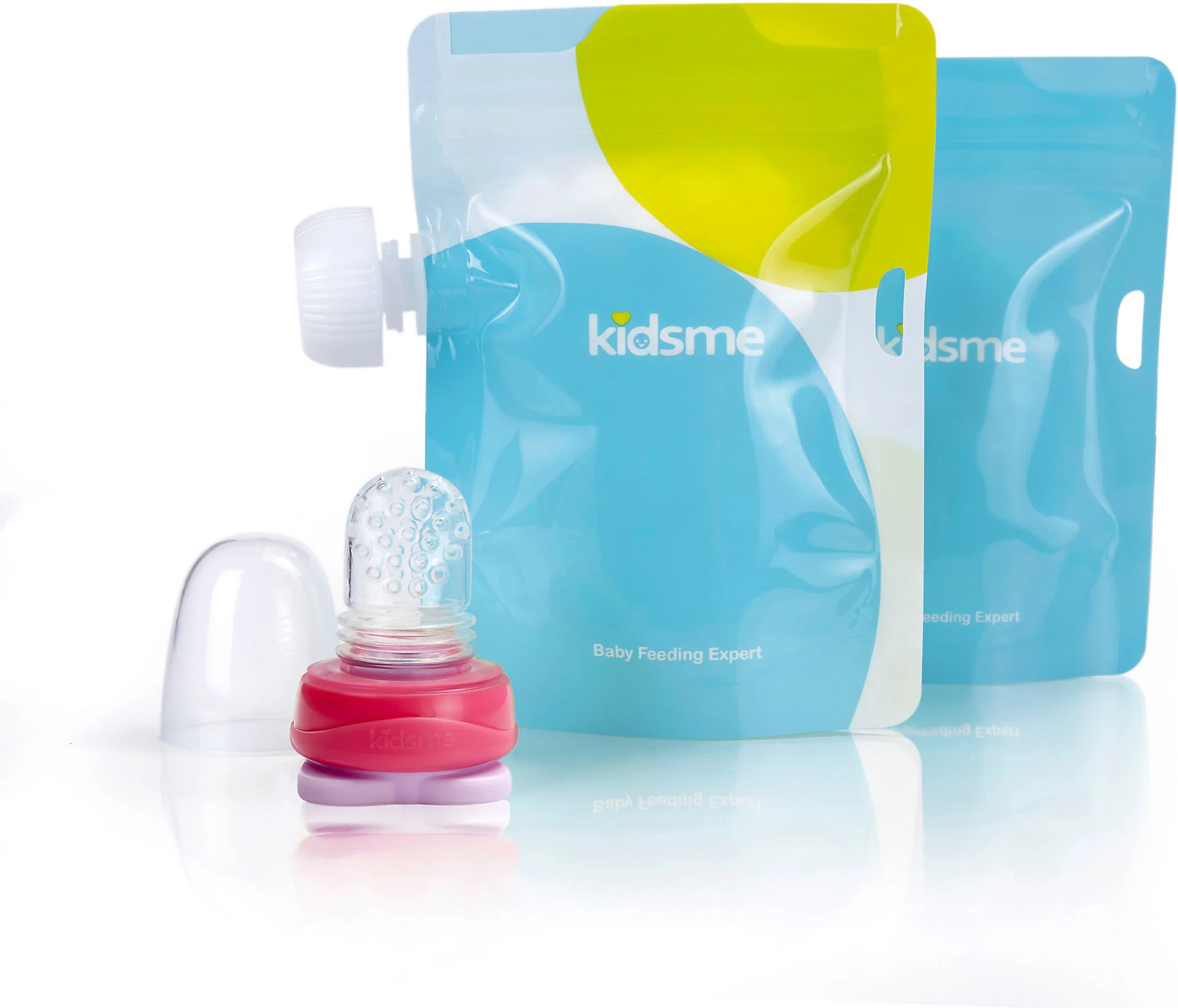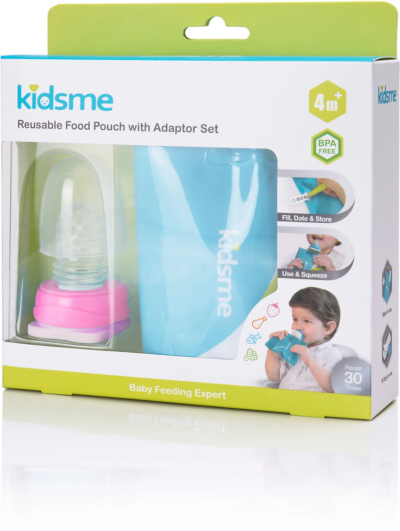 Mit den wiederbefüllbaren Quetschbeuteln lassen sich Geld und Abfall sparen und Quetschies selbst zubereiten! Mit dem kidsme Quetschbeutel im Zweier-Set inklusive einem Silikonsaugeraufsatz geht das ganz einfach. Wenn es mal schnell gehen soll, passt der Sauger auch auf die handelsüblichen Quetschies aus dem Supermarkt.