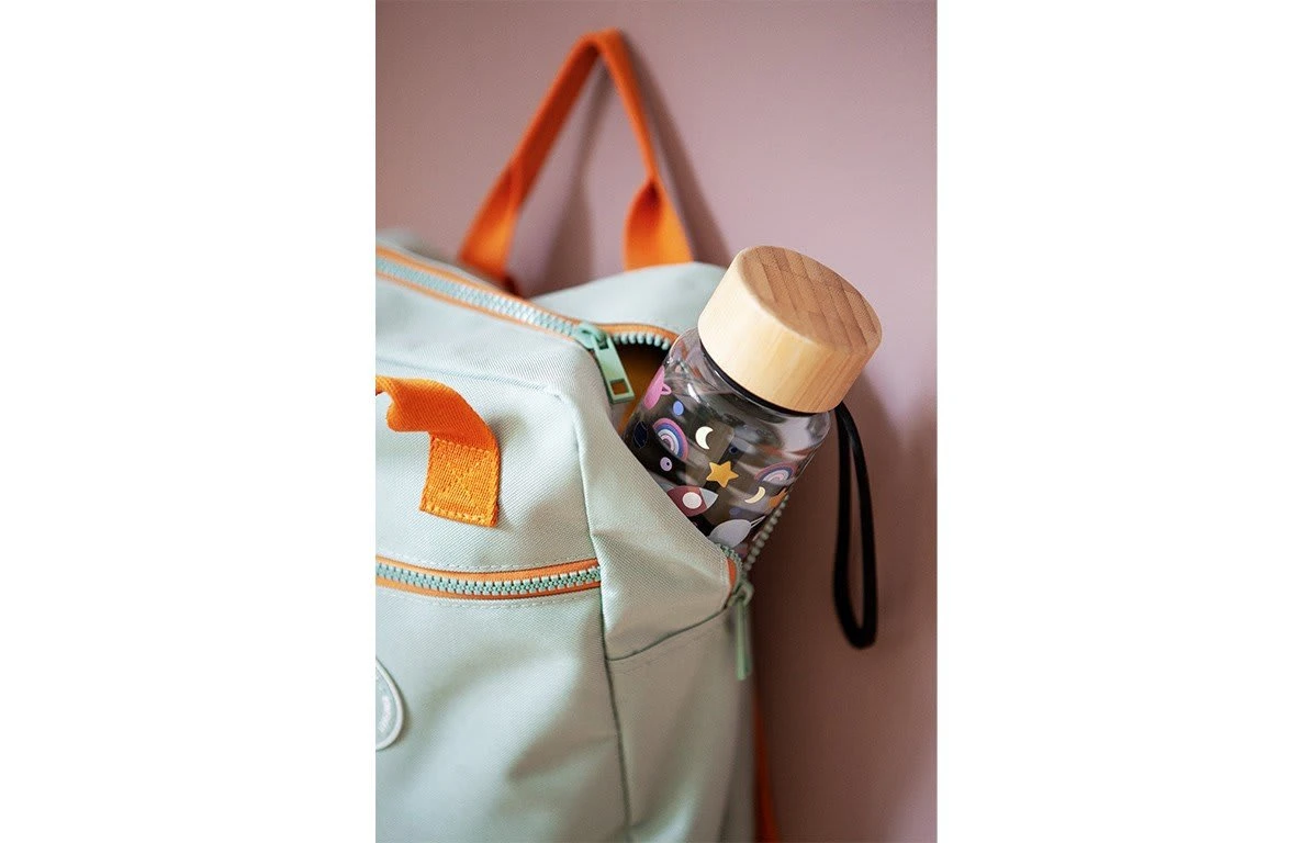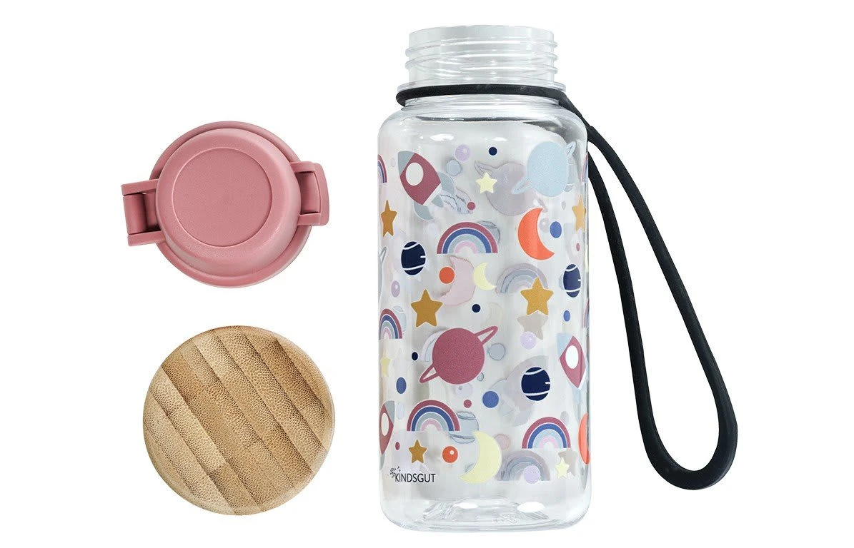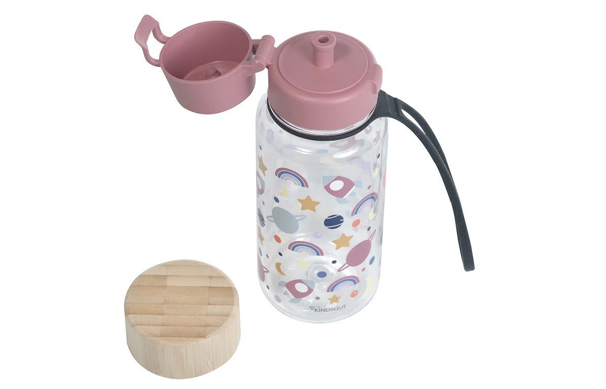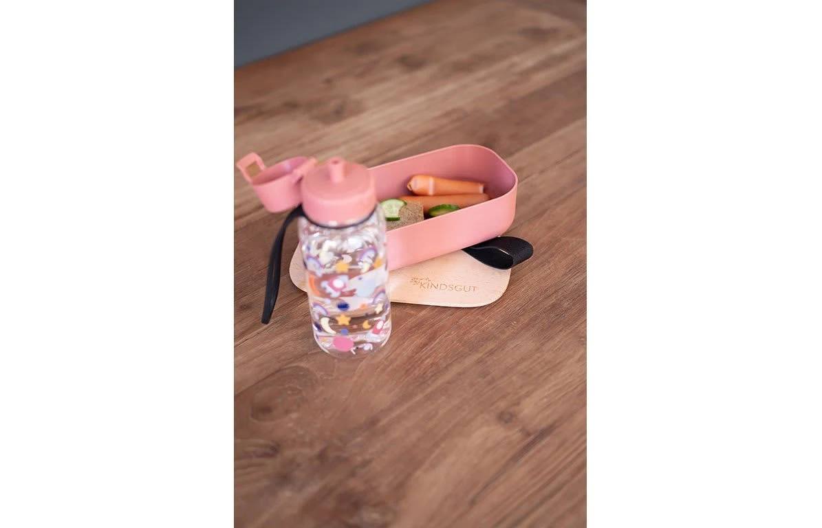 Die Kindsgut Trinkflasche mit niedlichem Design ist ein verlässlicher Begleiter für den Familienalltag. Hier treffen Funktionalität, Design und langlebige Qualität aufeinander und machen die Kinder-Trinkflasche zum Must-Have für unterwegs. Die auslaufsichere und bruchfeste Tritan-Trinkflasche eignet sich perfekt für die Aufbewahrung von Wasser, Saft oder Limonade – auch Kohlensäure ist kein Problem. Dank ihres leichten Gewichts und dem aufgedruckten Print fühlt sich die Flasche in Kinderhänden toll an und zaubert den Kleinen bei jedem Schluck ein Lächeln ins Gesicht. Der Bambus-Deckel der Trinkflasche wird durch einen Schraubmechanismus abgeschraubt. Außerdem verfügt die Trinkflasche über einen zweiten Deckel mit kindgerechtem Mundstück. Dank praktischer Silikonlasche kann die Trinkflasche einfach am Handgelenk, an Taschen, am Kinderwagen o.Ä. befestigt werden. Zum Befüllen der hochwertigen Kinder-Trinkflasche kann der Deckel einfach abgeschraubt werden, auch die Reinigung ist so spielend leicht möglich. Mit dem niedlichen Design ist die Trinkflasche ein echter Hingucker und eignet sich perfekt für Jungen und Mädchen. Die Trinkflasche passt auch perfekt zu weiteren Kindsgut Produkten, wie zum Beispiel dem Kinderrucksack oder den Brotdosen.
