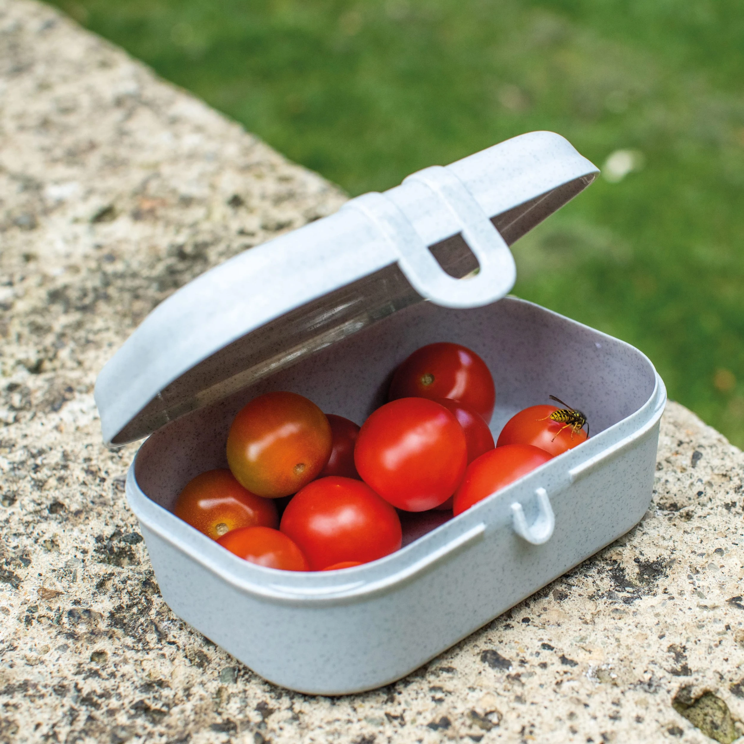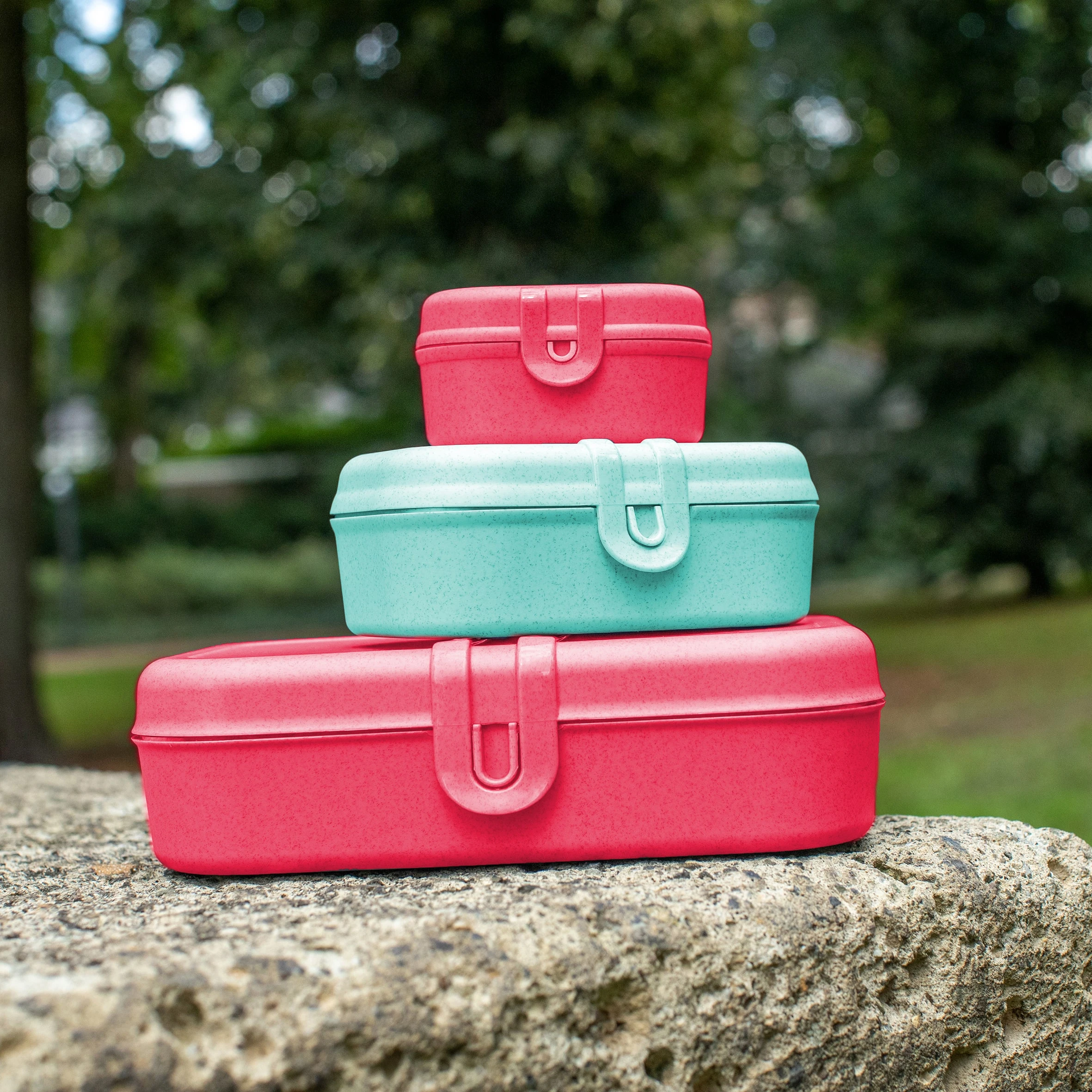 Lunchbox PASCAL S ist eine kompakte Frühstücksdose, die sich hervorragend zum Transport von Brot oder Obst eignet. Sie ist ein praktischer Begleiter für Schule, Büro oder den Wanderausflug. Per Klickverschluss wird die Box sicher verschlossen. Zwei Lunchboxen der Größe S passen perfekt nebeneinander in die große PASCAL L. So kann man verschiedene Lebensmittel voneinander trennen und hat sie trotzdem praktisch in einer Dose verpackt. •kompakte Lunchbox •passt in PASCAL L •mit Clipverschluss •der praktische Begleiter für Büro, Schule und Ausflüge•ideal auch für Obst•ideale Kombination mit Trinkflasche OASE•100% CO2-neutral KOZIOL ORGANIC