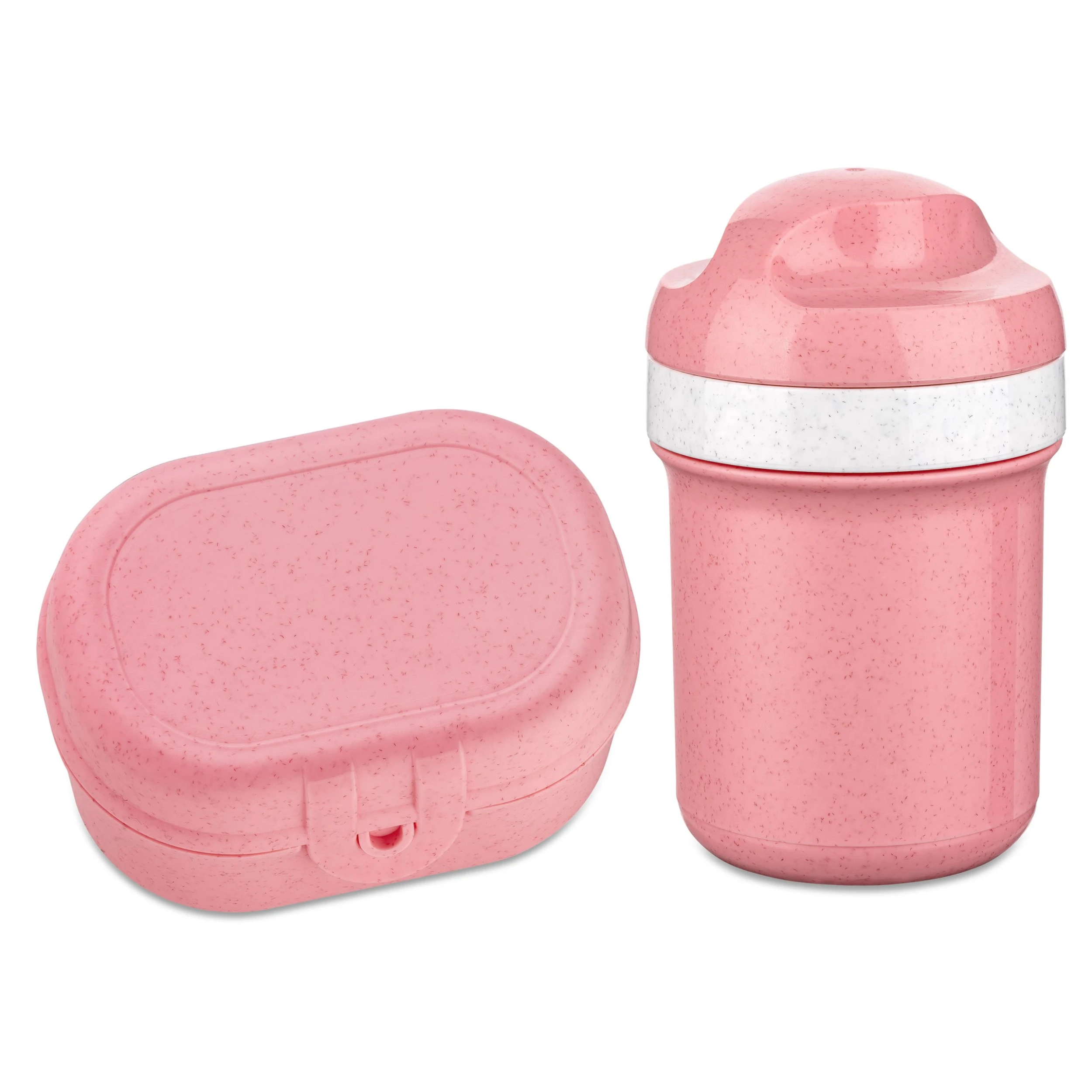 Lunchbox PASCAL MINI bewahrt Obst, Gemüsesticks, Nüsse und Kekse frisch und appetitlich auf und ist einfach ideal für den kleinen Snack unterwegs. Das Material ist robust und langlebig und der praktische Clipverschluss schließt sicher und zuverlässig. Die kleine Trinkflasche OASE MINI ist wunderbar handlich, sehr robust und angenehm leicht. Besonders praktisch ist die große Öffnung zum Befüllen. Die kleine Flasche kann komplett zerlegt und hygienisch in der Spülmaschine gereinigt werden. 2er-Set •kompakte Lunchbox
