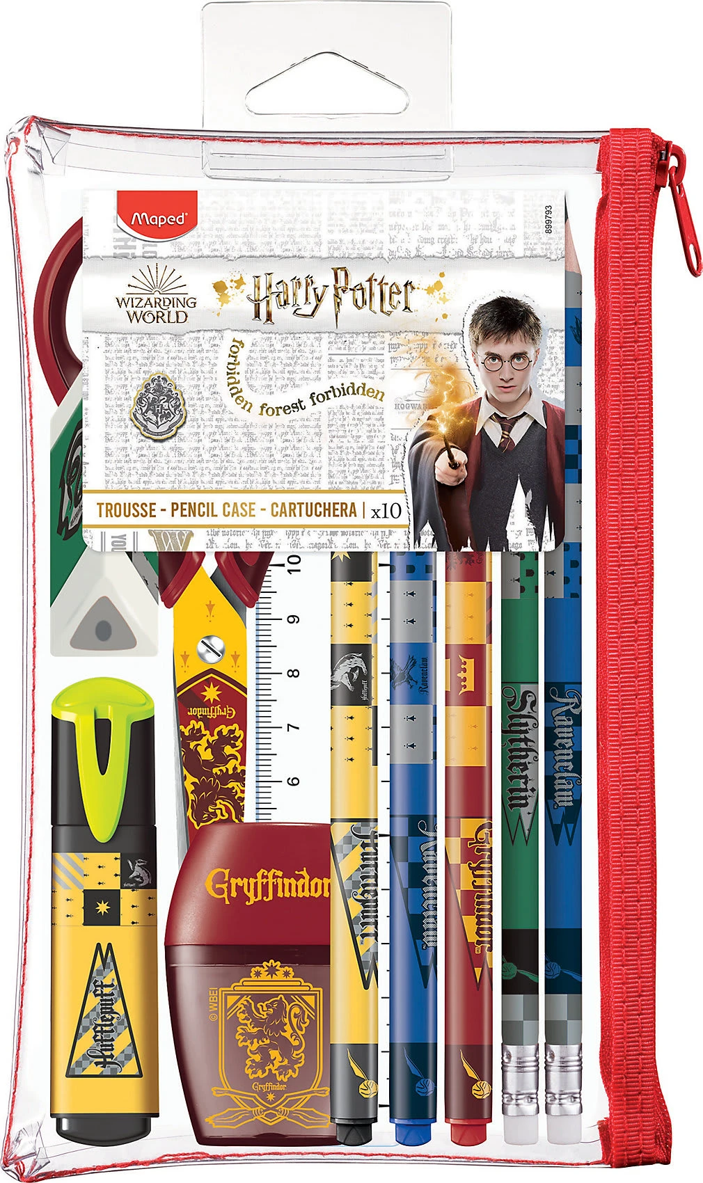 Das tolle Schlampermäppchen “Harry Potter” von Maped eignet sich klasse für alle Fans von Harry Potter, Hermine und Co. Das transparente Mäppchen kommt mit einer Schere, einem Radierer, einem Anspitzer, zwei Bleistiften, einem Textmarker, drei Finelinern und einem Lineal. Alle Bestandteile begeistern mit tollen “Harry Potter”-Designs und passen klasse zueinander.