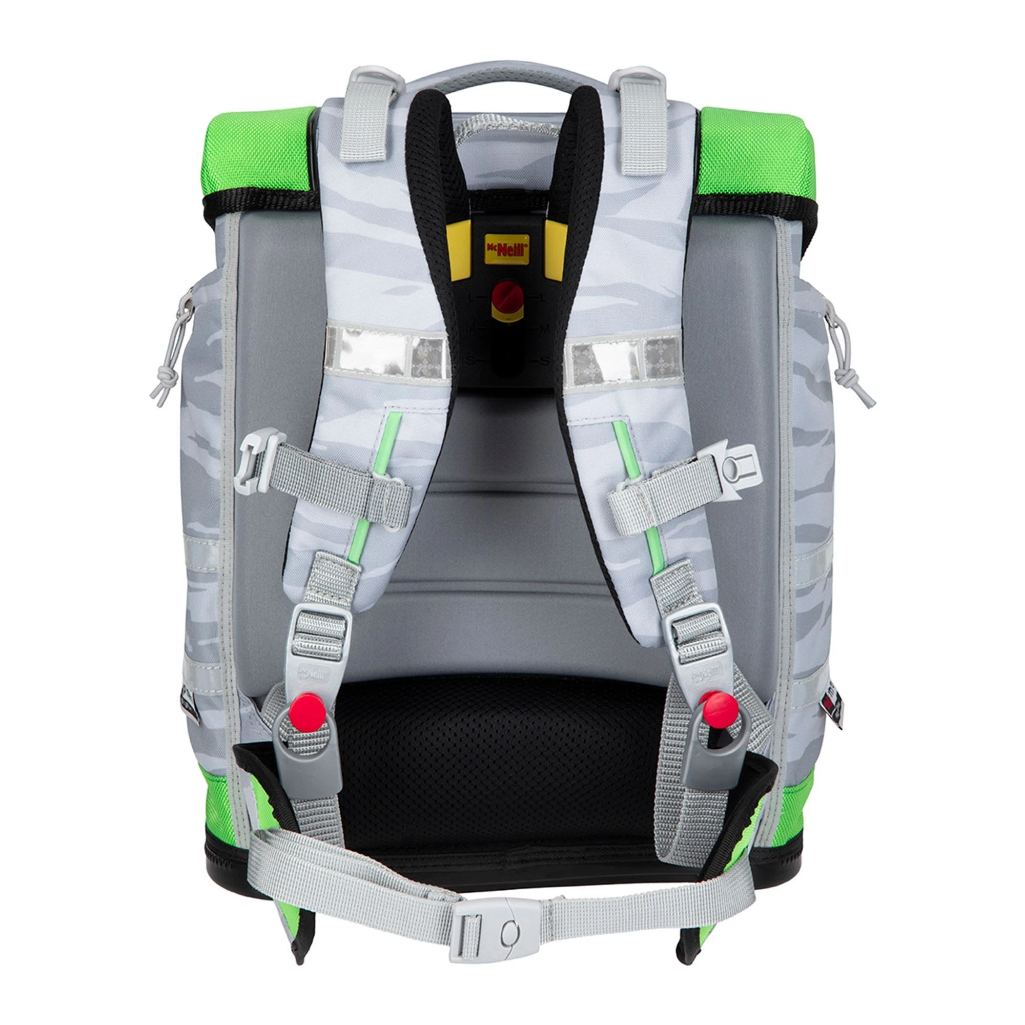 4-teiliges Schulranzen-Set von McNeill der Ergo Primero Serie bestehend aus Schulranzen, Sportschuhbeutel, Schlampermäppchen und gefülltem Mäppchen. Top-Tragekomfort durch die atmungsaktive Rückenpolsterung, höhenverstellbaren Gürte sowie Becken- und Brustgurt. Der Ranzen hat einen Schnappverschluss, der magnetisch angezogen wird und sehr leichtgängig wie von selbst schließt. Geräumige, mit Reißverschluss schließende Seitentaschen können für die Trinkflasche oder sonstige Mitbringsel für die Schule verwendet werden. Reflexmaterialien bieten eine sichere und optimale Lösung, wenn es um die Sichtbarkeit ihres Kindes geht. Schulranzen Außenmaß: 30 cm x 22 cm x 38 cm / Gewicht: ca. 1.000 g / Volumen: ca.20 l