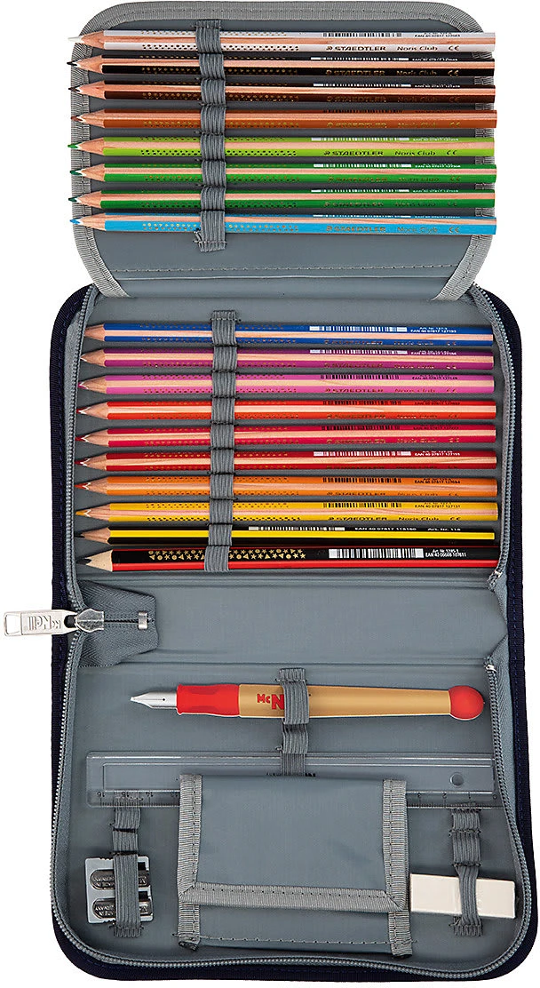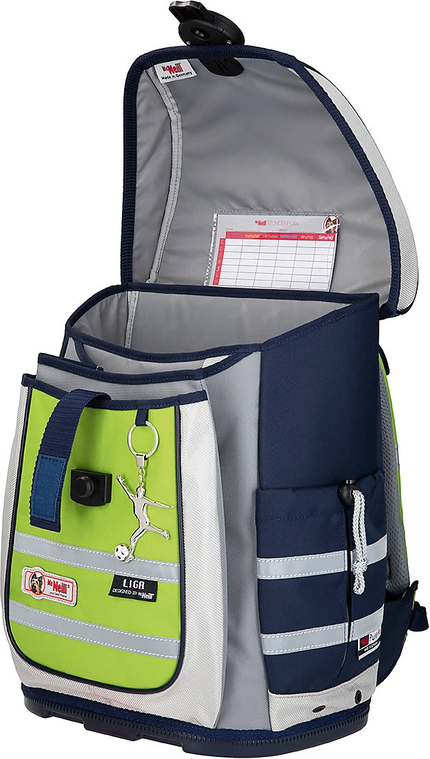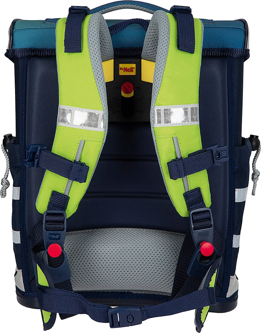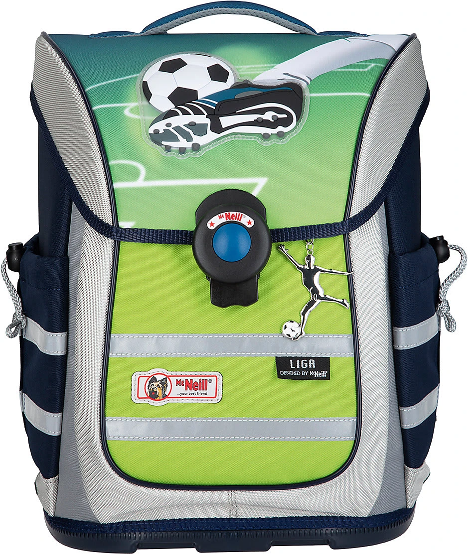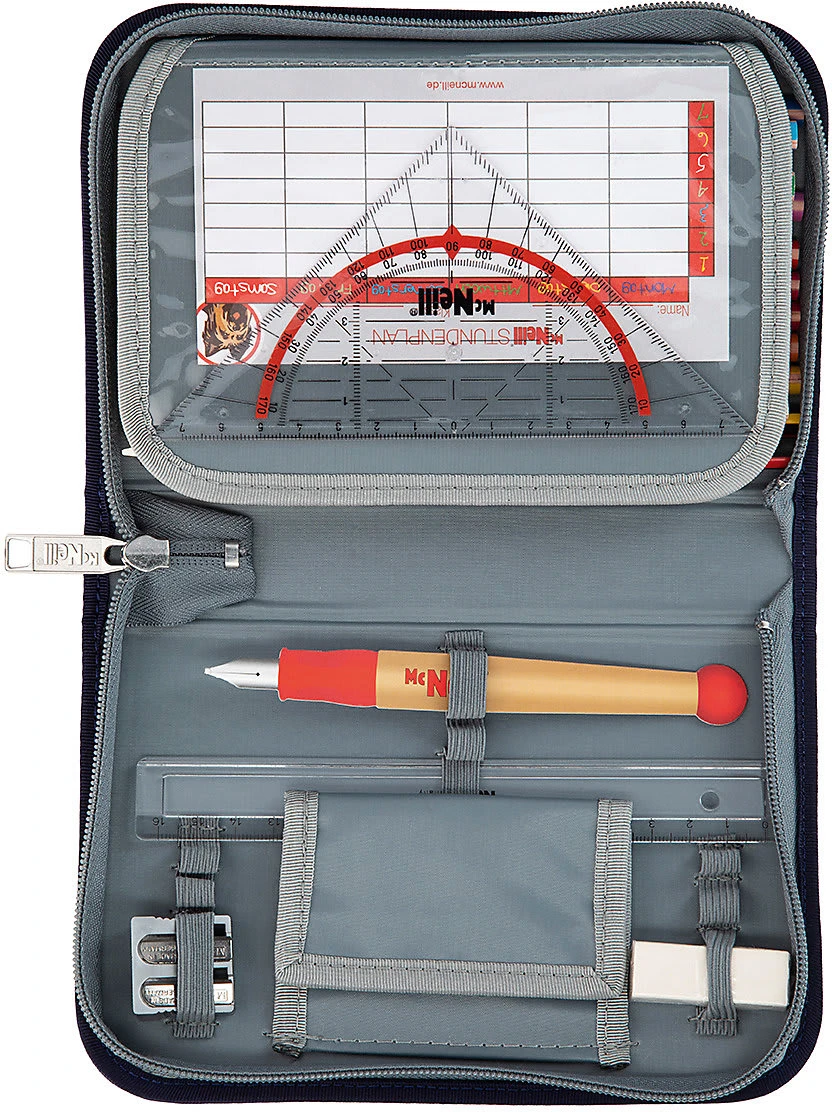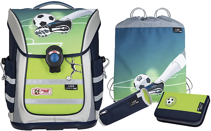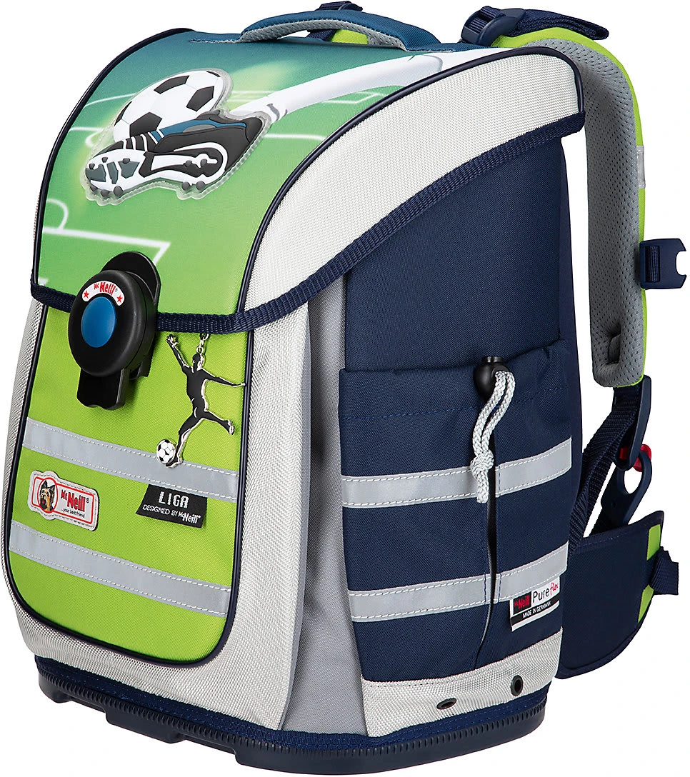 Der ERGO PURE FLEX von McNeill wurde entwickelt, um Kindern den Start in die Schule so einfach wie möglich zu machen. Das Modell beeindruckt mit dem SmartFlex Tragesystem, mit dem sich der Schulranzen schnell und flexibel auf die Bedürfnisse und den Körperbau des Kindes anpassen lässt. Das Rückenpolster schmiegt sich dabei der Kontur des Rückens an, während die drei Auflageflächen einen festen und ergonomisch korrekten Sitz gewährleisten und gleichzeitig auch für eine gute Belüftung sorgen. Zusammen mit dem ebenfalls höhenverstellbaren Brust- und Beckengurt sowie den angenehm gepolsterten Schulterriemen ermöglicht dieses Modell volle Flexibilität und höchsten Tragekomfort! Die reflektierenden Elemente sorgen für eine erhöhte Sichtbarkeit im Dunkeln oder bei schlechtem Wetter. Der Schulranzen kommt in einem Set mit einem Schlampermäppchen, einem Sportbeutel sowie einer Federtasche. Die Federtasche ist gefüllt mit Dreikant-Buntstiften, zwei Bleistiften, einem Radierer, einem Anspitzer, einer kleinen Geldbörse sowie einem Lineal und Geodreieck.