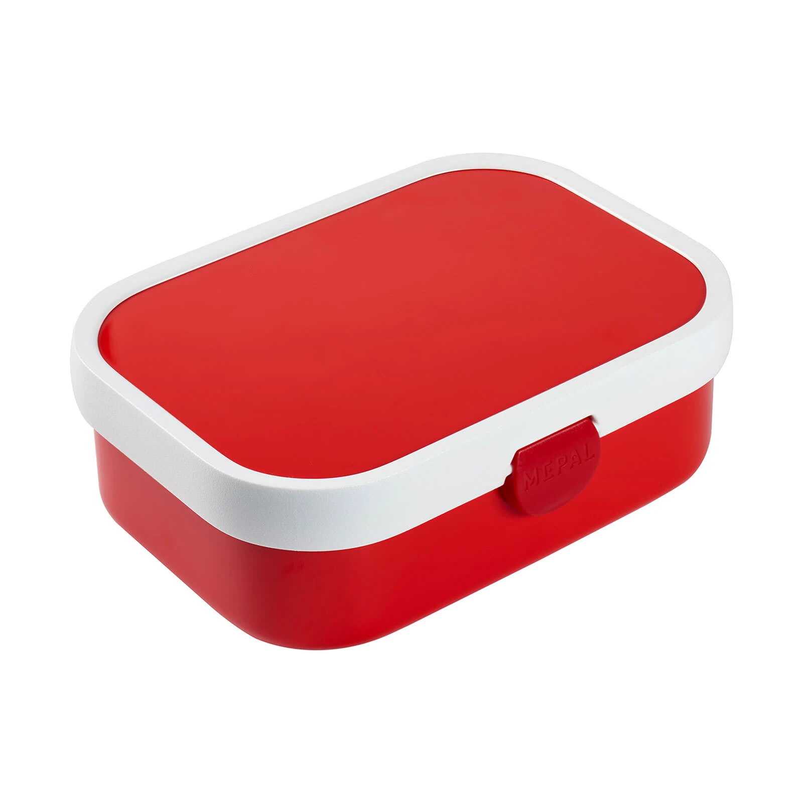 Entdecke das praktische Lunchset bestehend aus Brotdose und Fruchtbox. Die Brotdose inklusive herausnehmbarem Bento-Einsatz bietet noch mehr Abwechslung beim Pausensnack. Wie wär’s mit einem frischen Brot und knackigem Obst? Oder mit einem herzhaften Snack für zwischendurch? Ein paar Käsewürfel, Wurststückchen, Nüsse oder getrocknete Früchte? Kombiniere nach Lust und Laune und halte alles schön voneinander getrennt, denn der Bento-Einsatz unterteilt das Innere der Brotdose in verschiedene Fächer. So bleibt alles frisch und lecker! Oder doch lieber “ganz klassisch” vier Butterbrote? Kein Problem, denn den flexiblen Bento-Einsatz kannst du ganz einfach herausnehmen und die Brotdose wie gehabt befüllen. Nach Gebrauch kannst du Brotdose und Bento-Einsatz in der Spülmaschine reinigen. Mit der Fruchtbox von Mepal wird das Mitnehmen von frischen Früchten zum Kinderspiel. Die transparente Box mit farbigem Deckel ist groß genug für einen kleingeschnittenen Apfel, eine Birne oder Banane. Die mitgelieferte Fruchtgabel sorgt dafür, dass Kinder die Fruchtstücke mit sauberen Fingern und vollständig aufessen können. Die bruchfeste Fruchtbox passt perfekt in die Campus Brotdose und kann nach Gebrauch in der Spülmaschine gereinigt werden (ohne Deckel).