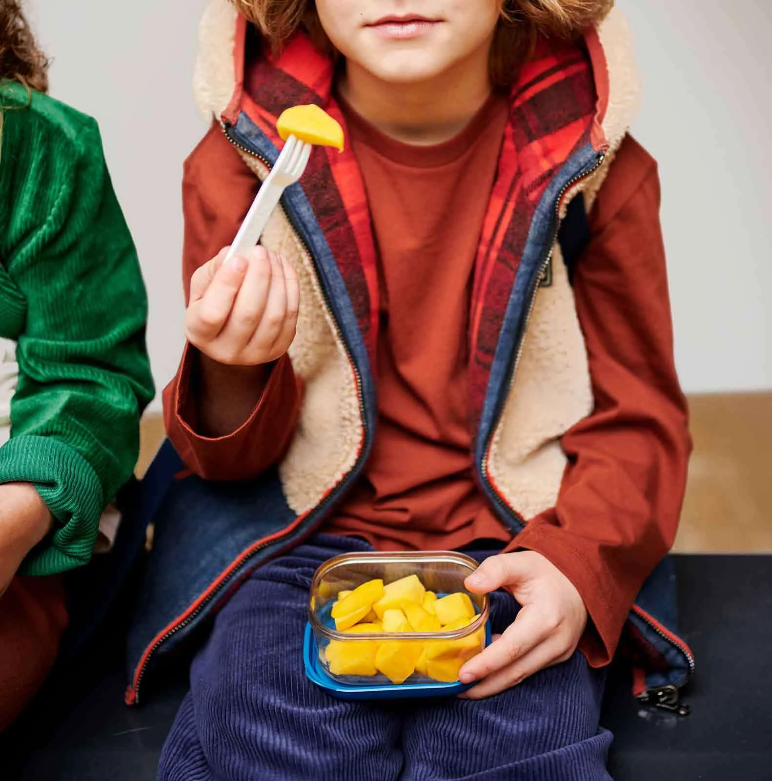 Mit der Fruchtbox von Mepal wird das Mitnehmen von frischen Früchten zum Kinderspiel. Die transparente Box mit farbigem Deckel ist groß genug für einen kleingeschnittenen Apfel, eine Birne oder Banane. Die mitgelieferte Fruchtgabel sorgt dafür, dass Kinder die Fruchtstücke mit sauberen Fingern und vollständig aufessen können. Die bruchfeste Fruchtbox passt perfekt in die Campus Brotdose und kann nach Gebrauch in der Spülmaschine gereinigt werden (ohne Deckel).