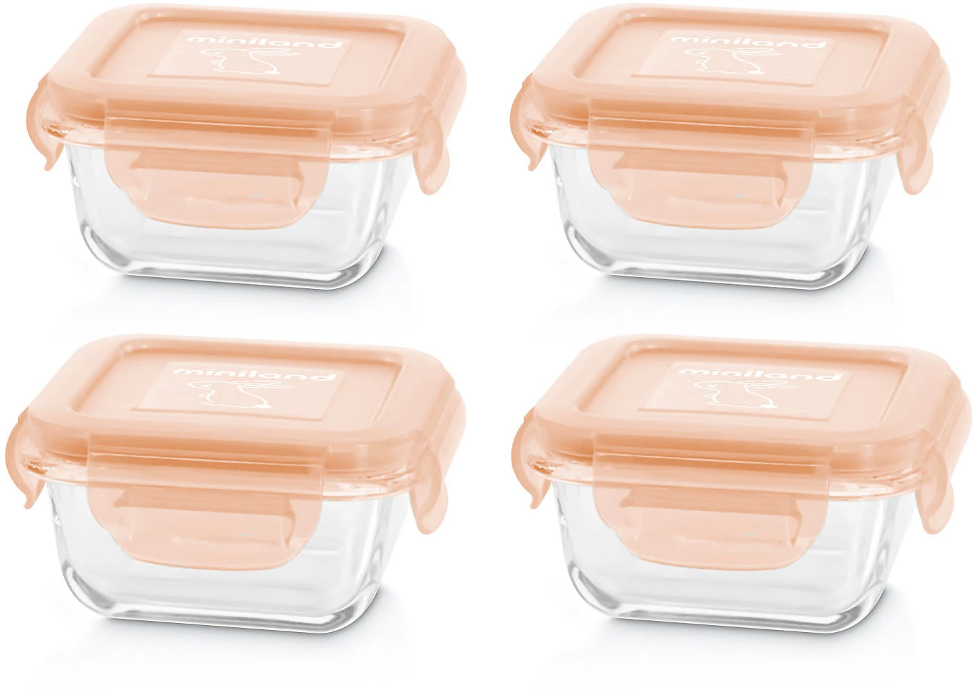 Mit den vier Aufbewahrungsbehältern “natureSquare” von MINILAND transportiert man Nahrungsmittel für Kinder besonders hygienisch und sicher!