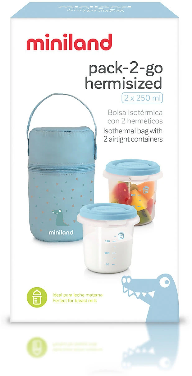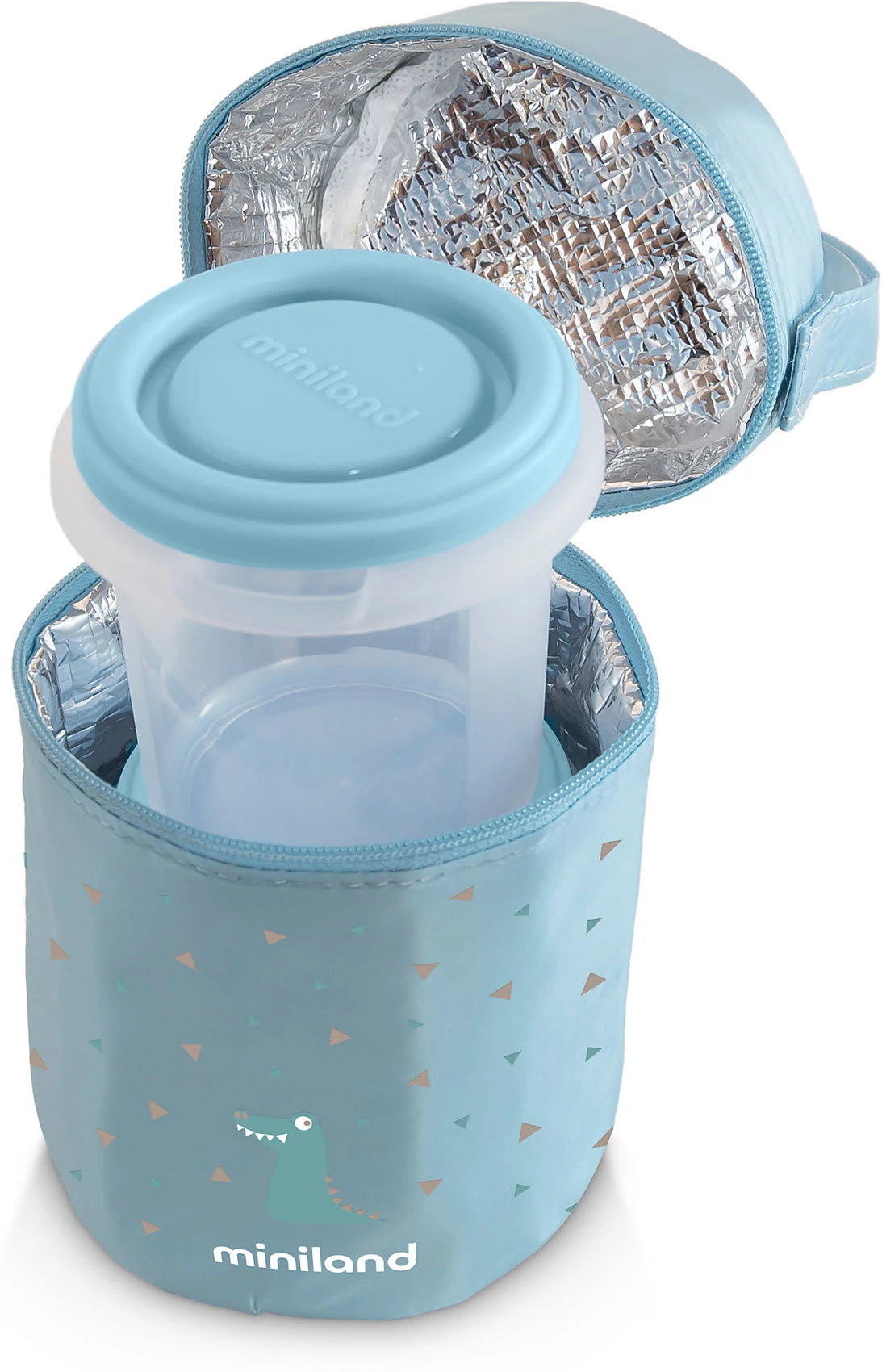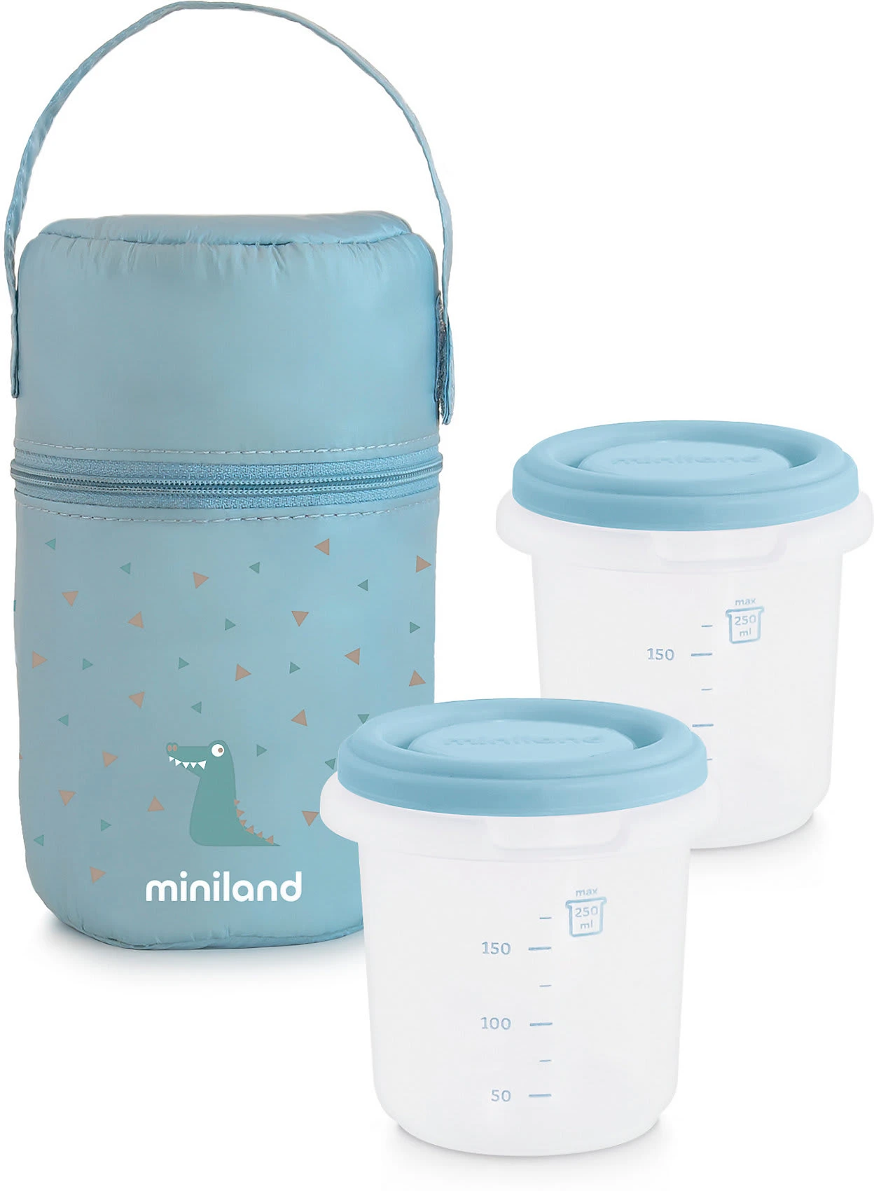 Die MINILAND Isoliertasche inklusive zwei Aufbewahrungsbehältern „hermisized“ sorgt mit ihrer isothermischen Funktion dafür, dass die Temperatur der Nahrungsmittel länger erhalten bleibt. Die Behälter sind ideal für den ersten Brei und feste Nahrung jeder Art, von kleinen Häppchen, über Zwischenmahlzeiten bis zum Dessert. Die Behälter eignen sich auch hervorragend für flüssige Nahrung, wie Brühen, Suppen oder frische Obstsäfte. Auch Muttermilch lässt sich hierin bestens mitnehmen oder einfrieren. Die auf dem Behälter aufgedruckten Maßeinheiten ermöglichen ein ganz genaues Abmessen der Nahrungsmengen für das Baby.