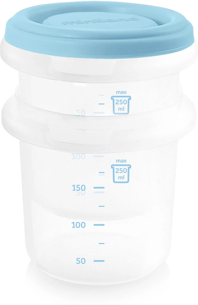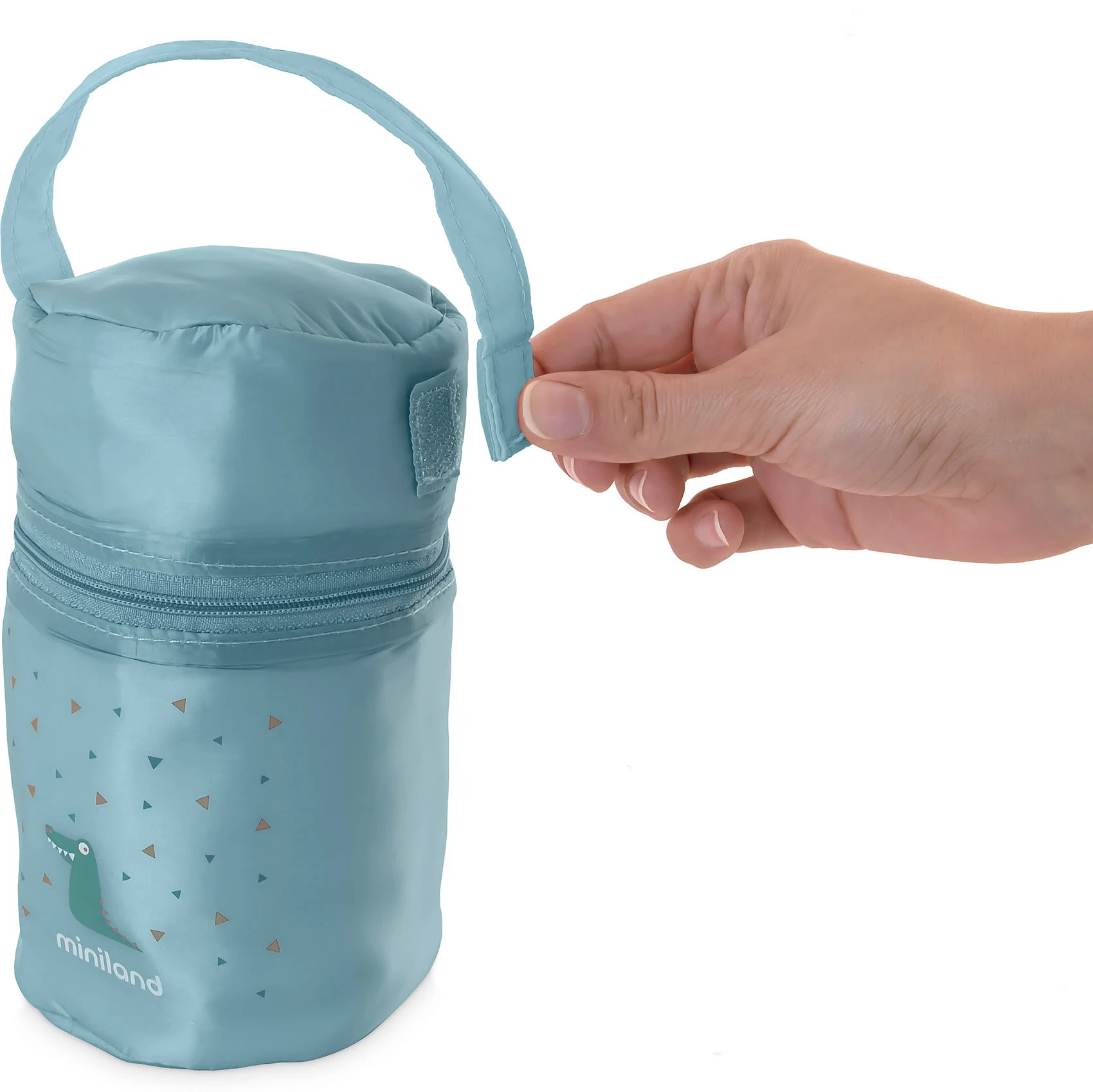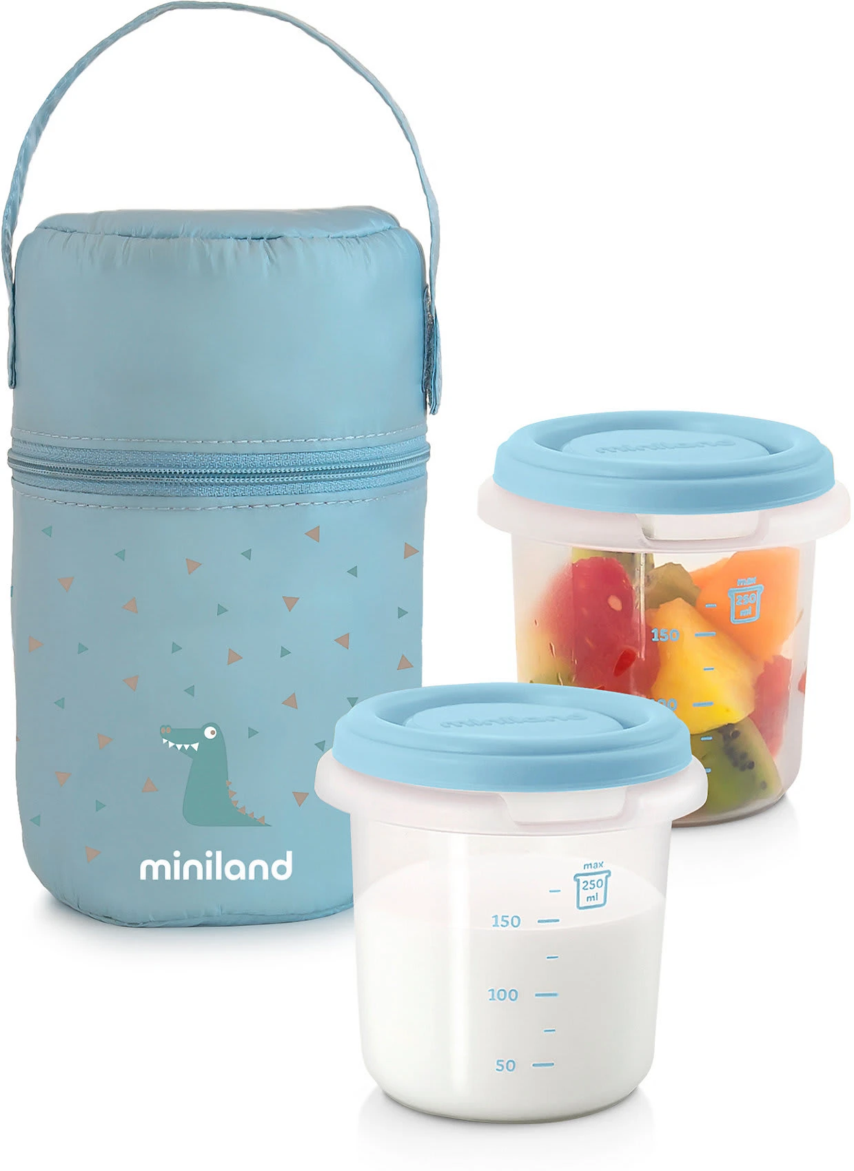 Die MINILAND Isoliertasche inklusive zwei Aufbewahrungsbehältern „hermisized“ sorgt mit ihrer isothermischen Funktion dafür, dass die Temperatur der Nahrungsmittel länger erhalten bleibt. Die Behälter sind ideal für den ersten Brei und feste Nahrung jeder Art, von kleinen Häppchen, über Zwischenmahlzeiten bis zum Dessert. Die Behälter eignen sich auch hervorragend für flüssige Nahrung, wie Brühen, Suppen oder frische Obstsäfte. Auch Muttermilch lässt sich hierin bestens mitnehmen oder einfrieren. Die auf dem Behälter aufgedruckten Maßeinheiten ermöglichen ein ganz genaues Abmessen der Nahrungsmengen für das Baby.