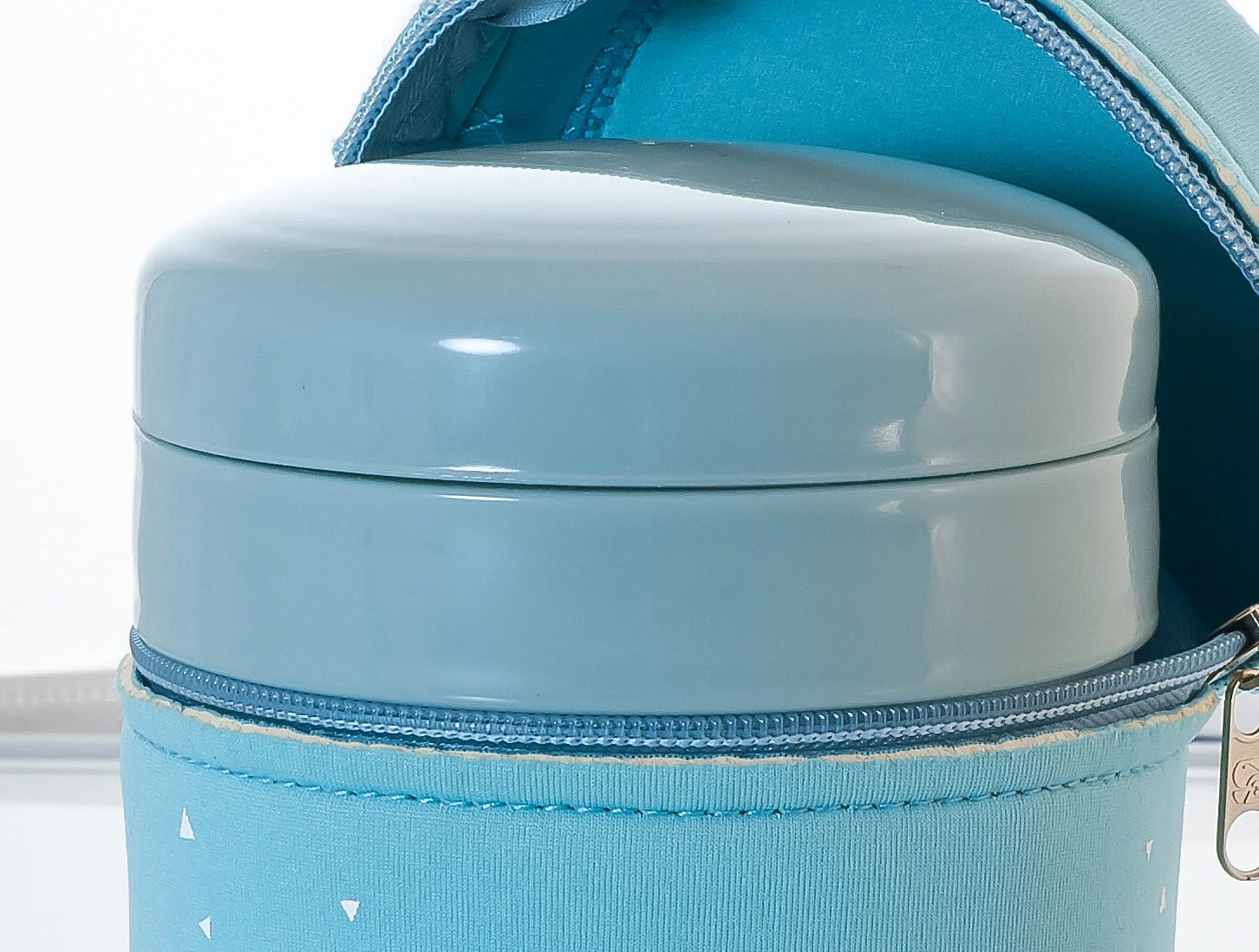 Der Isolierbehälter hat ein Fassungsvermögen von insgesamt 700ml und 350 ml, zuzüglich 200ml im Falle, dass die beiden inneren hermetischen Behälter benutzt werden. Das Neoprenetui isoliert den Isolierbehälter gegen die Außentemperatur und sorgt dafür, dass die Temperatur der kalten und warmen Nahrungsmittel noch länger erhalten bleibt. Dank der idealen Größe lässt sich der Thermobehälter Thermetic überallhin mitnehmen. Die Innenseite des Thermogefäßes besteht aus rostfreiem 18/8 Stahl (Stahl 304), ein Material, das sich besonders gut für die Konservierung von Nahrungsmitteln eignet. Des Weiteren können Sie die Mahlzeit direkt aus den hermetischen Behältern verabreichen, ein Umfüllen auf einen Teller o.ä. ist nicht nötig. Außerdem kann die Nahrung direkt in den hermetischen Behältern im Mikrowellenherd aufgewärmt werden.