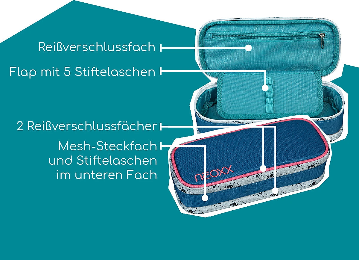 Die Catch Schlamperbox von neoxx bietet Platz für alle Schreibutensilien und ist das passende Schlamperetui für Jungen und Mädchen im Style der neoxx Schulrucksäcke.