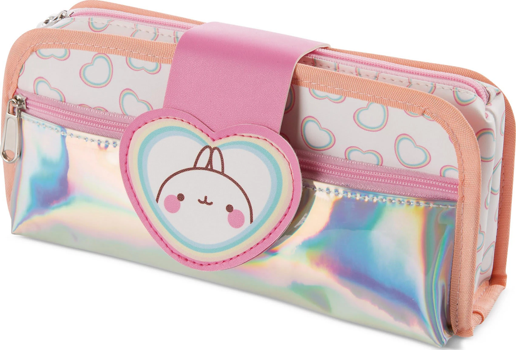 Sicherer transport für wichtige Schulutensilien. In dieser Federmappe von NICI finden Stifte, Schwere, Kleber und Co. ihren Platz. ein geräumiges Hauptfach und ein weiteres, verschließbares Fach bieten viel Platz. Auch optisch macht das Produkt einiges her und begeistert mit einem modernen holographischen Design und einer schicken Schnalle.