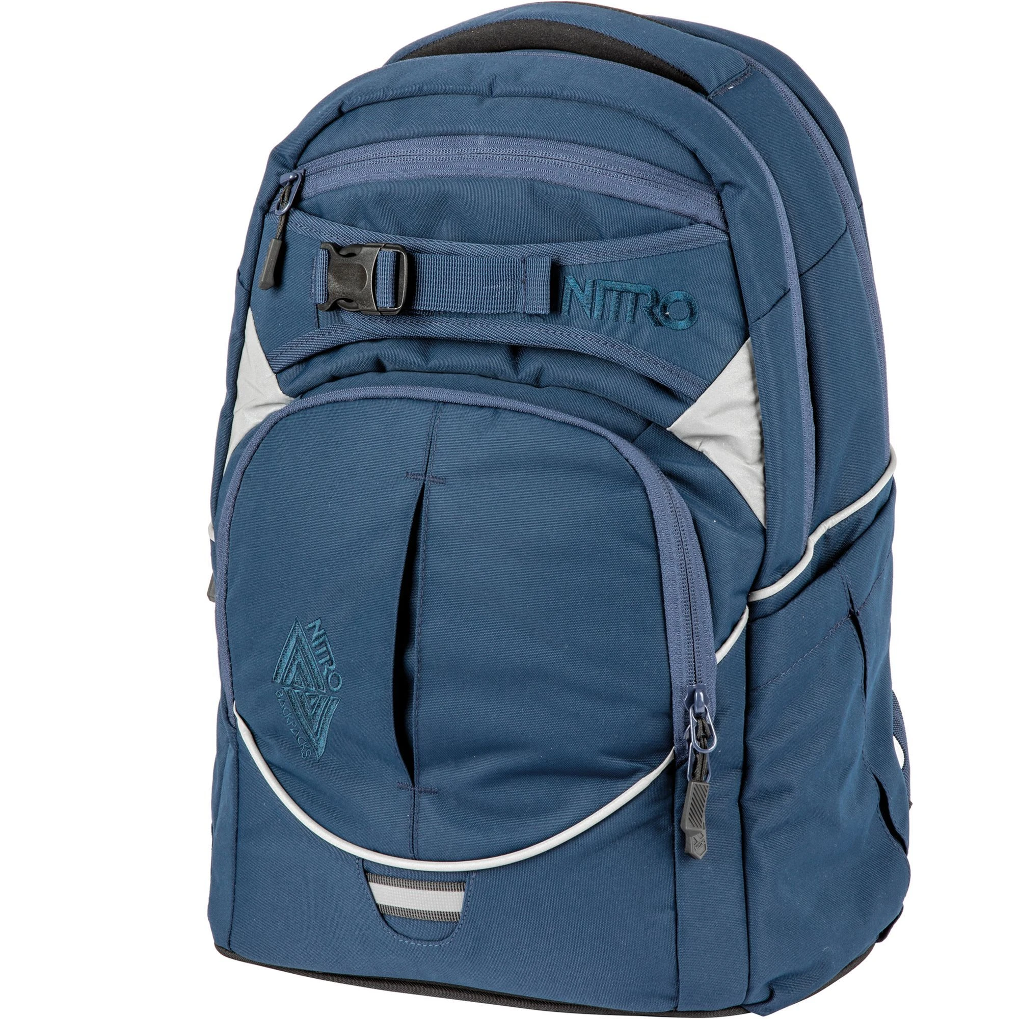 Ob im Schulalltag oder in der Freizeit: Der praktische Schulrucksack von Nitro bietet mit zwei geräumigen Hauptfächern und weiteren zahlreichen Fächern und Taschen viel Platz und Stauraum und überzeugt durch seine hohe Verarbeitungsqualität und seine Funktionalität. Er verfügt über eine Front-Thermotasche zum Warm- oder Kalthalten von Snacks und Getränken, ein unterteiltes Heftefach im hinteren Hauptfach und ein mit Fleece gefüttertes Fach für Brillen oder Smartphone. Der Rucksack ist auch mit Reflektoren für mehr Sicherheit in Dunkelheit ausgestattet. Die gepolsterten Schulter- und Beckengurte und ergonomisch geformtes Rückensystem ermöglichen auch bei schwerem Gewicht ein bequemes Tragen.