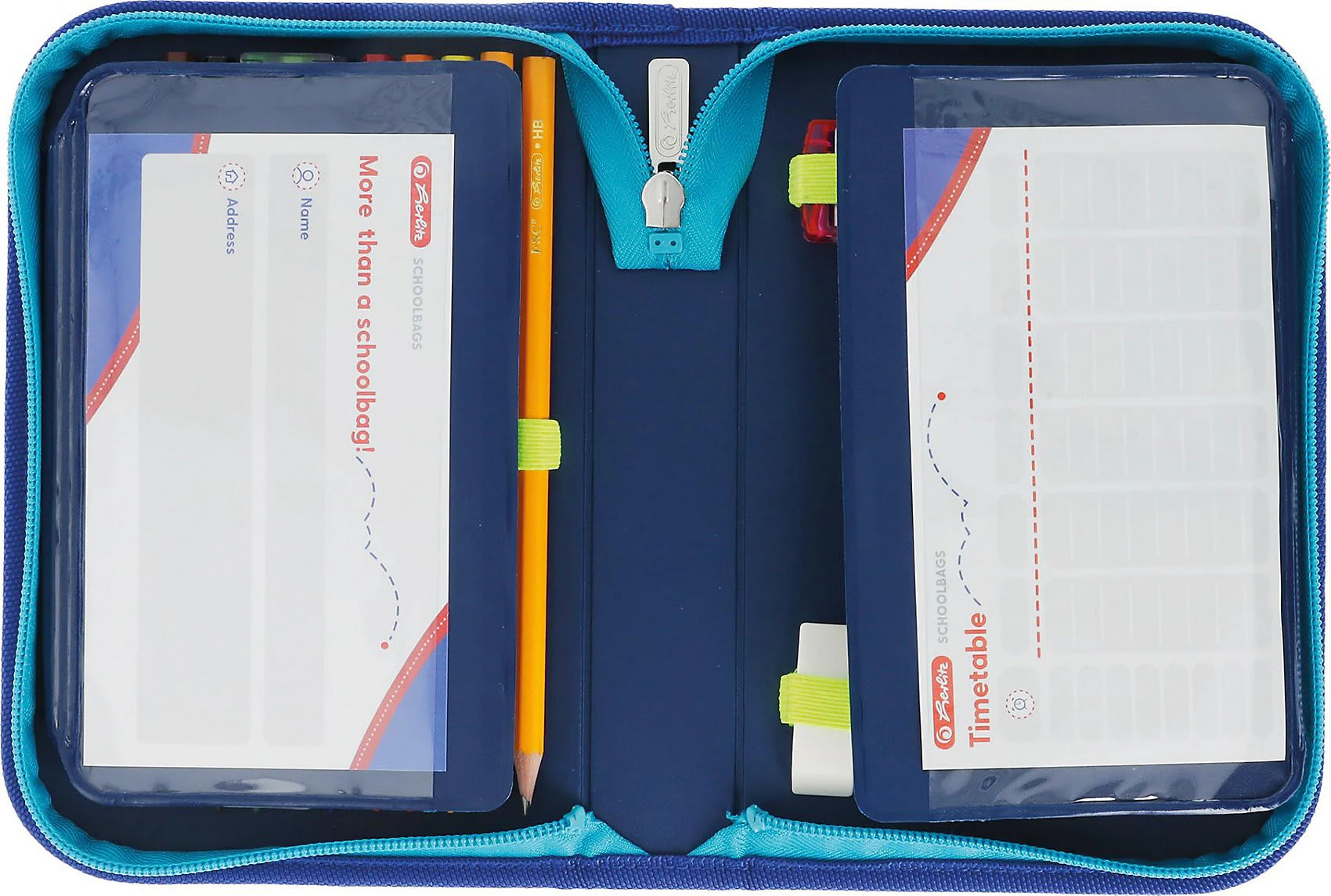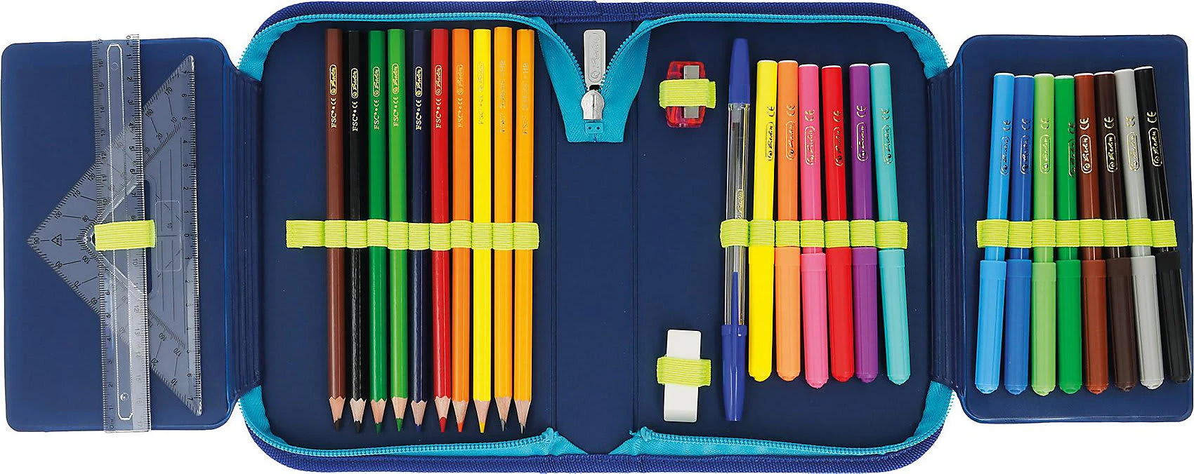 Das neue Schuljahr kann kommen! Mit diesem befüllten Federmäppchen von herlitz kommt ein 31-teiliges Set mit allem, was in der Schule so gebraucht wird. Das Hauptfach schließt mit einem praktischen Reißverschluss und die 2 Klappen im Inneren bieten Platz für alle wichtigen Schreib- und Bastelutensilien, wie Lineal, Radierer und Anspitzer. In dem Set enthalten ist bereits eine komplette Füllung – damit steht einem gelungenen Schulanfang nichts mehr im Wege.