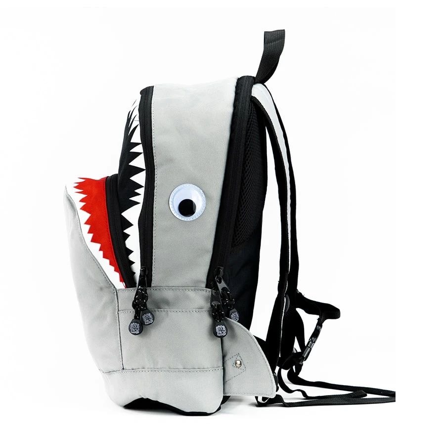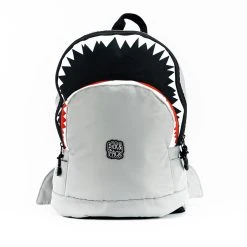 Der Grundschul-Rucksack wurde mit einem ergonomischen Rückenpanel und verstellbaren, reflektierenden sowie gepolsterten Schultergurten entworfen. Aufgeteilt ist er in ein großes Hauptfach und eine Fronttasche. Der Hai lässt sich ganz leicht durch einen Reißverschluss öffnen und schließen. In der Innenseite der Tasche befindet sich ein gepolstertes Reißverschlussfach für ein Tablet oder einen 13 Zoll Laptop sowie ein Anhänger für Schlüssel. Insgesamt ist der Rucksack mit 2 Flaschenhaltern ausgestattet – Innen und einer als äußere Seitentasche. Geeignet ist er ab einem Alter von 5-6 Jahren. Hergestellt werden die stylischen Rucksäcke mit recycelten Wasserflaschen.