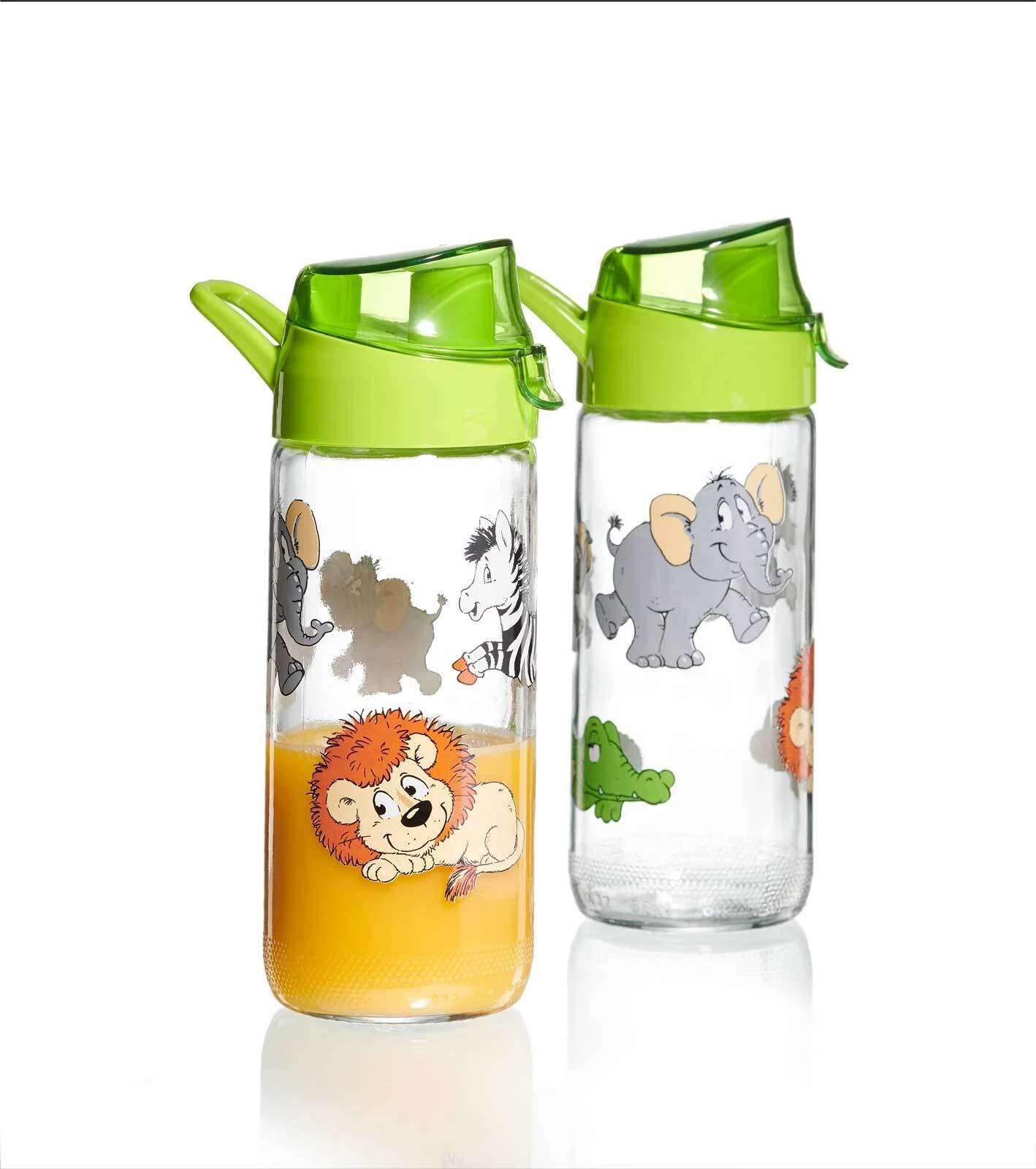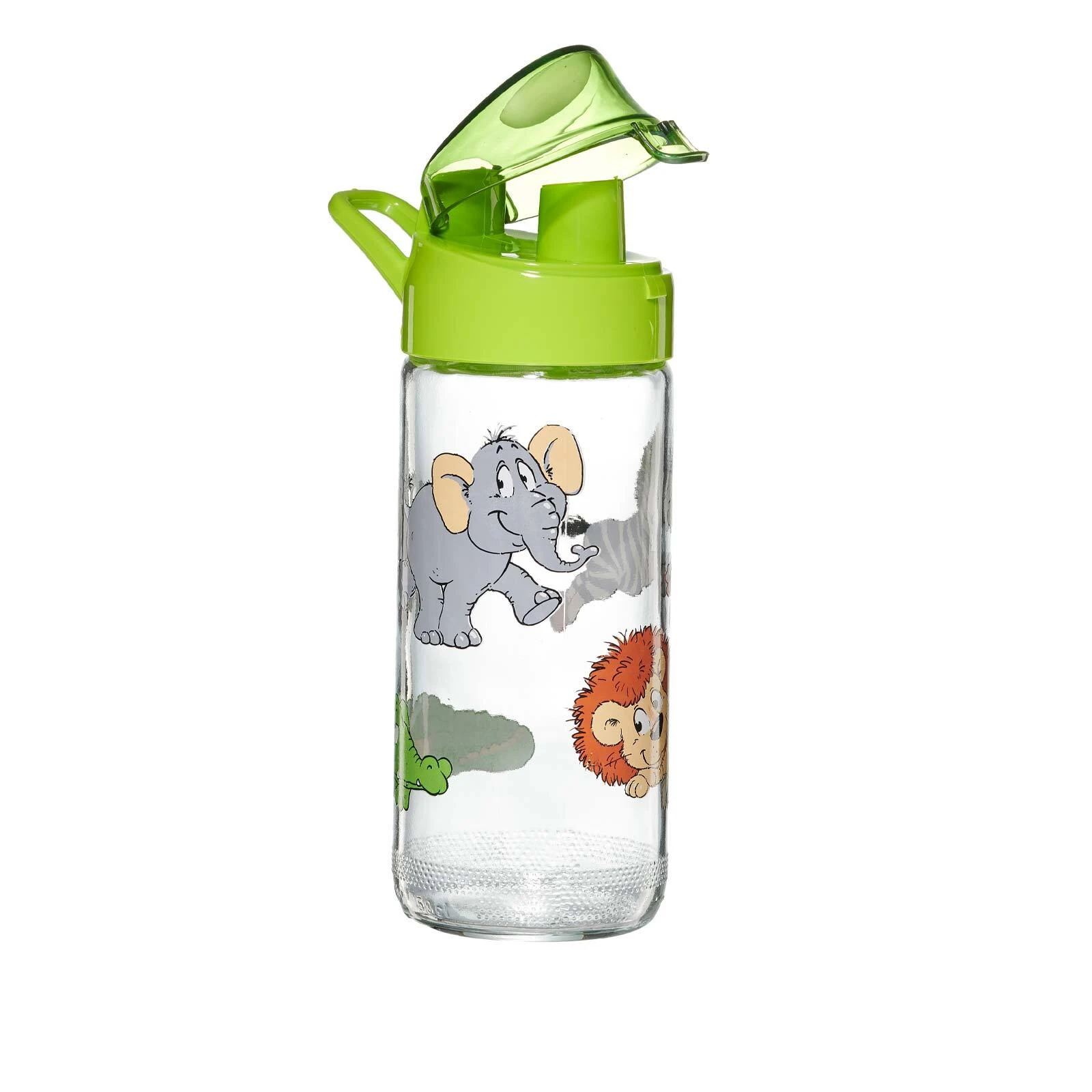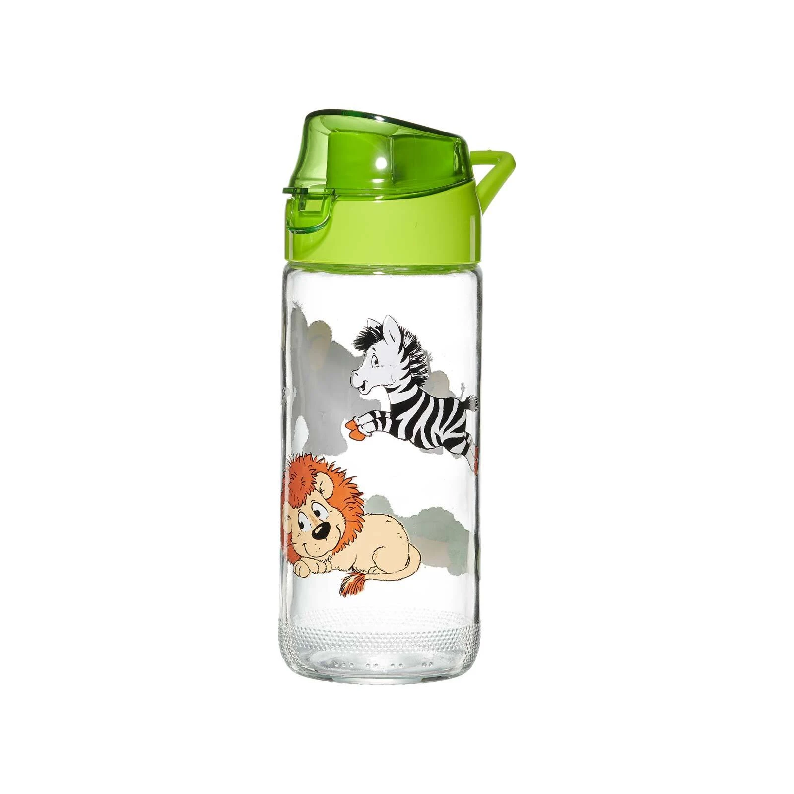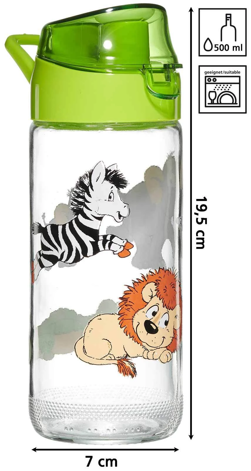 Ritzenhoff & Breker HAPPY ZOO Trinkflasche 0,5l aus Glas mit Kunststoffdeckel
